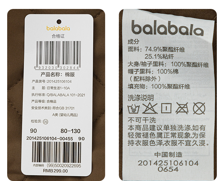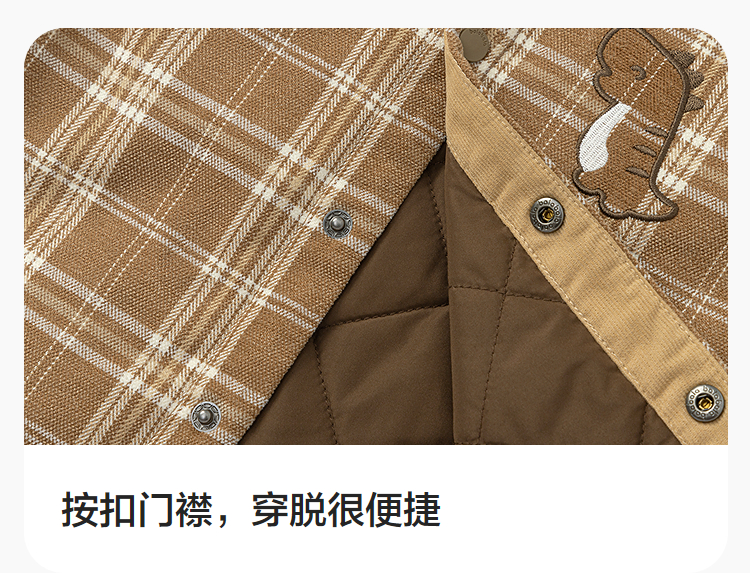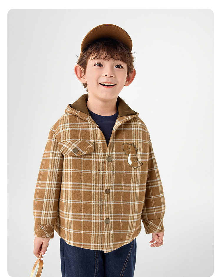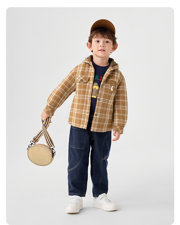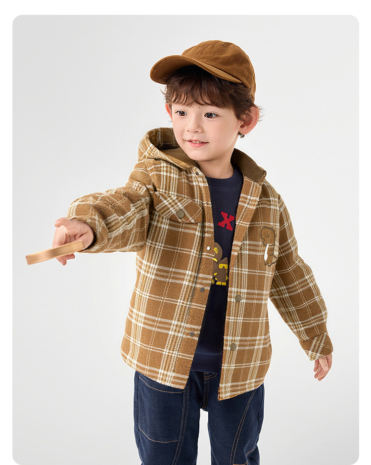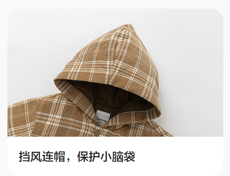 巴拉巴拉儿童棉服宽松连帽外套格纹男童冬装2025新款