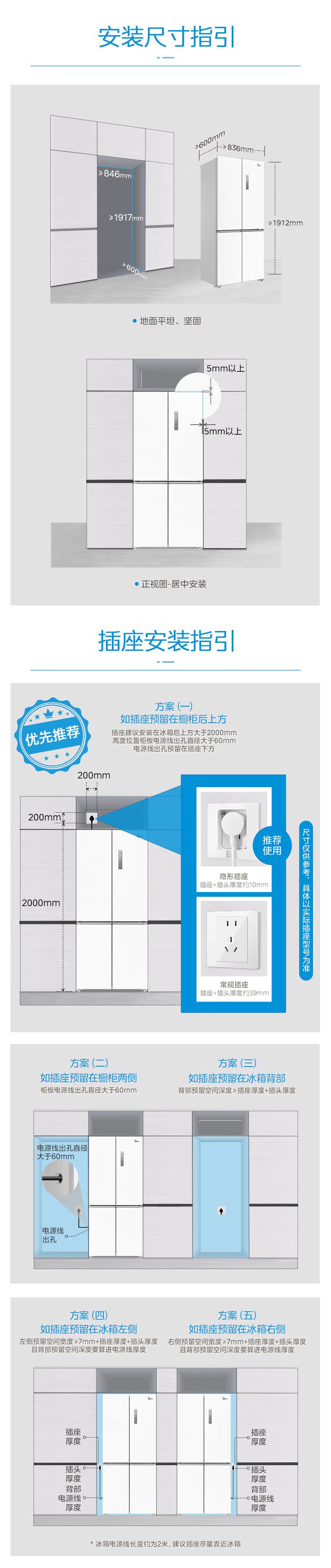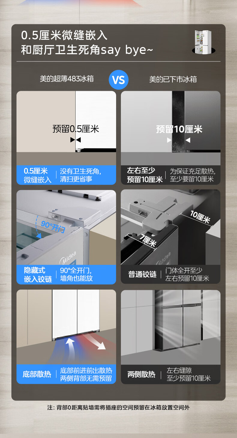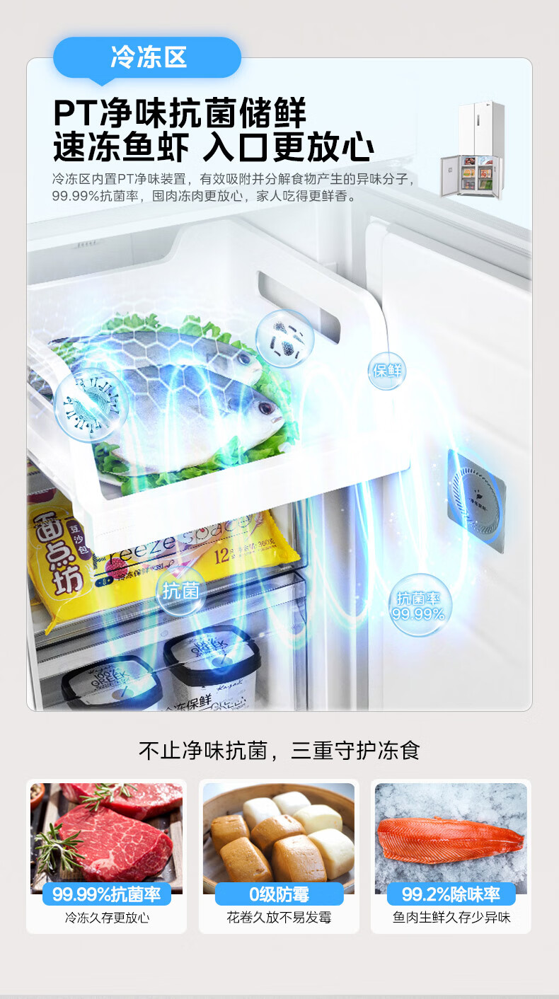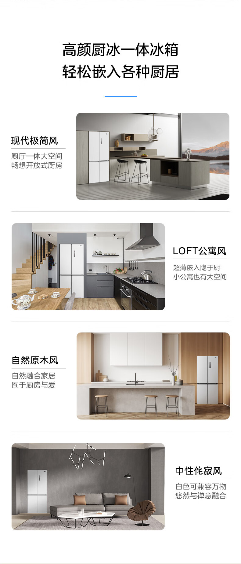 美的(Midea)M60系列60cm薄483升平嵌十字双开四开门多门超薄嵌白色无霜一级变频家用电冰箱BCD-483WSPZM(E)