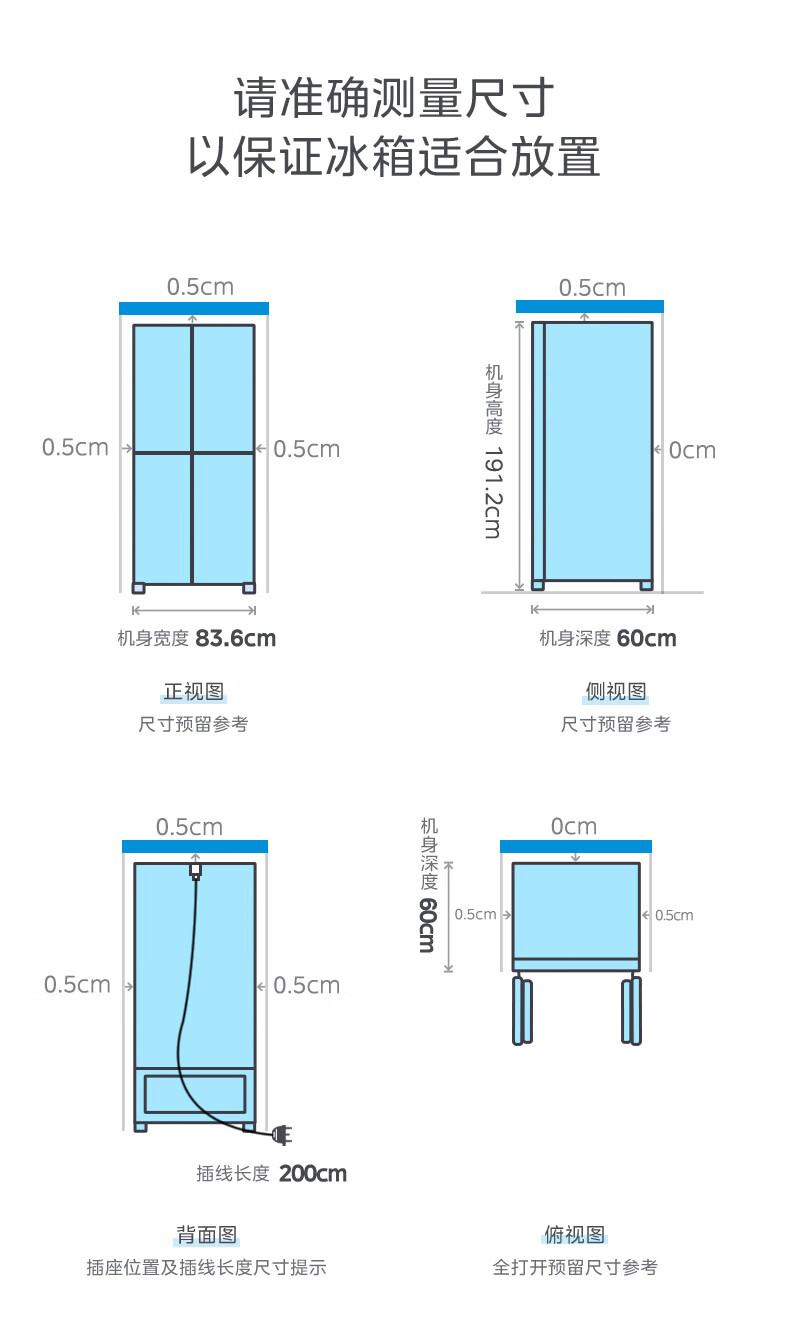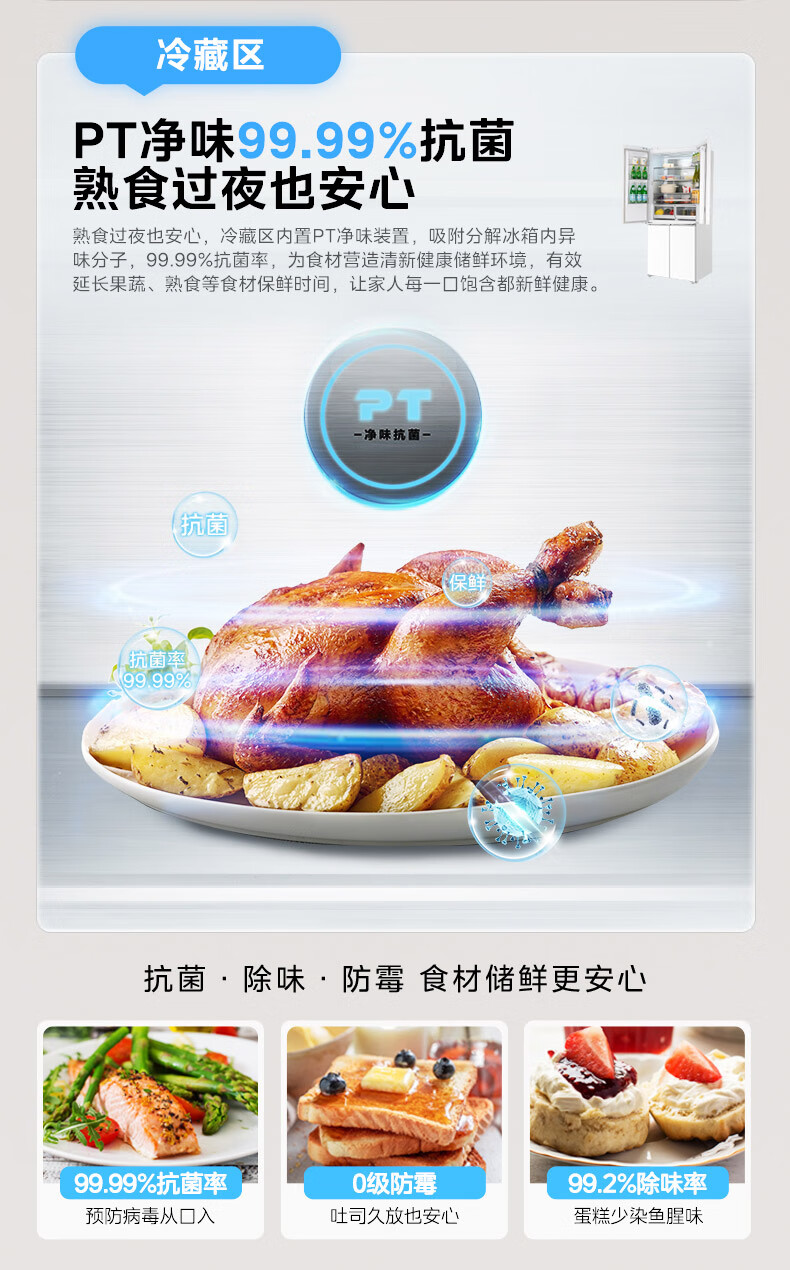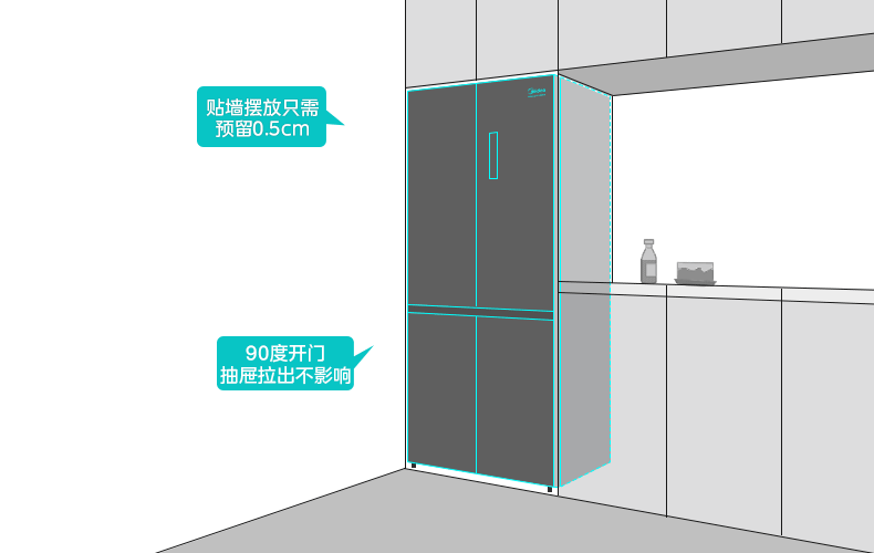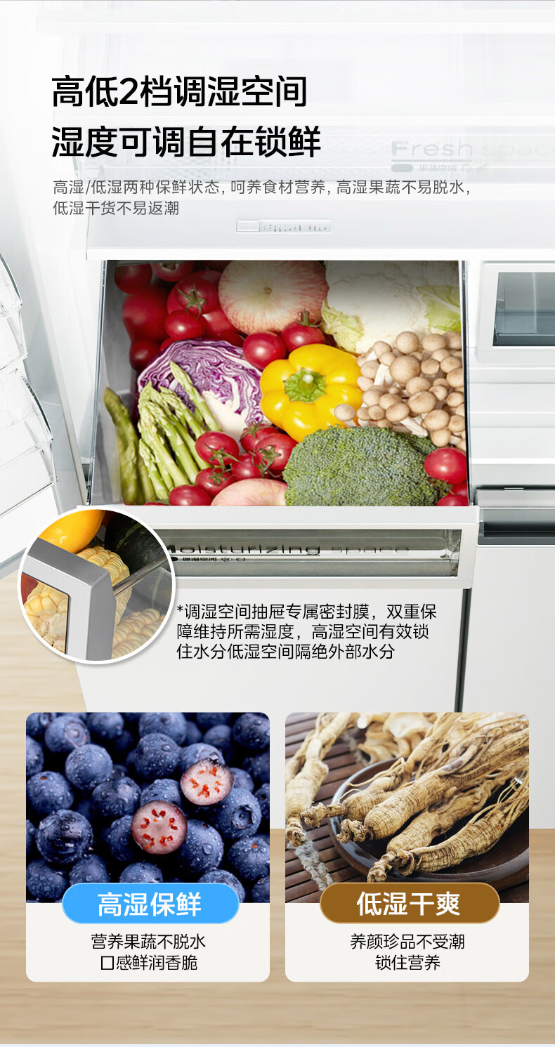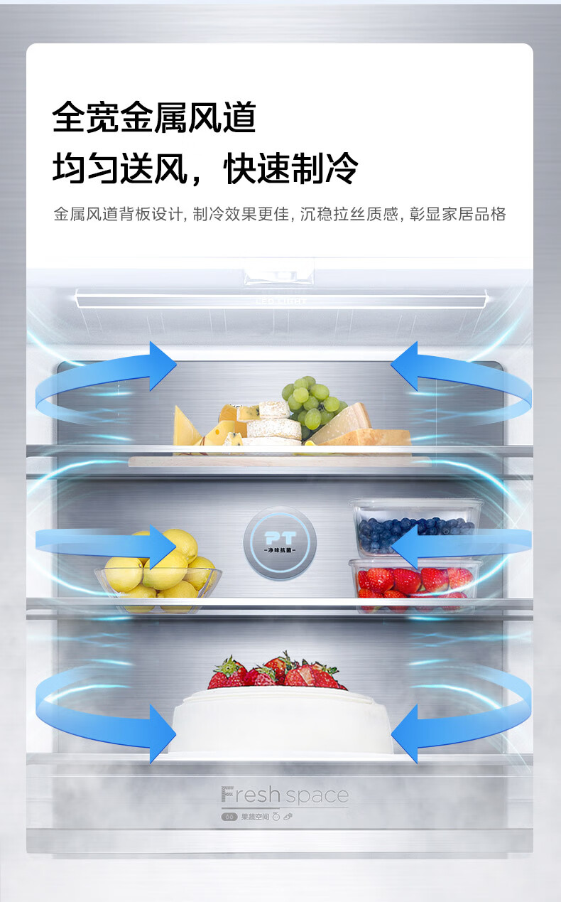 美的(Midea)M60系列60cm薄483升平嵌十字双开四开门多门超薄嵌白色无霜一级变频家用电冰箱BCD-483WSPZM(E)