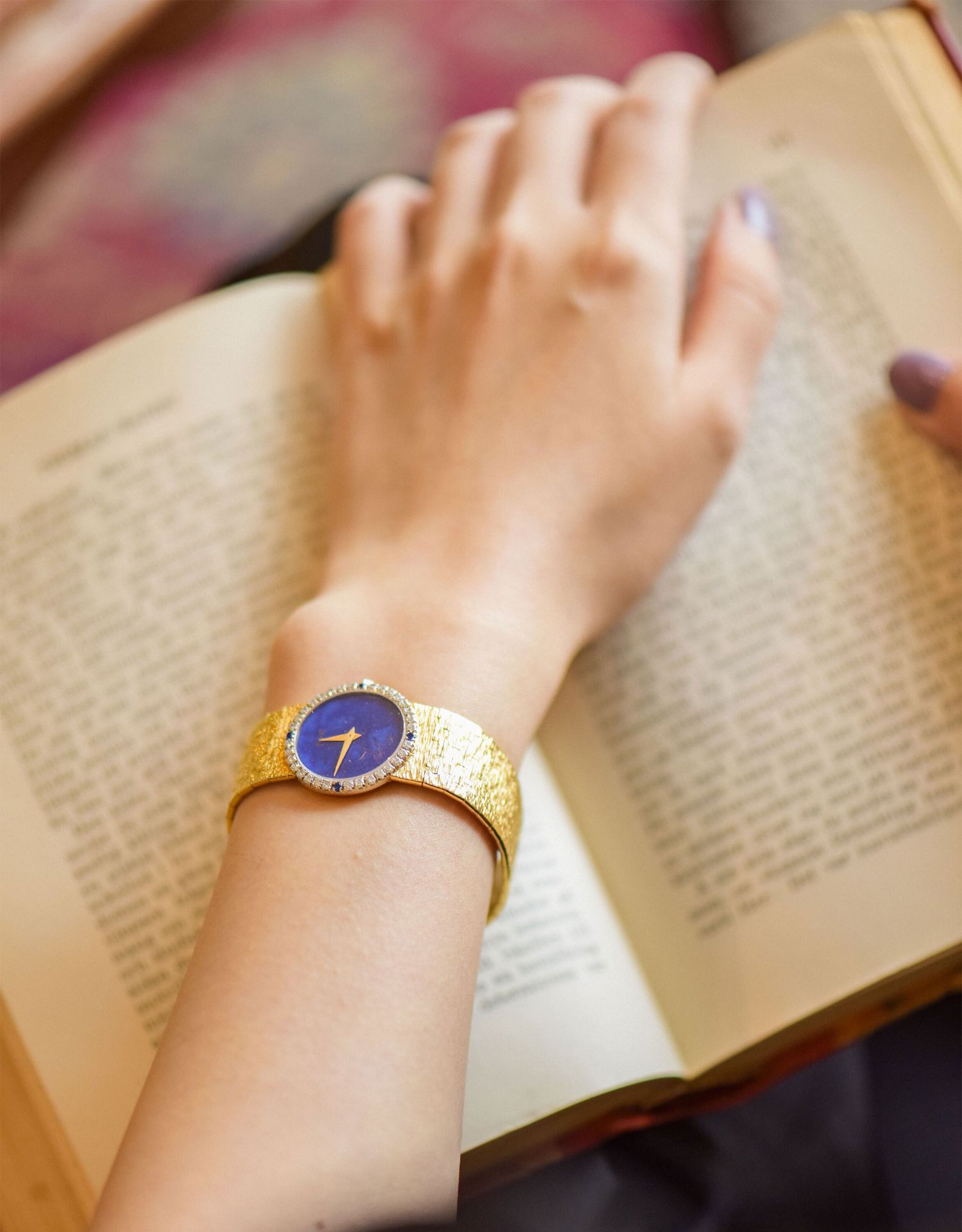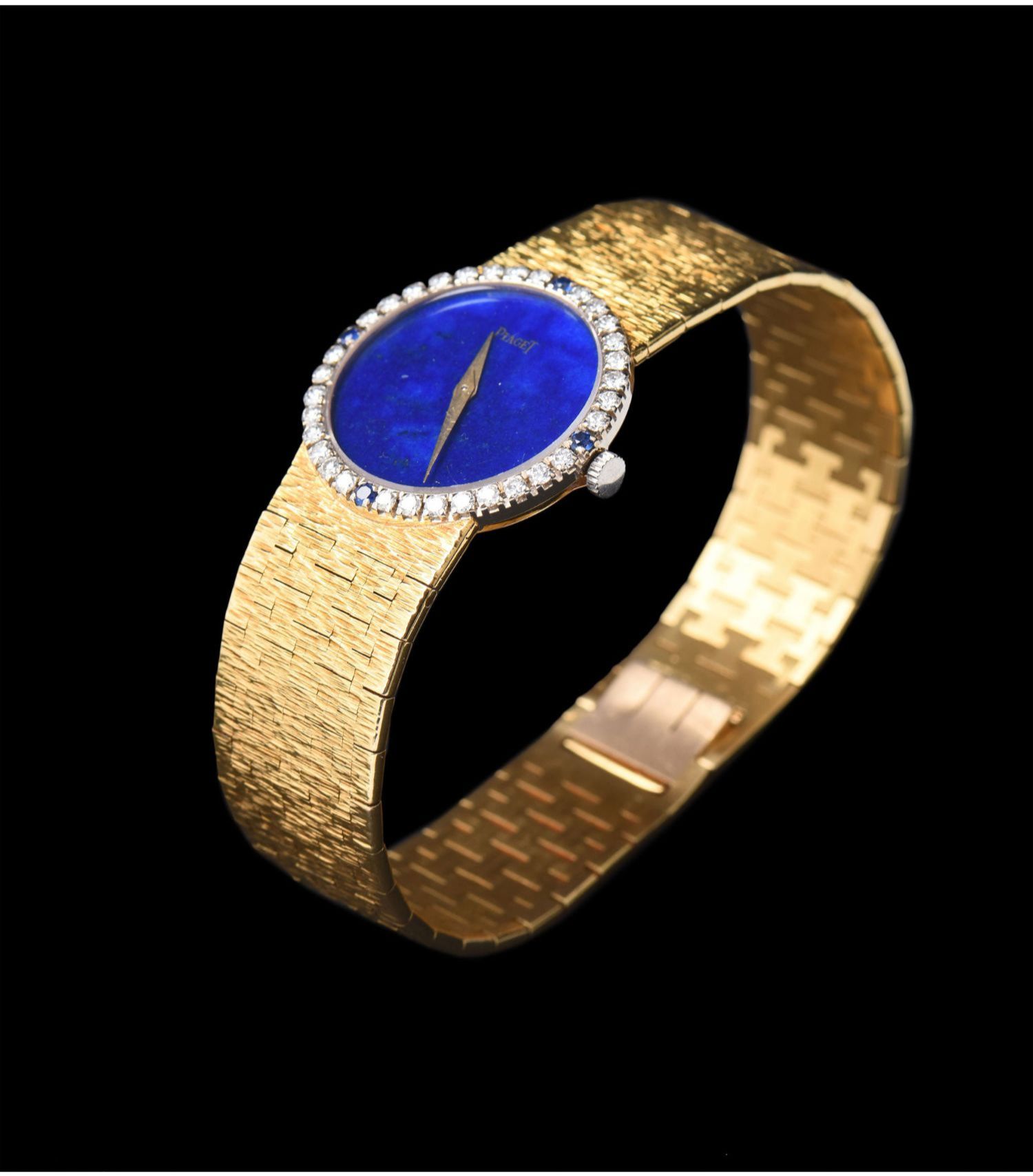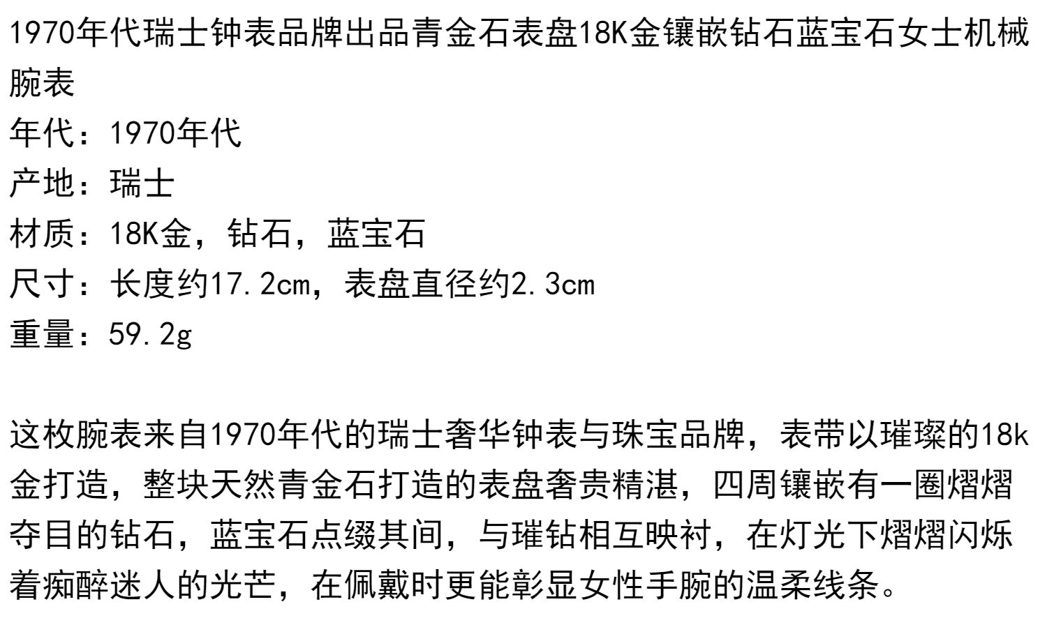 独角鹿西洋古董瑞士二手手表青金石18K金镶钻石蓝宝石机械女腕表