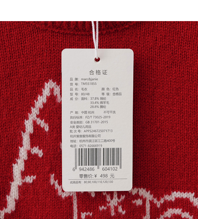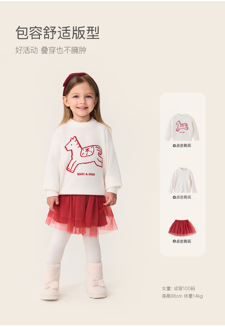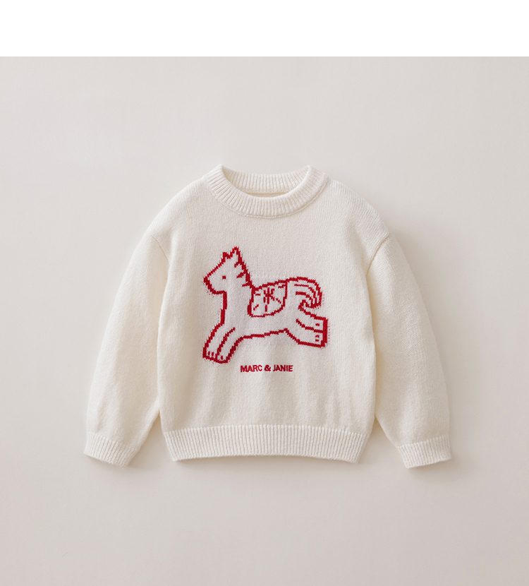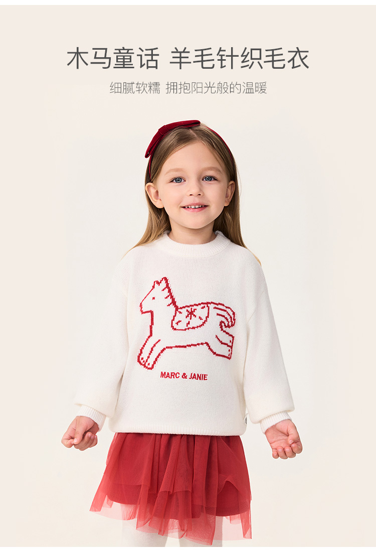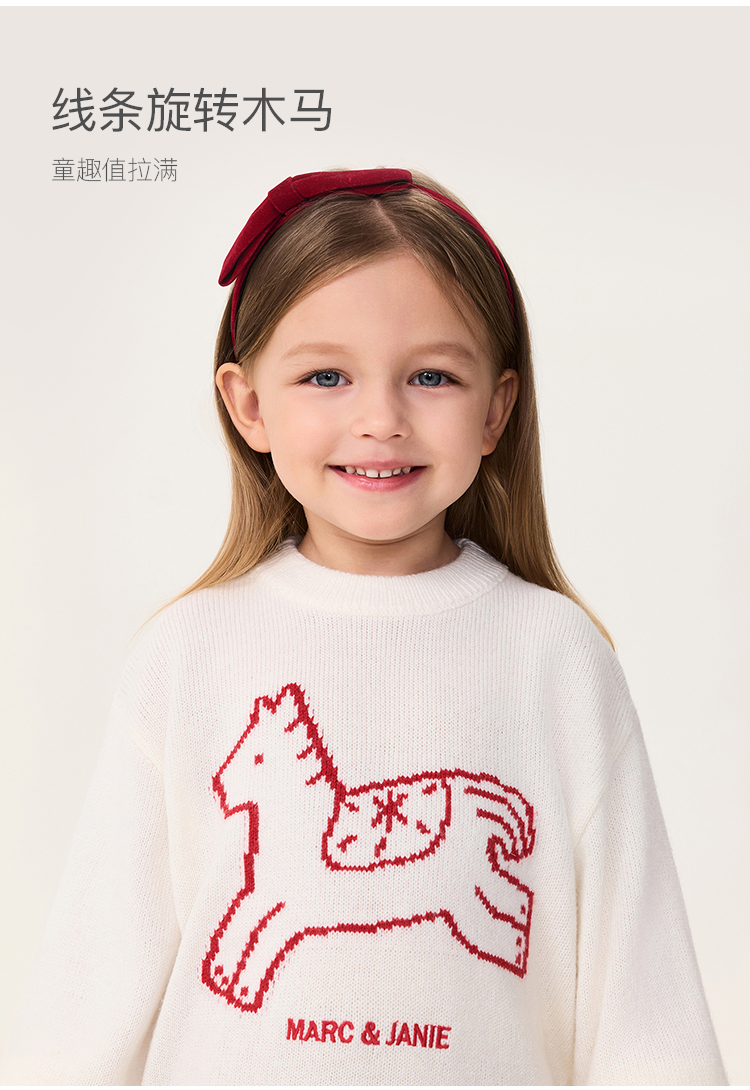 马克珍妮男女童木马童话羊毛针织衫2025年冬装新款551855