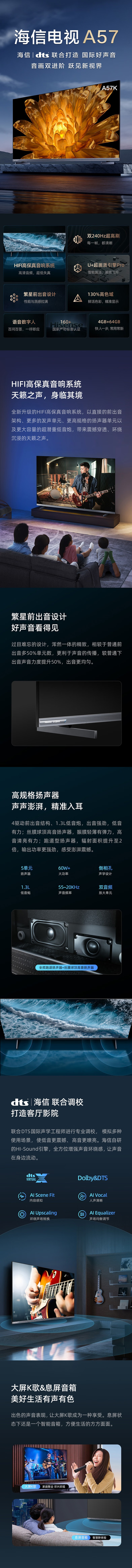 海信(912726)75a57k(Hisense)电视 A57K U+超画质引擎4K高清240Hz高刷新130%高色域双频wifi电视机 75英寸