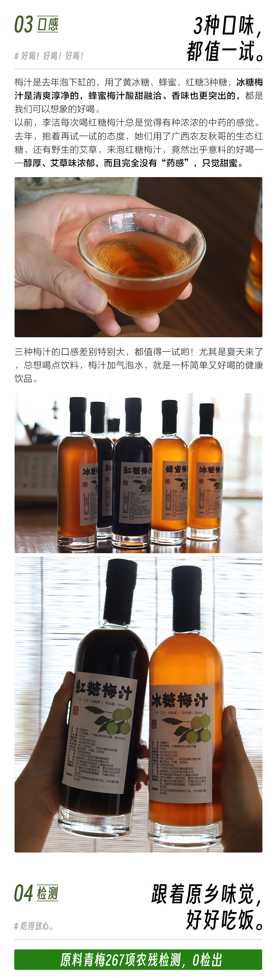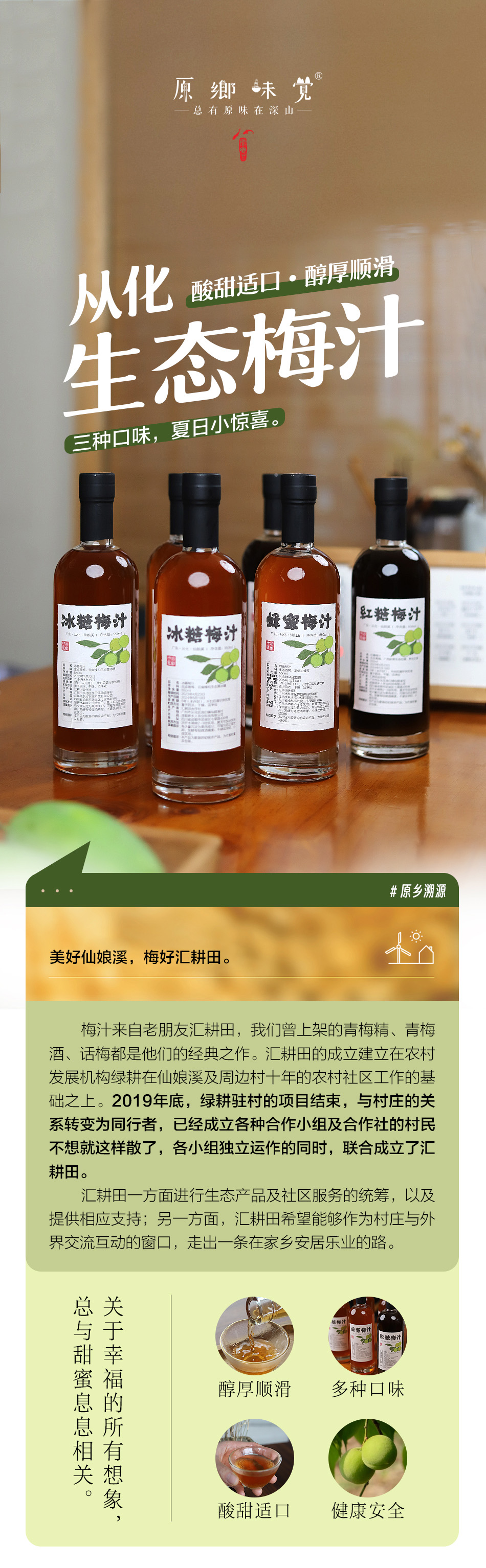 生态梅汁/青梅汁(成都仓库-顺丰快递 )| 冰糖/红糖/蜂蜜梅汁550ml/瓶,来自广州从化,生产者:汇耕田【合作生产,公平贸易】