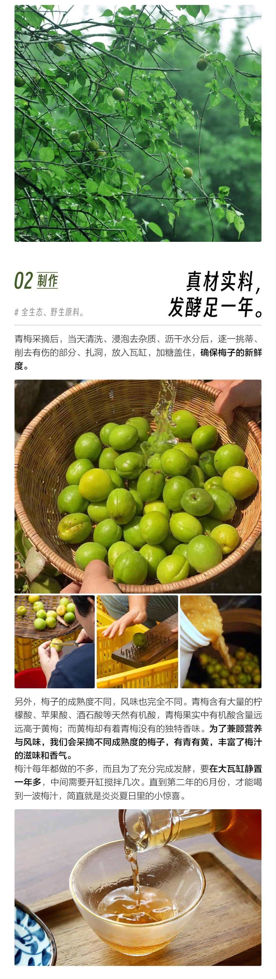 【生产者】:汇耕田 【规格】:冰糖梅汁550ml/瓶、红糖梅汁550ml/瓶、蜂蜜梅汁550ml/瓶 【配料】: 冰糖梅汁:生态青梅、云南臻和生态黄冰糖 红糖梅汁:生态青梅、广西秋哥生态红糖、野生艾草 蜂蜜梅汁:生态青梅、本地土蜂蜜 【产地】:广州市从化区良口镇仙娘溪村 【保质期】:未开封5年,开封后请尽快饮用 【储存方式】:置于阴凉、干燥、洁净处存储 【食用方法】:直接饮用或凉开水稀释2-3倍饮用,夏天可加冰饮用 【温馨提示】: 1、有少量沉淀为果肉成分,可正常饮用,饮用前摇一摇。发酵有轻微酒精度,介意请慎拍; 2、红糖口味浓密粘稠、冰糖口味清爽解腻、蜂蜜口味带有独特的百花香味儿,可根据喜好选择口味。 【注意事项】: 1、受天气或库存等原因影响快递可能偶有耽误,急单请发货前咨询客服; 2、已发货后不接受没有沟通的退款申请; 3、快递抵达后请尽快取件。 【售后标准】: 1、品相、外观、口感不在售后范围内; 2、收货后请尽快开箱验货,若有质量问题,请在签收12小时内拍照联系客服,逾期不售后; 3、若需售后,请将快递面单与问题产品一起拍照提供给客服,须可清晰看到快递单号与产品问题。质量问题产品按比例赔付【优先按数量赔付,不便计数按重量】,无法提供问题产品照片及确定损坏量的,无法赔付; 4、地址不详、收件信息有误、拒收、超时签收、发出后更改收件地址等问题件,无法售后赔付。 |