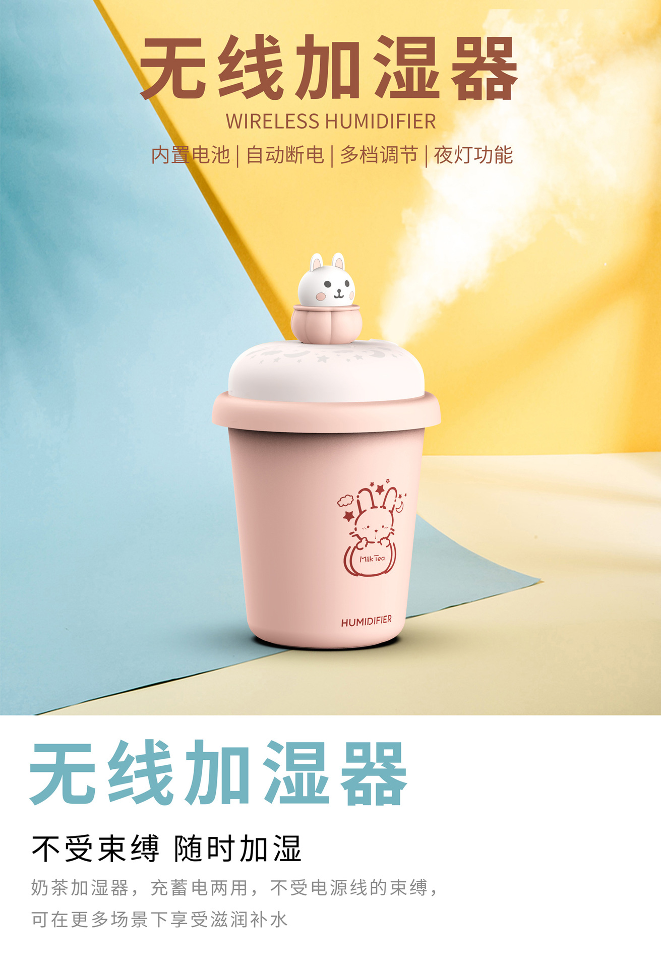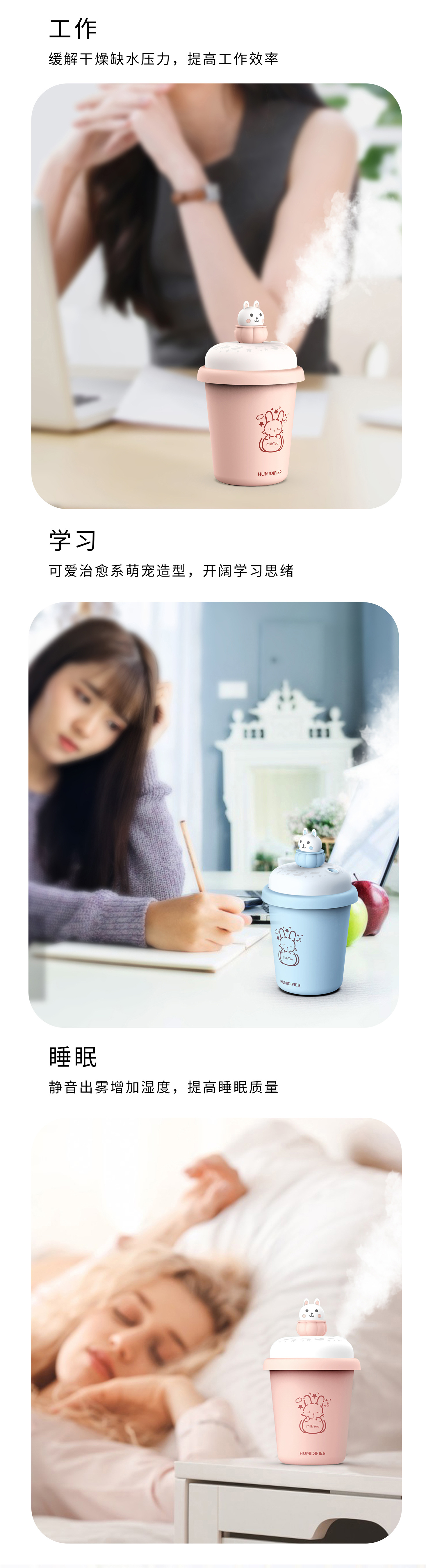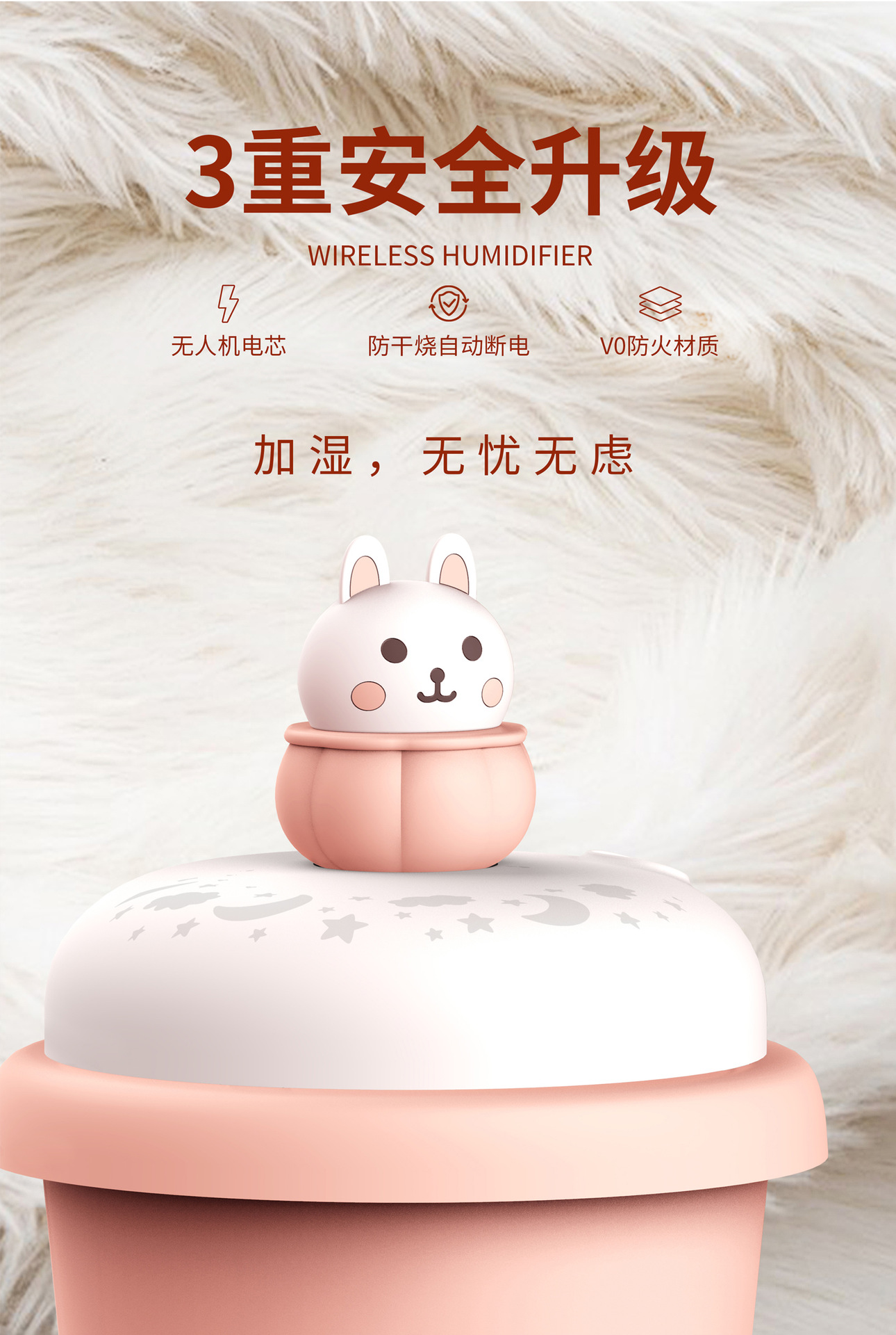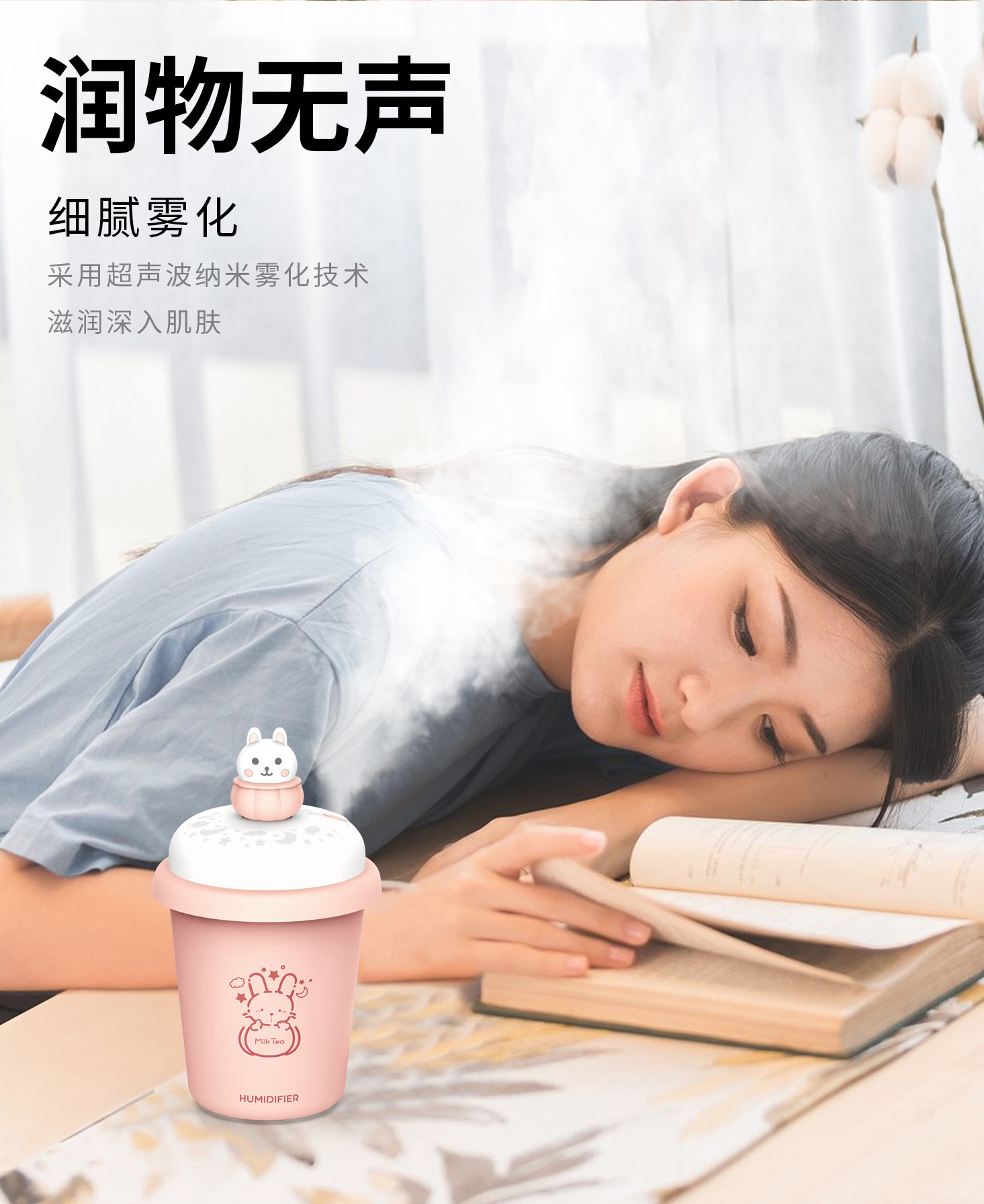 【迷你桌面加湿器】无线加湿器萌宠女生礼物办公室小型宿舍学生可充电款喷雾usb加湿器可爱车载便携式无线保湿器夜灯