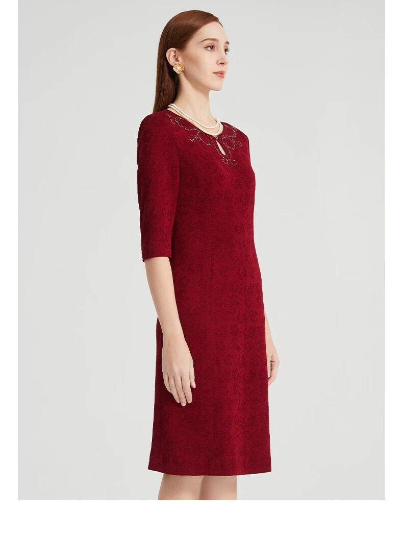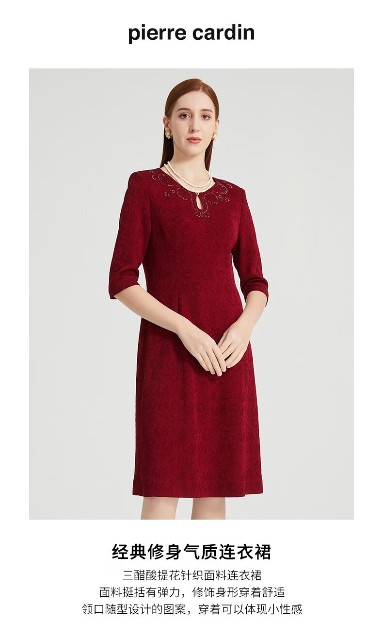 皮尔卡丹女装连衣裙醋酸提花短袖淑女气质场合A字裙P2104E2073T0