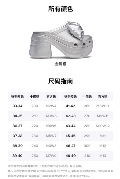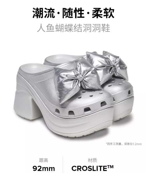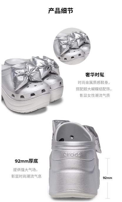 CROCS洞洞鞋 人鱼鞋蝴蝶结Clog 金属银210050-0P1