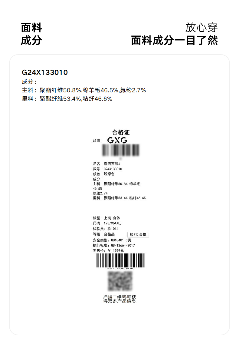 GXG男装 含羊毛合体商务西装男士正装 24年秋G24X133010