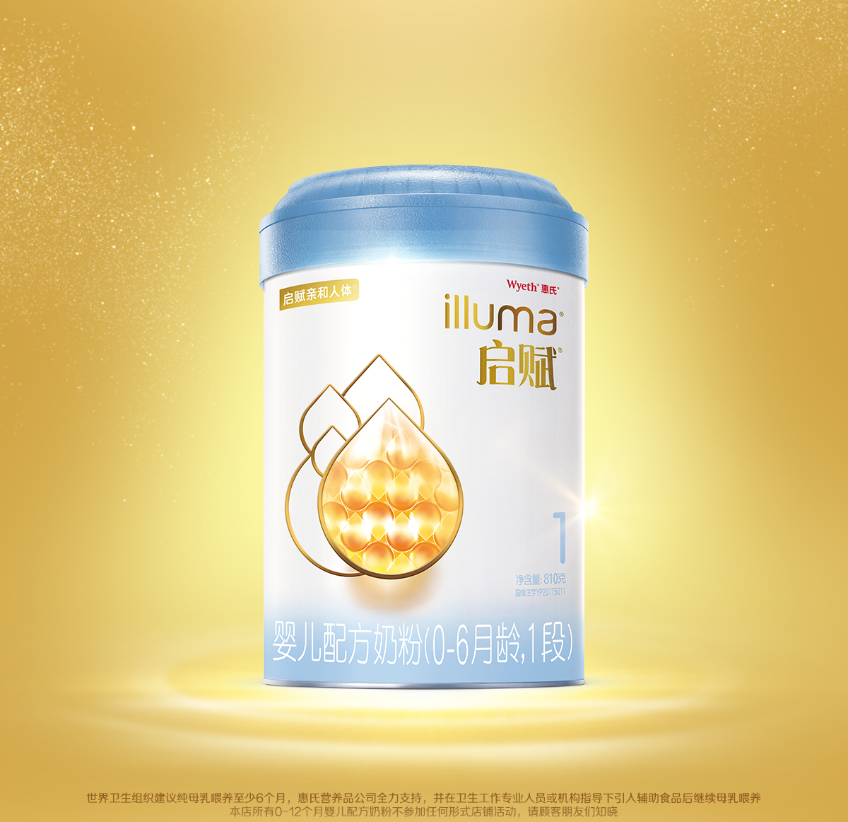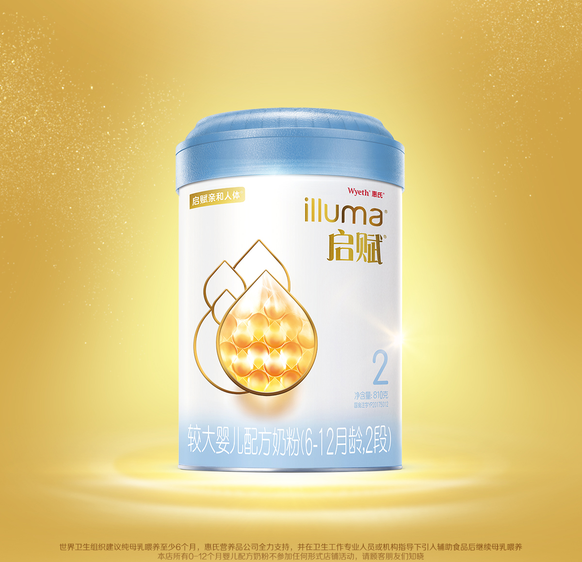 惠氏启赋(Wyeth illuma)蓝钻亲和人体2段奶粉一箱6桶