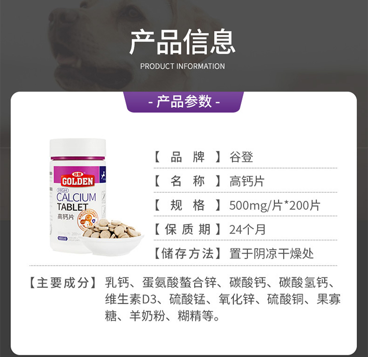 谷登宠物狗狗高钙片幼犬泰迪金毛健骨补钙营养