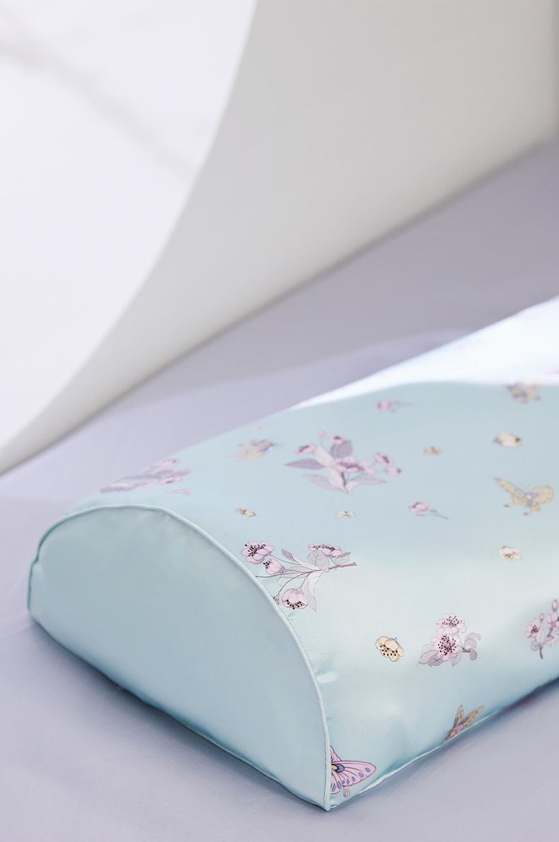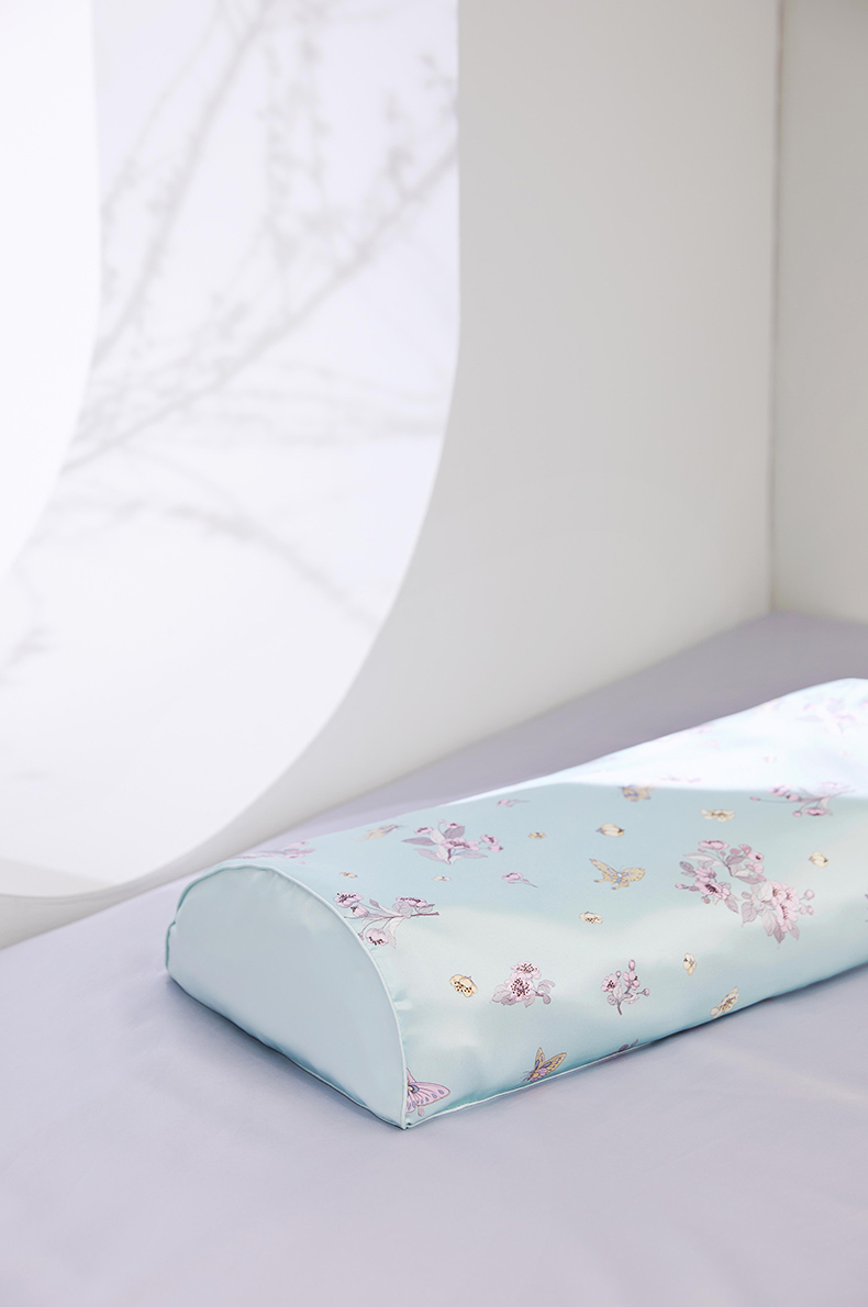 荞麦枕有三层,最外层为印花真丝面料,美容护肤,不长螨虫。