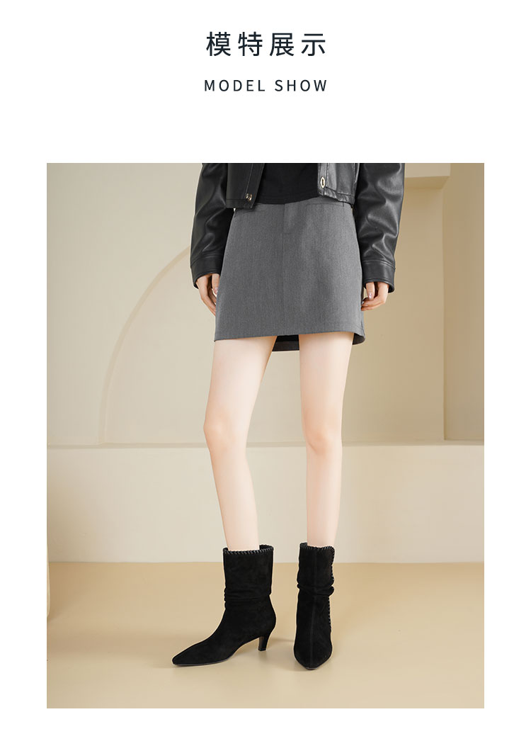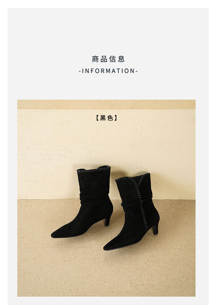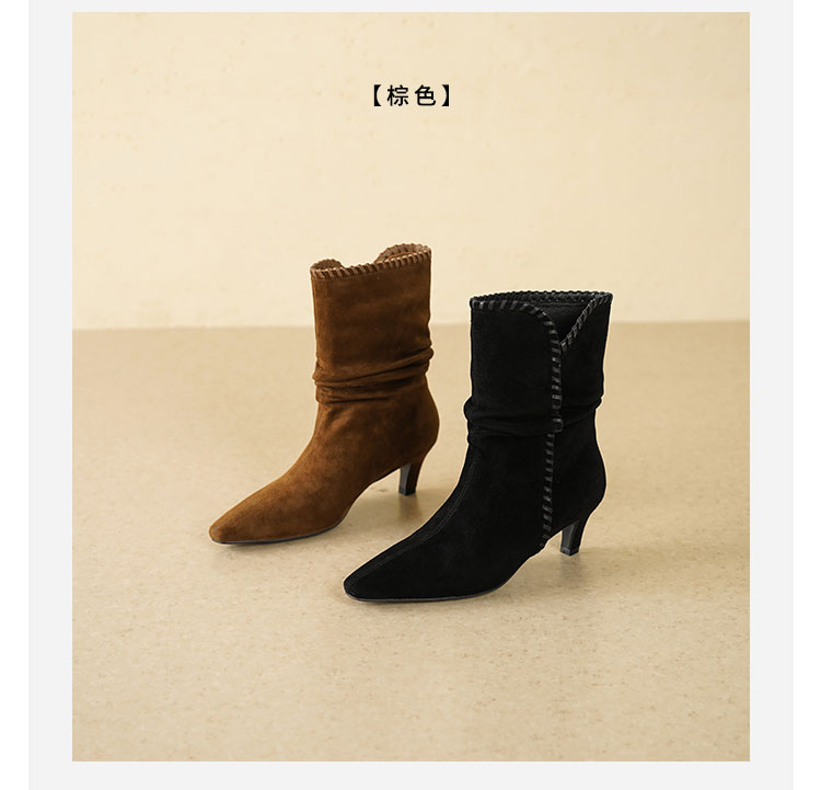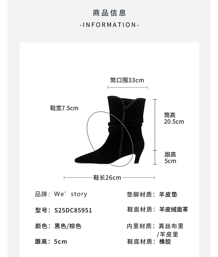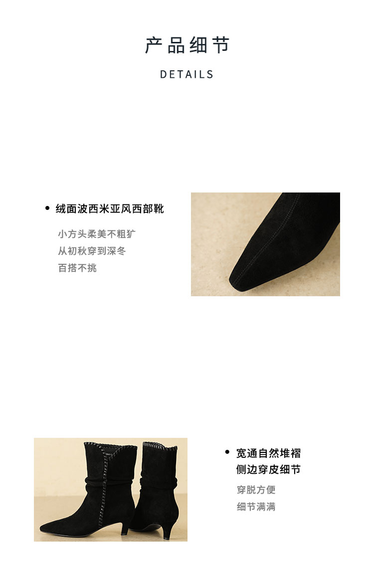 westory2025年冬季小方头猫跟堆褶宽筒靴波西米亚风西部靴一脚蹬中筒靴S25DC85951