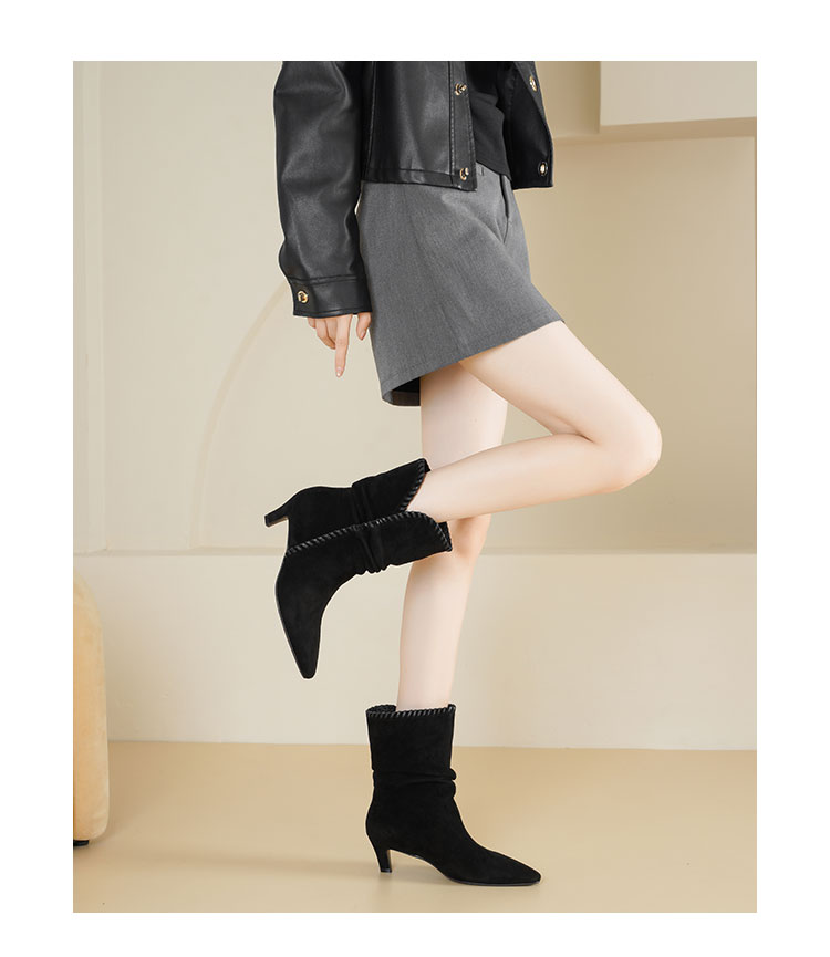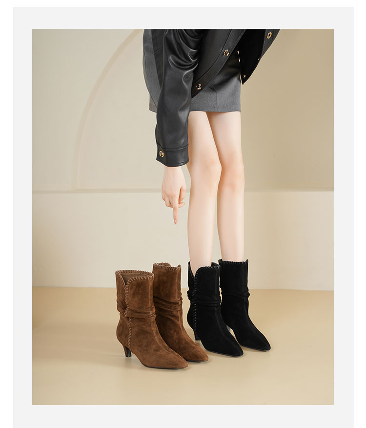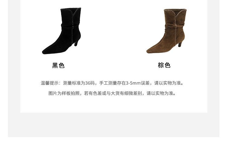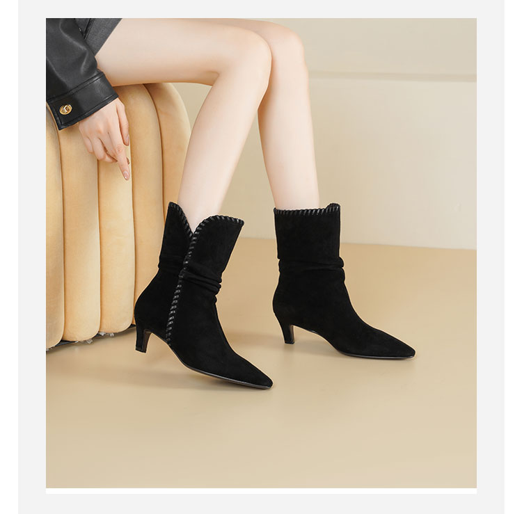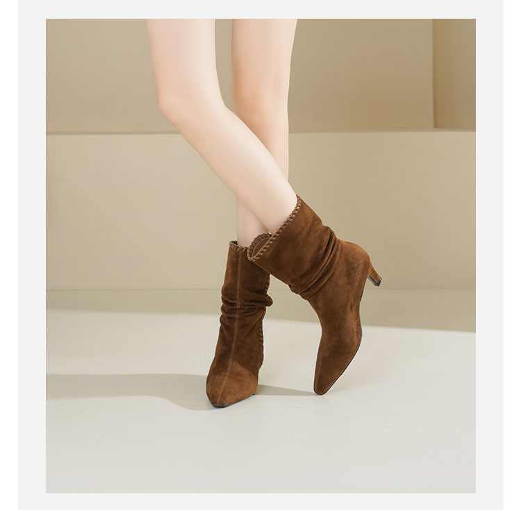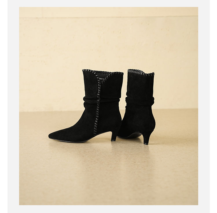 westory2025年冬季小方头猫跟堆褶宽筒靴波西米亚风西部靴一脚蹬中筒靴S25DC85951