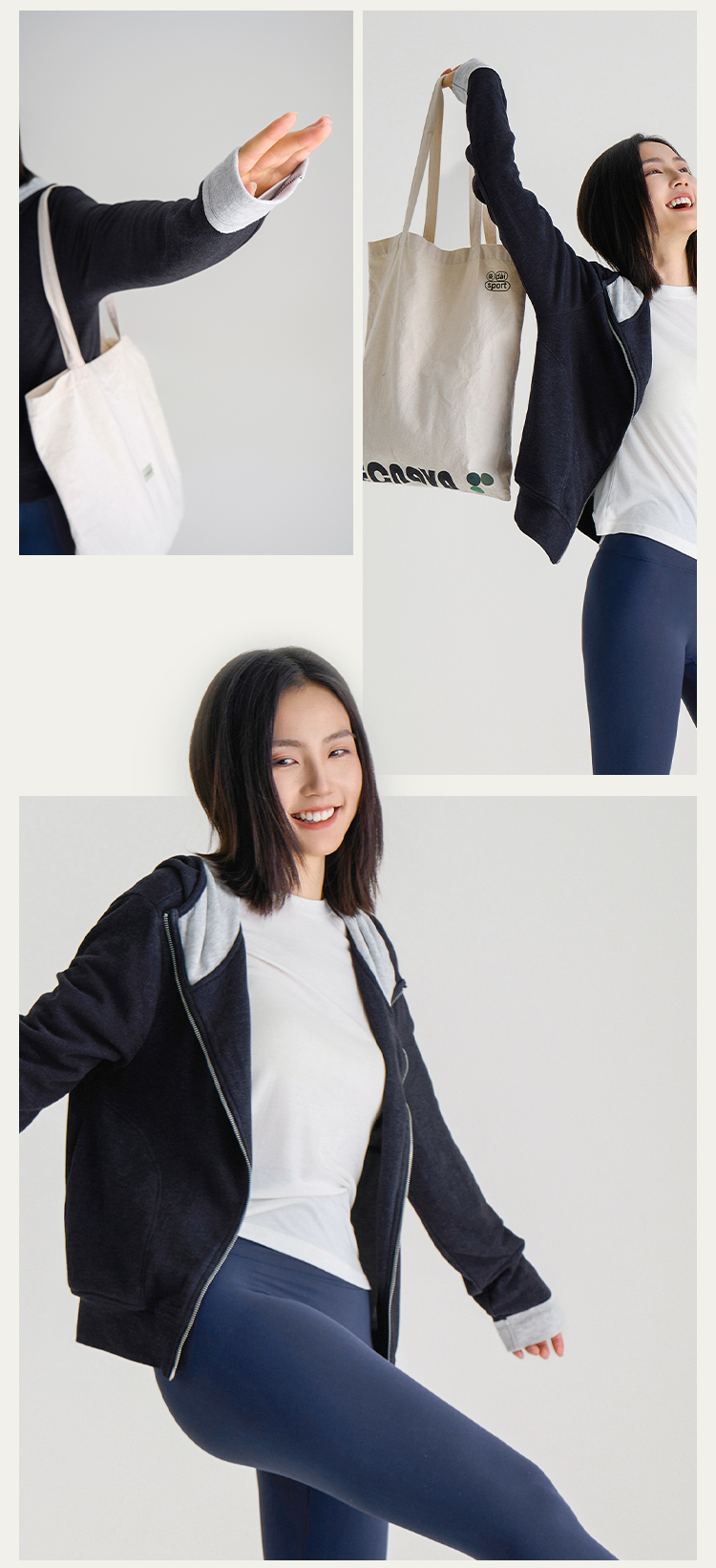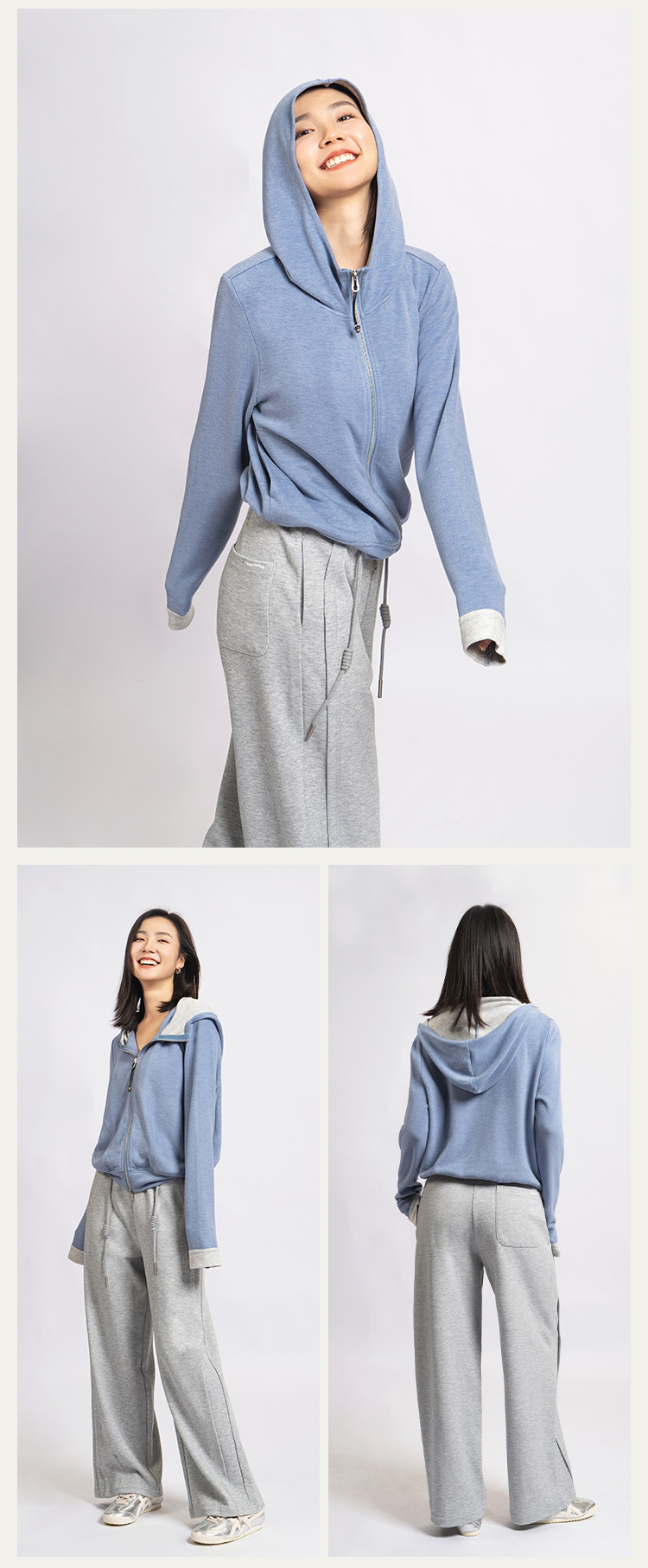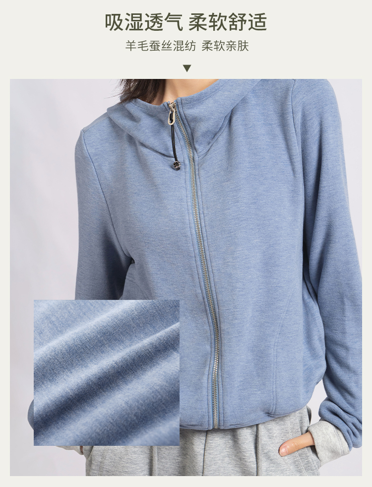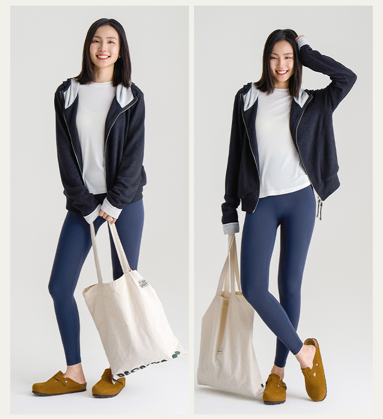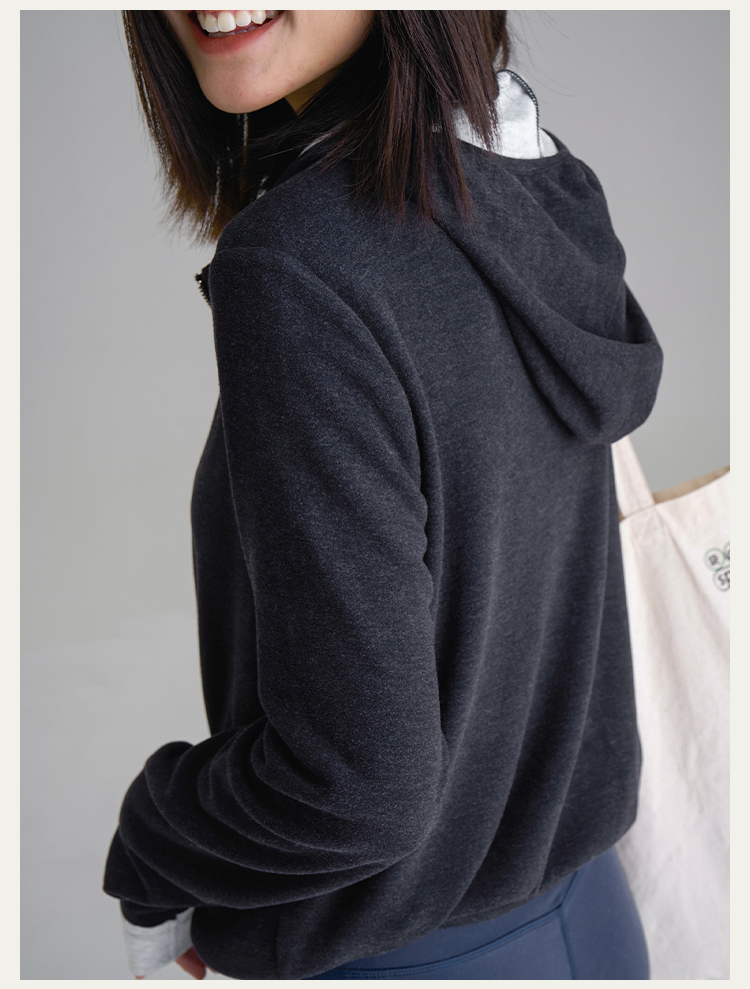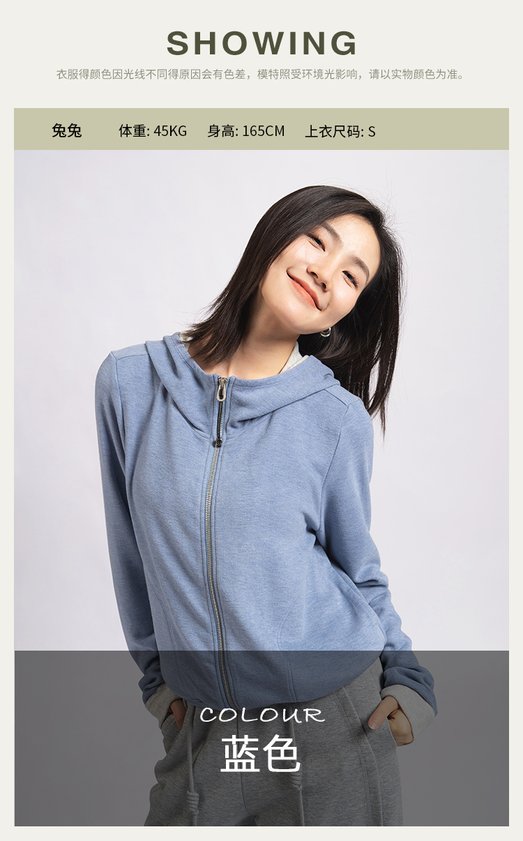 L RECNAVA [高弹柔软拉绒] 正肩连帽卫衣 袖口撞色拉链外套