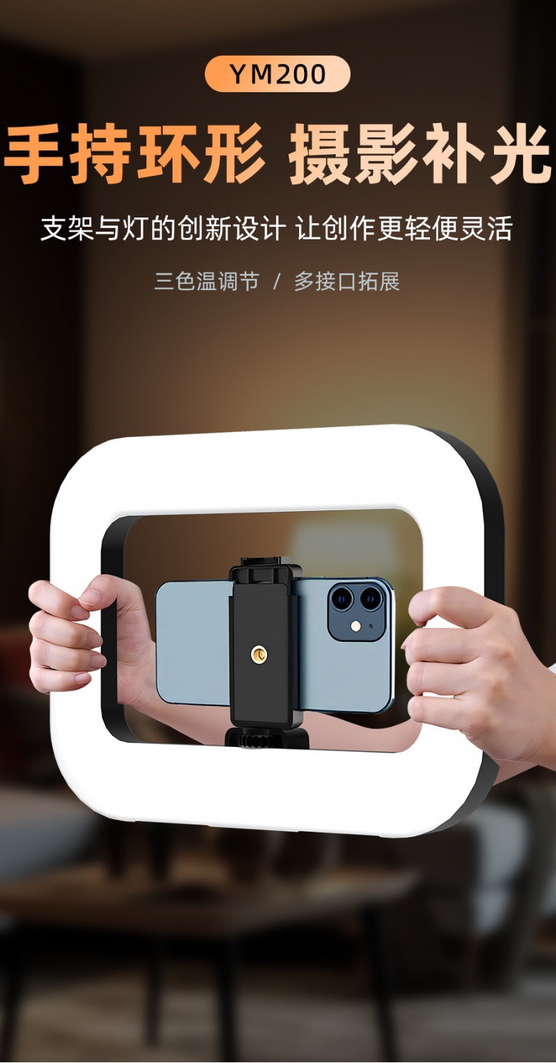 持久直视不刺眼【三色温调节!多接口拓展】旅行出行手持补光灯拍摄美颜摄影直播户外补光灯桌面兔笼摄影环形灯。ha