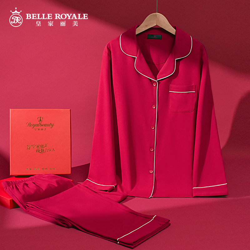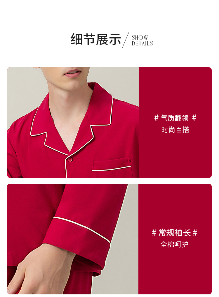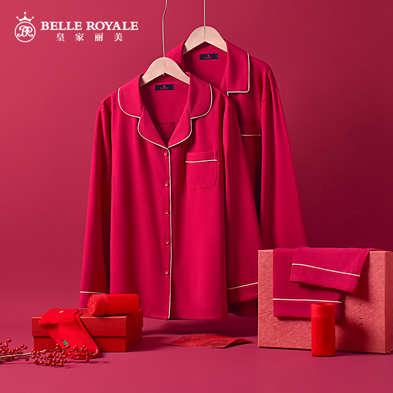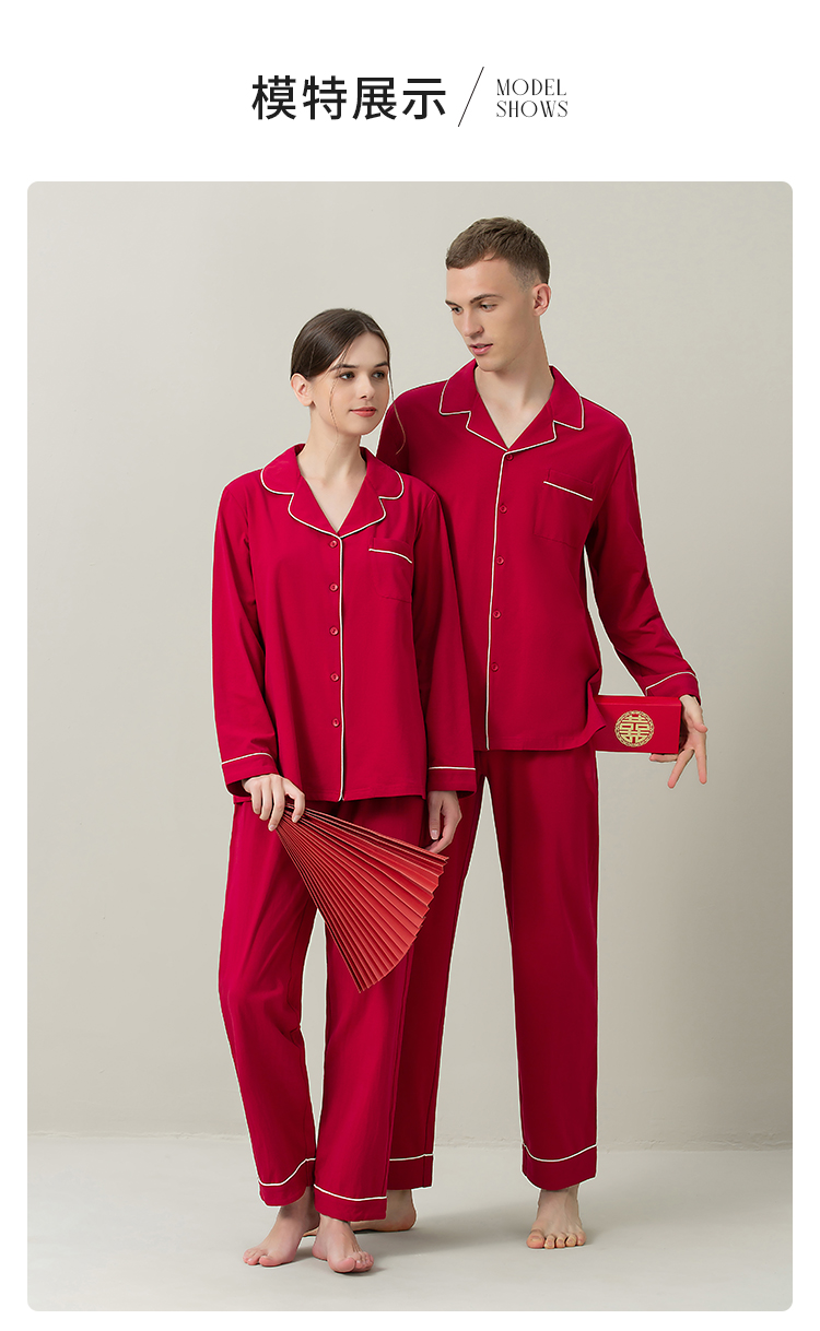 皇家丽美红色睡衣男春秋款结婚新婚情侣棉质家居服本命年JJT9898