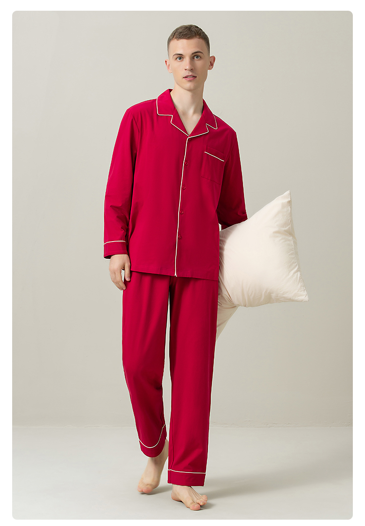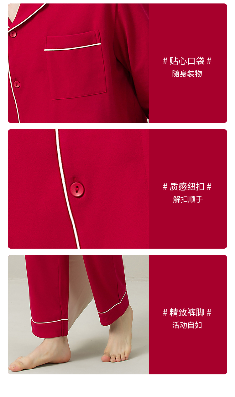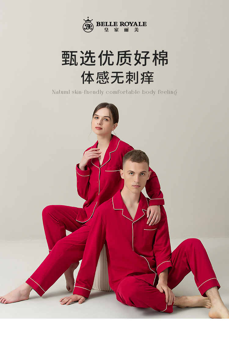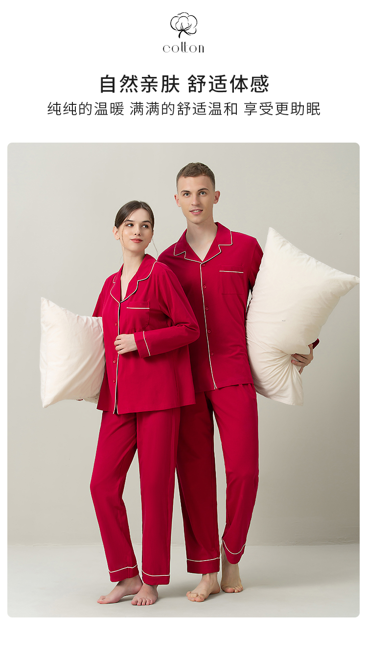 皇家丽美红色睡衣男春秋款结婚新婚情侣棉质家居服本命年JJT9898