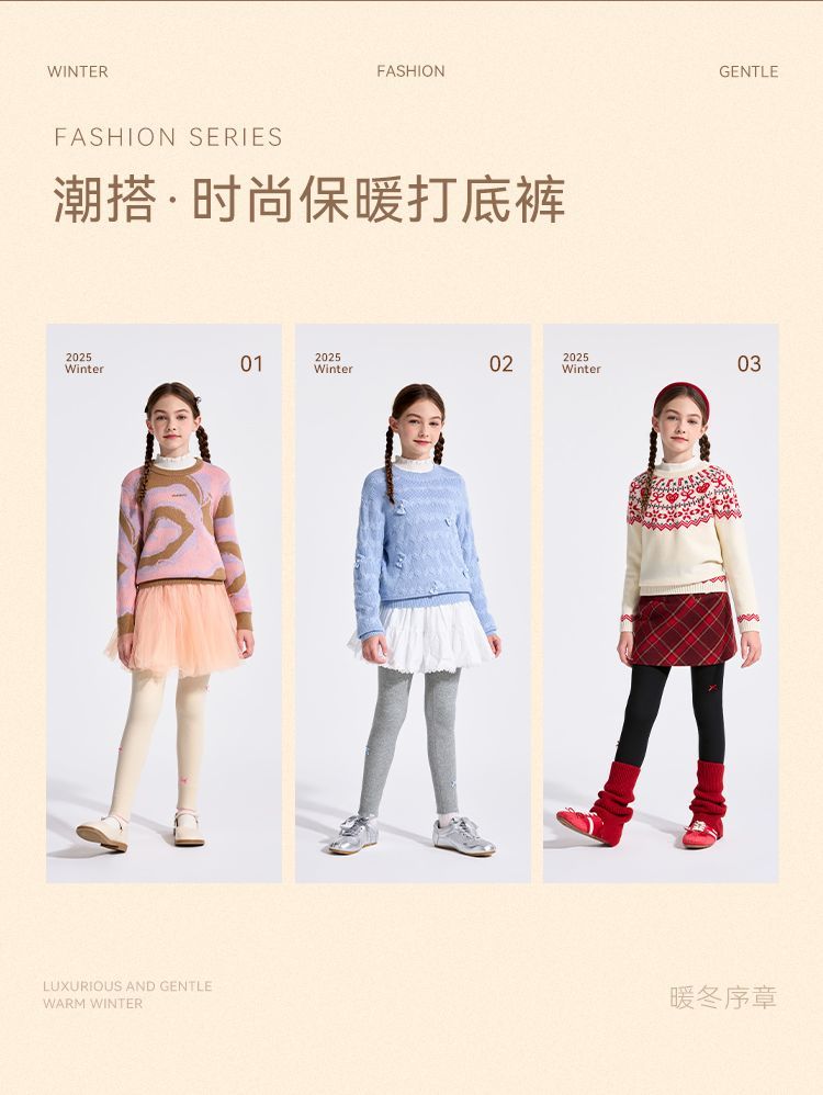 【英氏】【加绒】【110-170】女童加绒打底裤