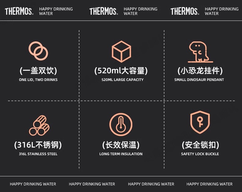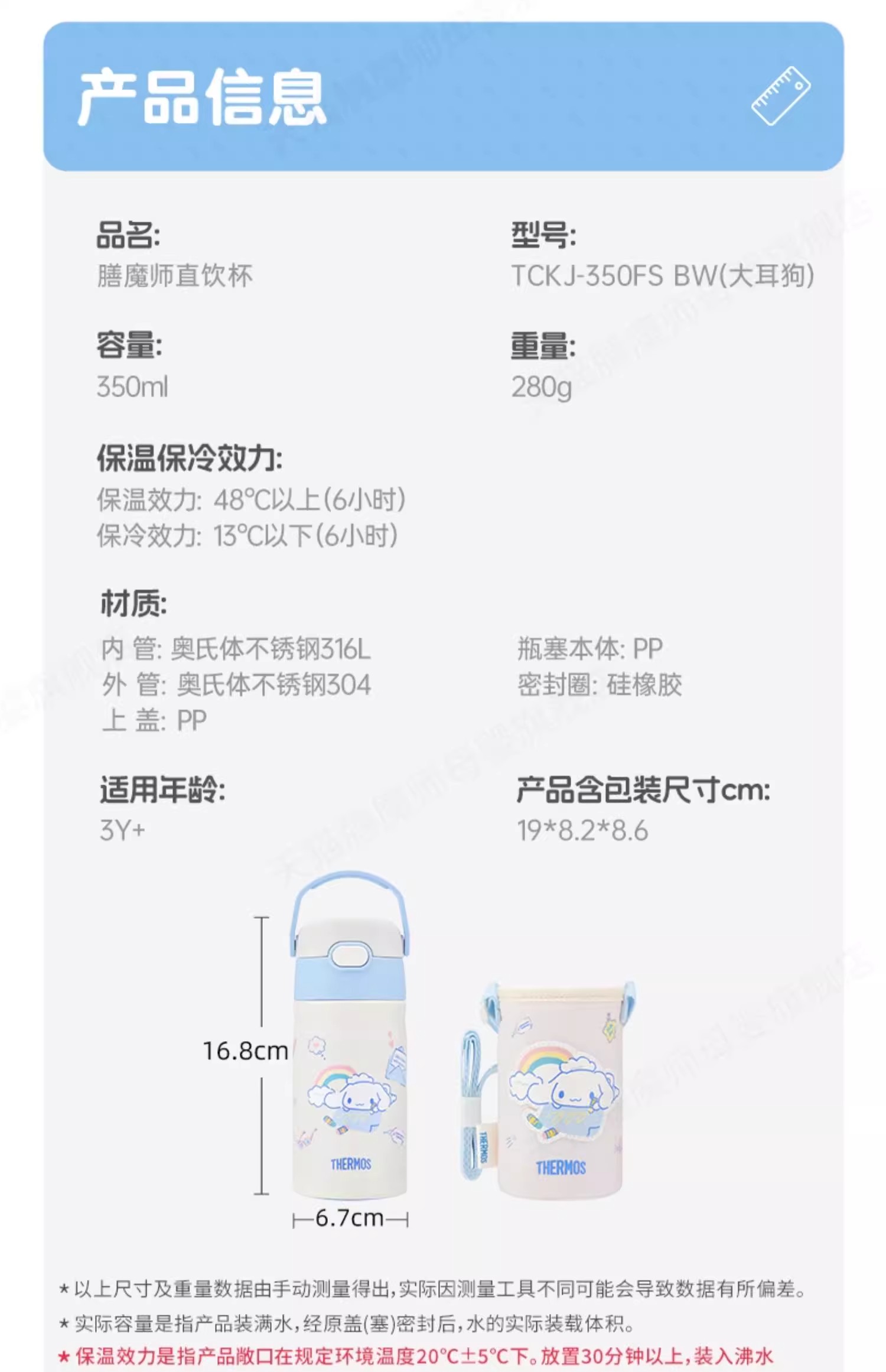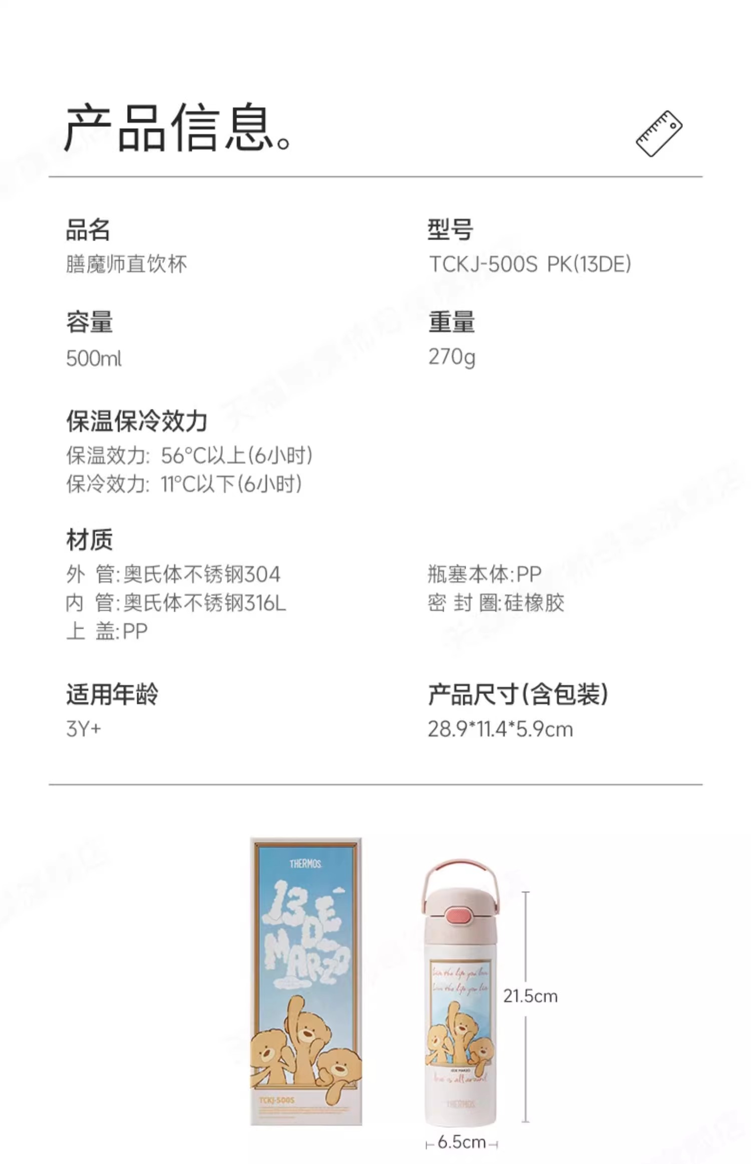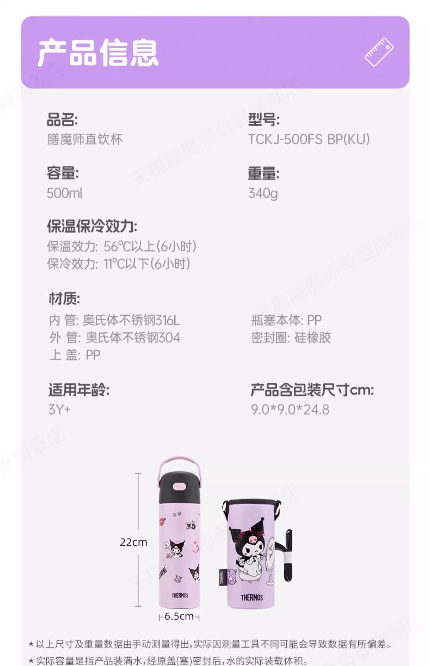 膳魔师 库洛米儿童直饮杯宝宝保温杯上学专用水杯女生便携水壶 1岁+