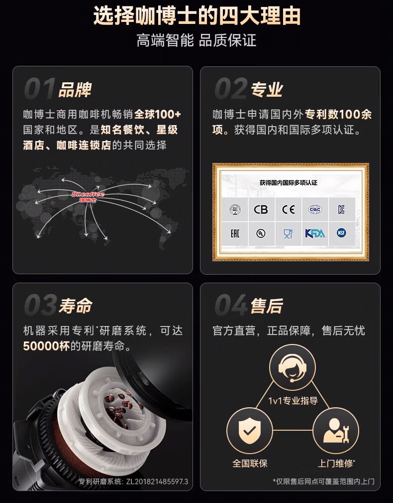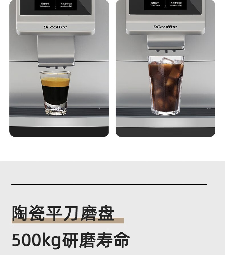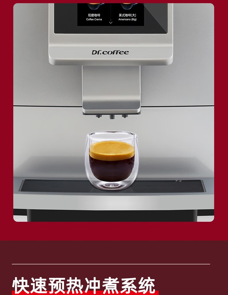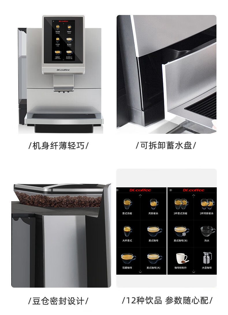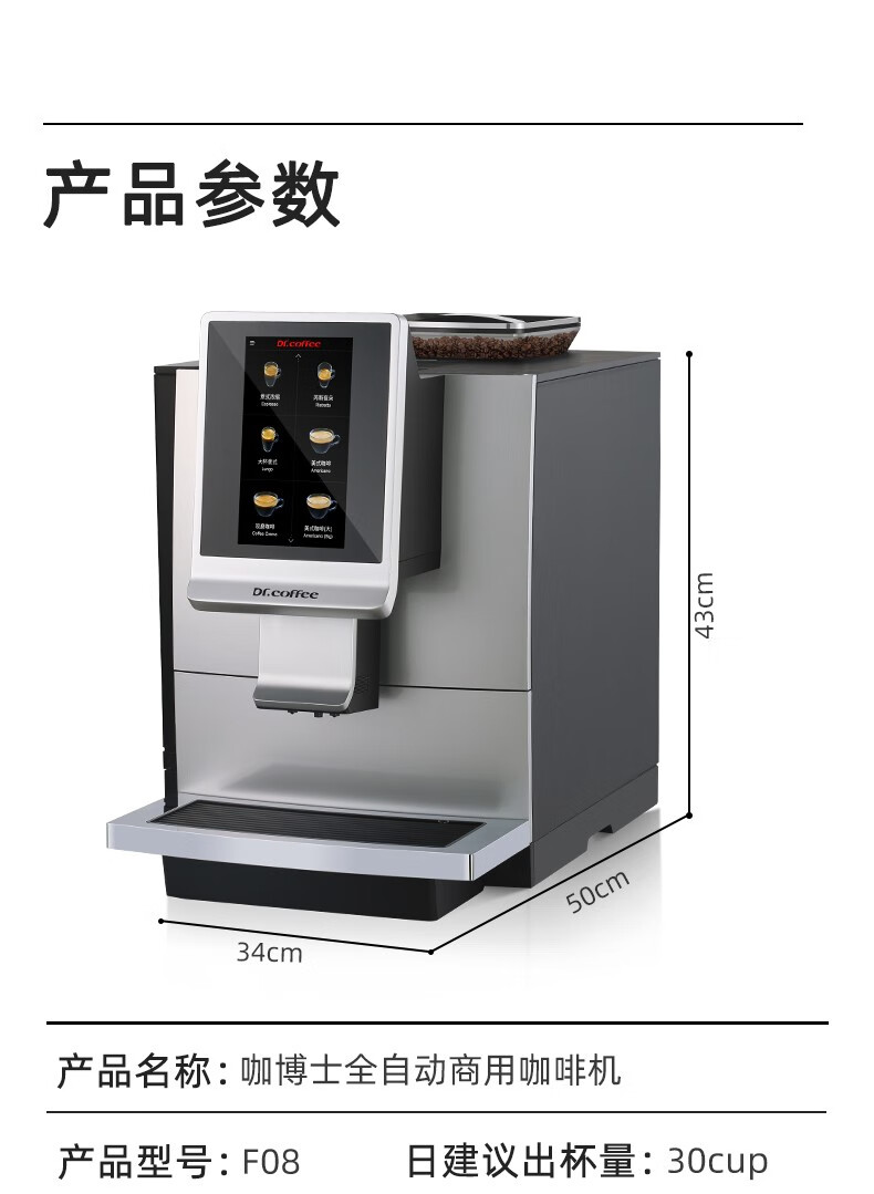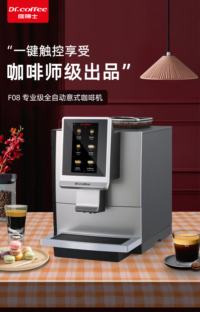 咖博士(Dr.coffee)【】咖啡机商用意式全自动7英寸触摸屏办公室大水箱一键萃取浓缩自动清洁F08_银色【新】