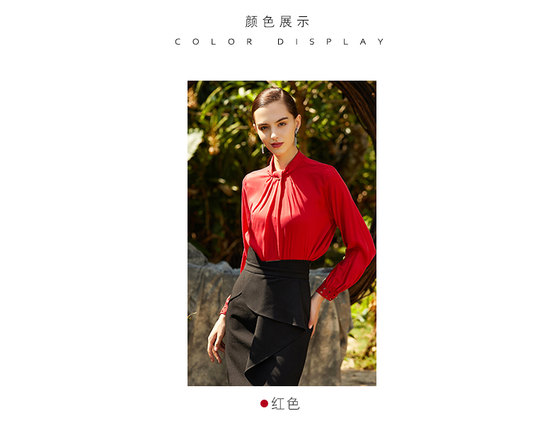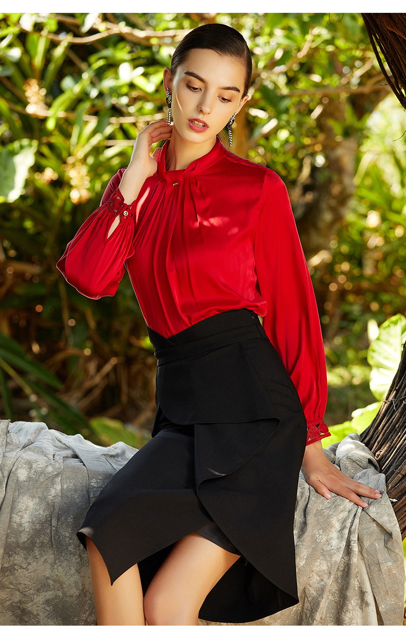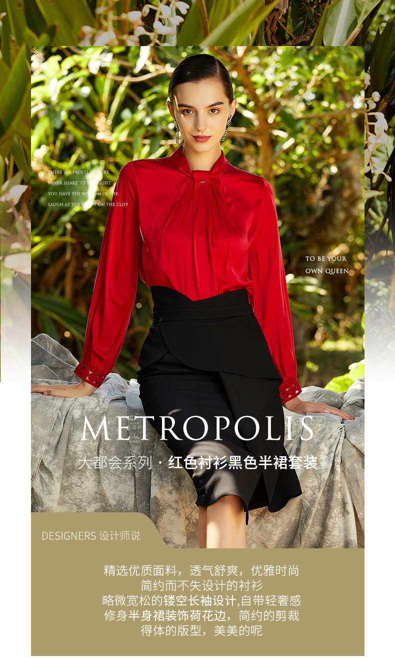 IWY/酒红色长袖衬衫黑色半裙套装203100B1+203100S1