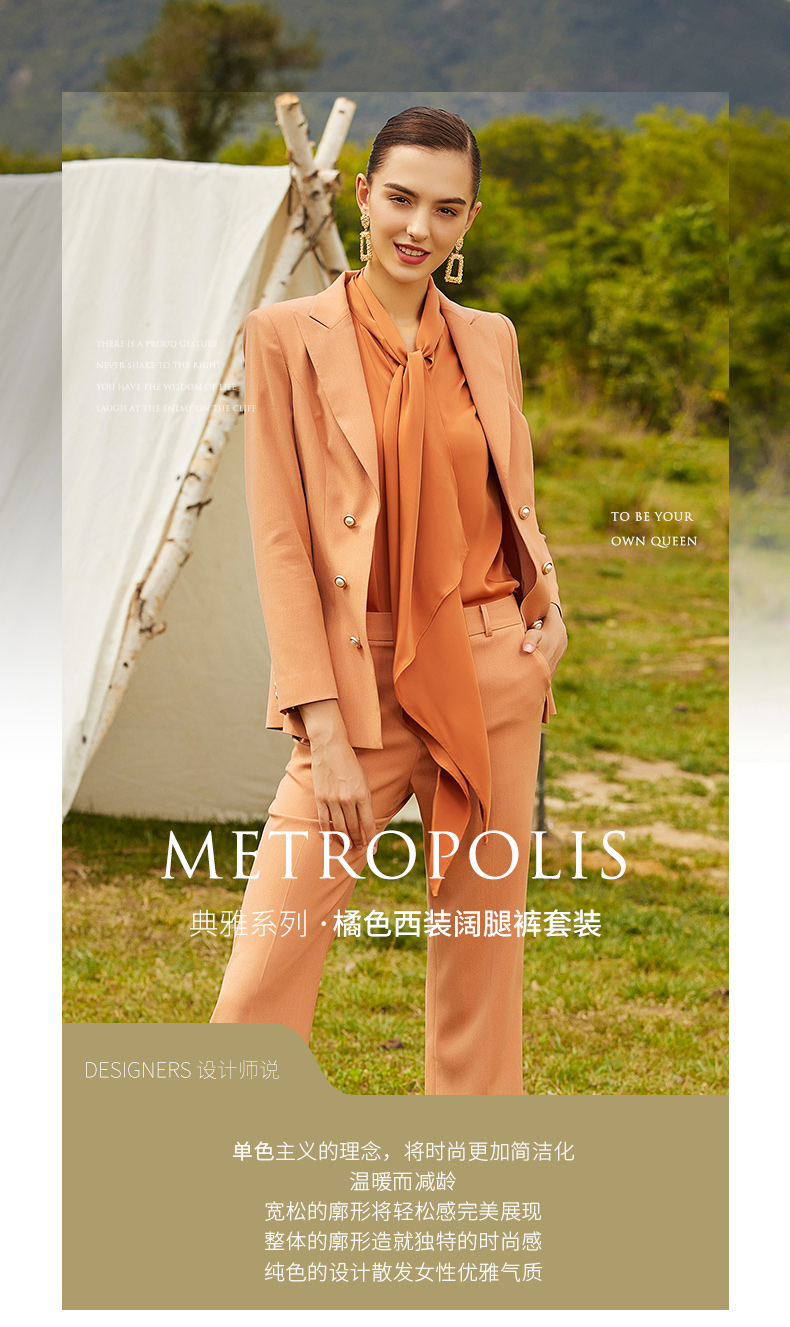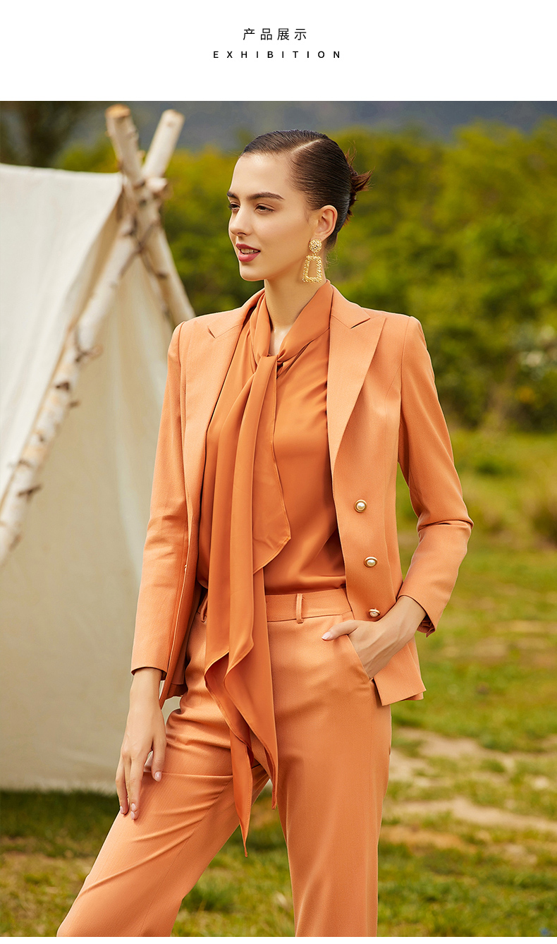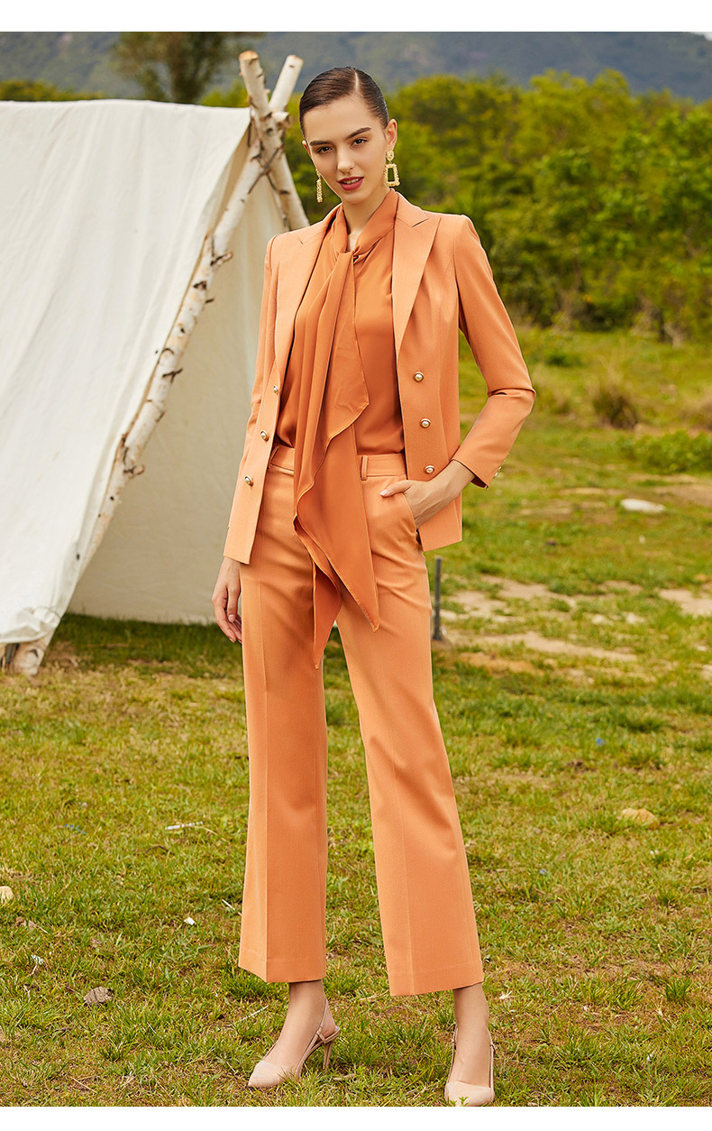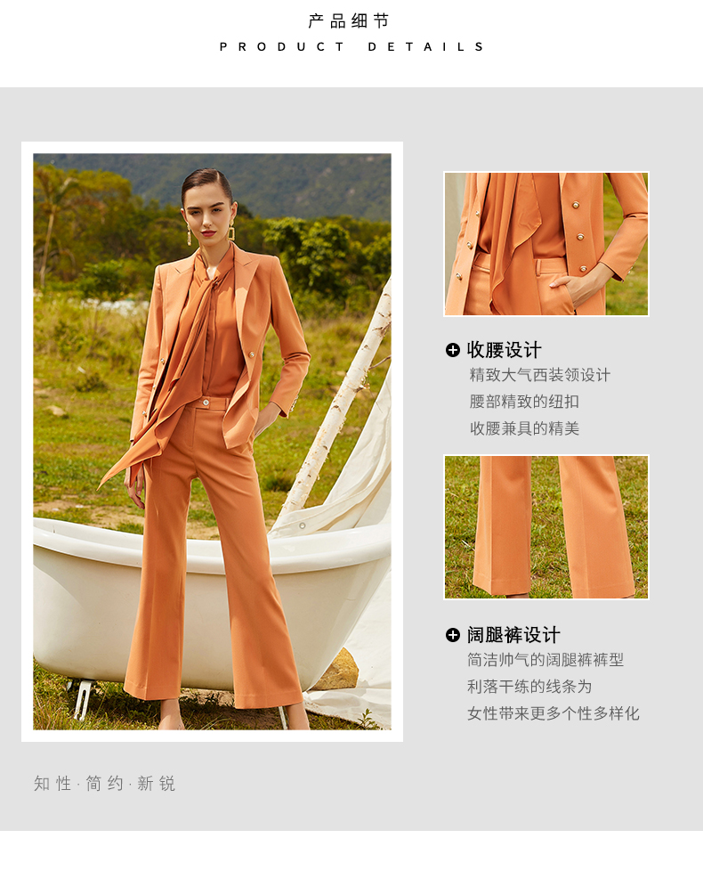 IWY/橘色长袖西装阔腿长裤套装203026C1+P3