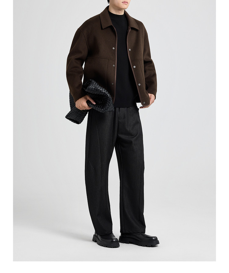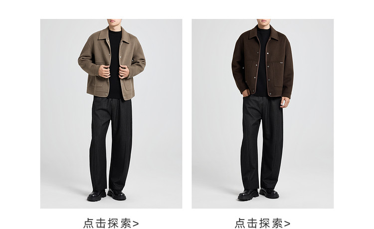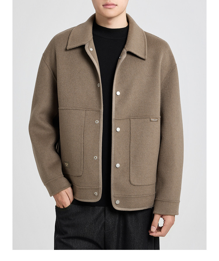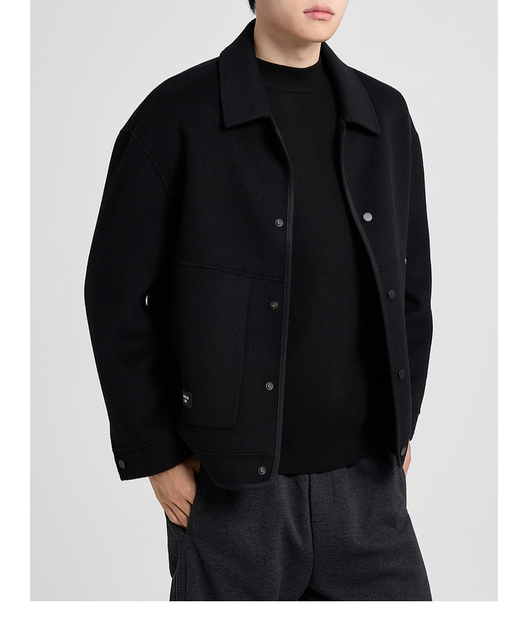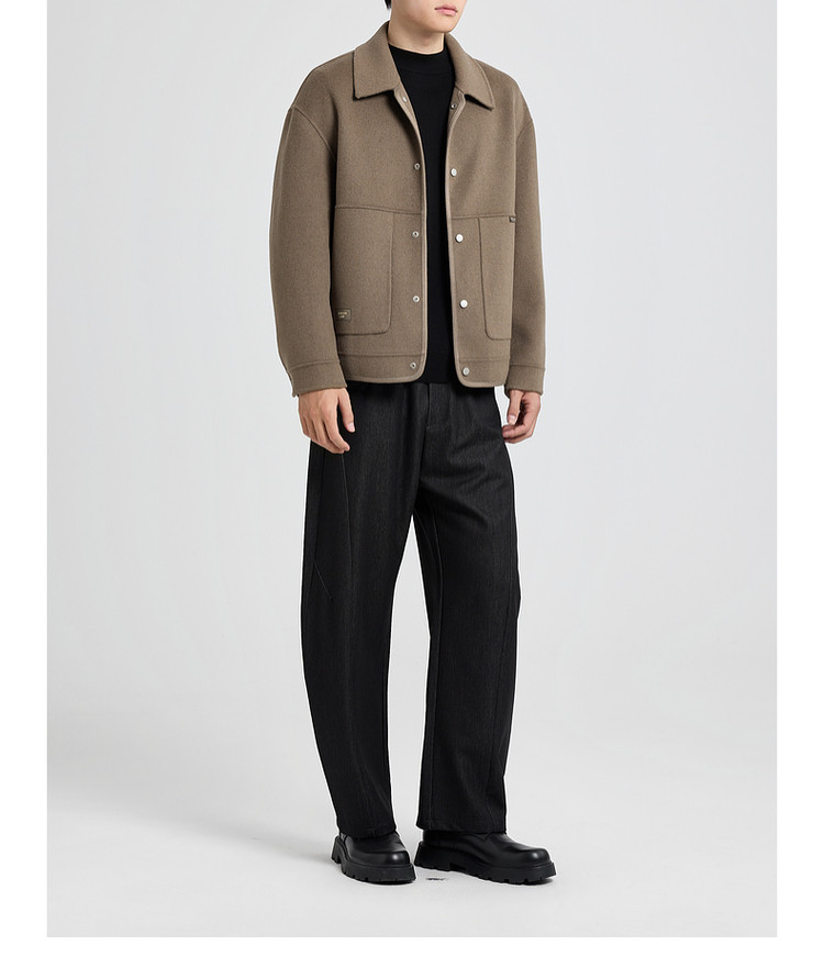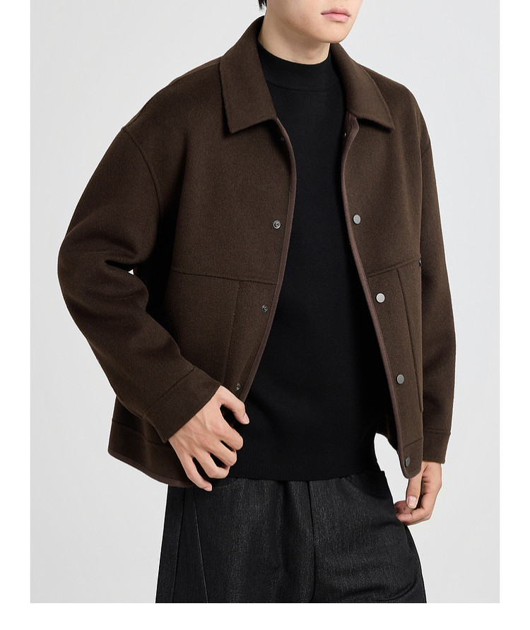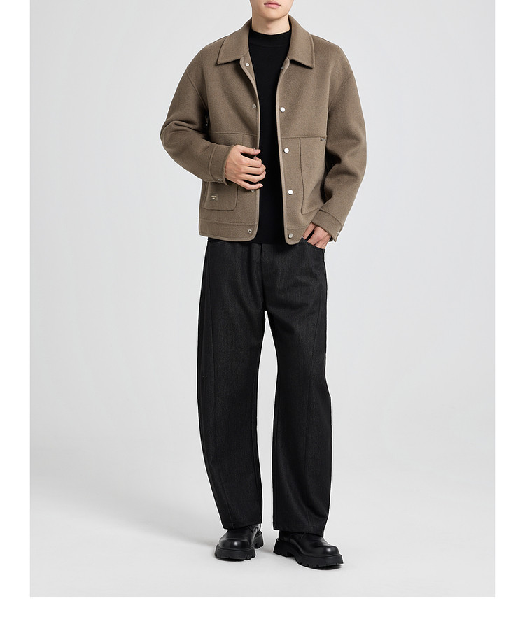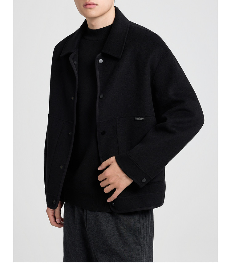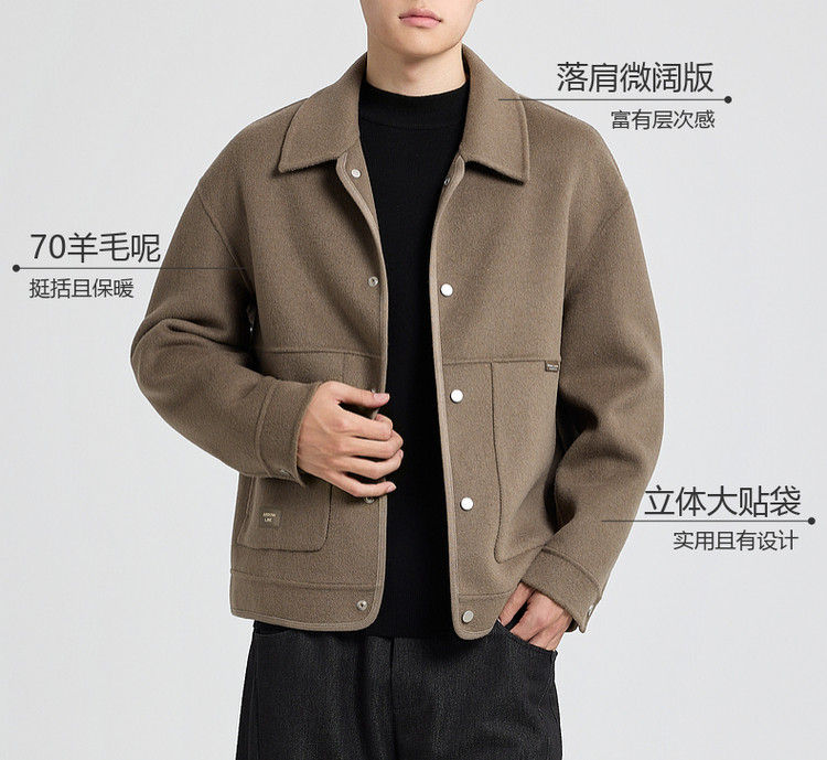 墨麦客男装2025年冬季翻领短款绵羊毛夹克男士双面呢大衣外套男