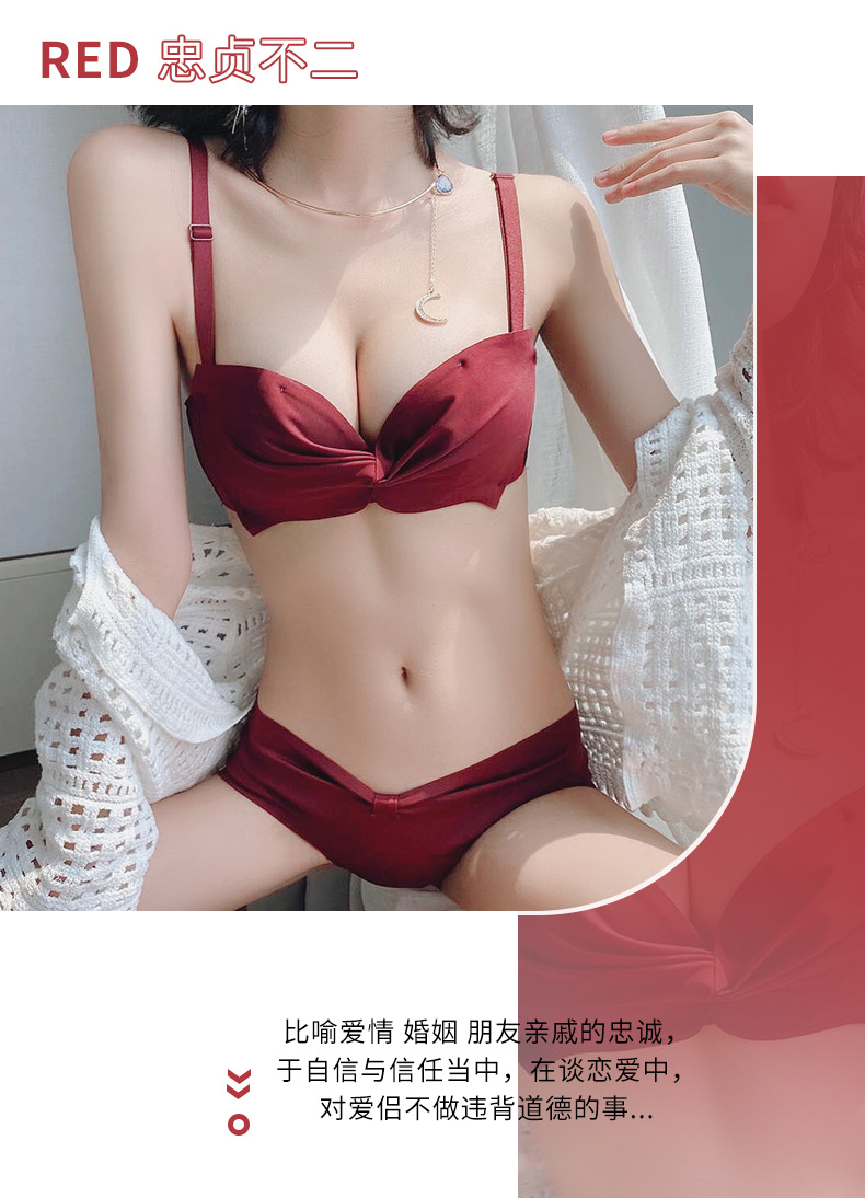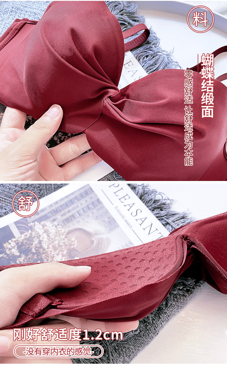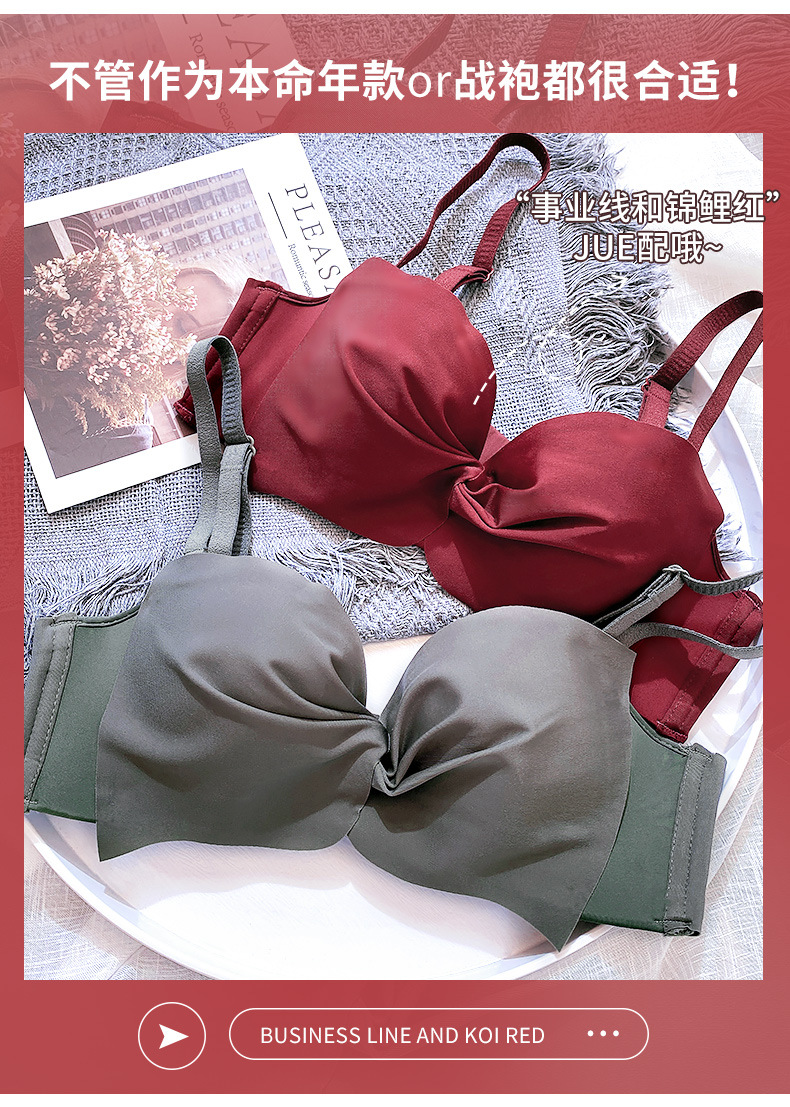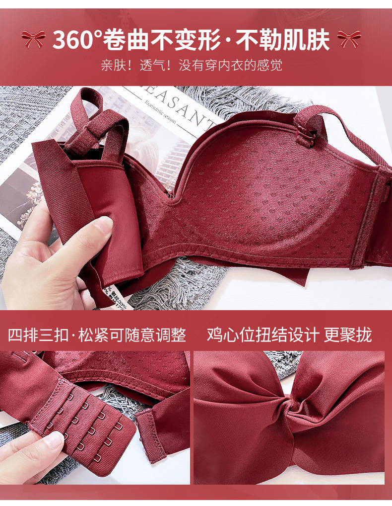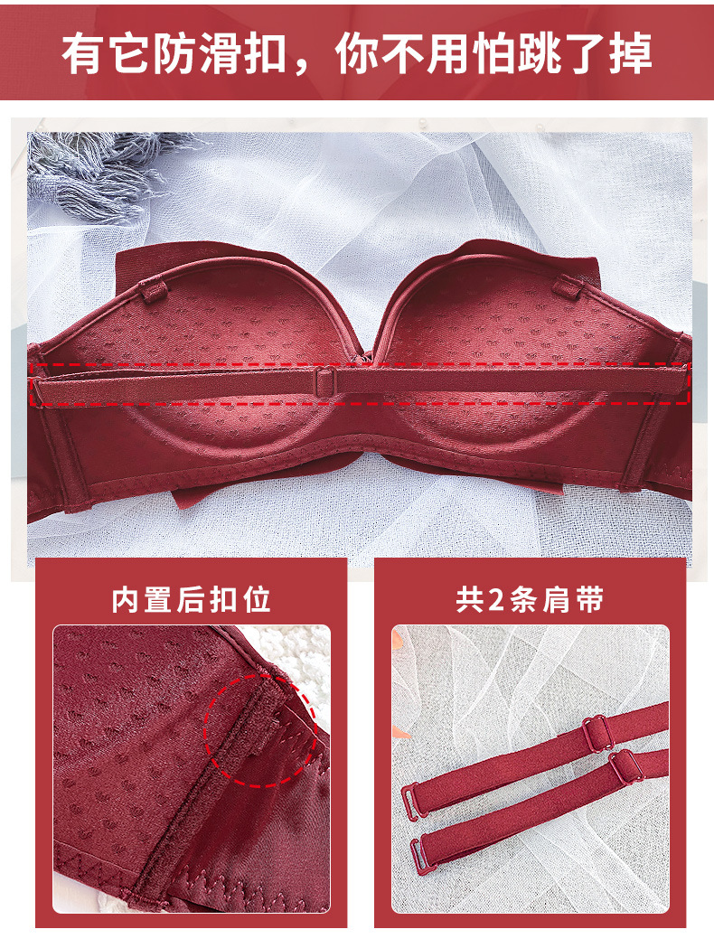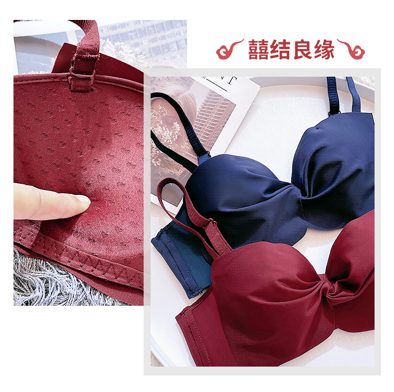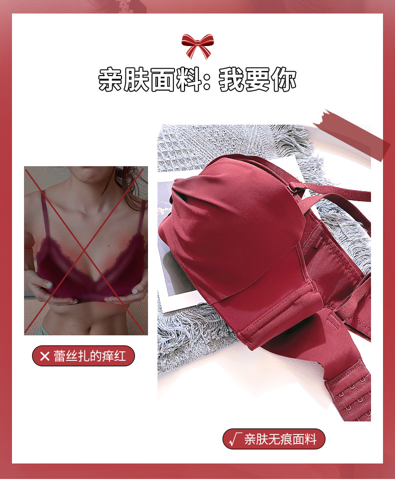 抹胸本命年牛内衣裤女酒红色结婚新娘小胸聚拢无钢圈文胸罩套装厚