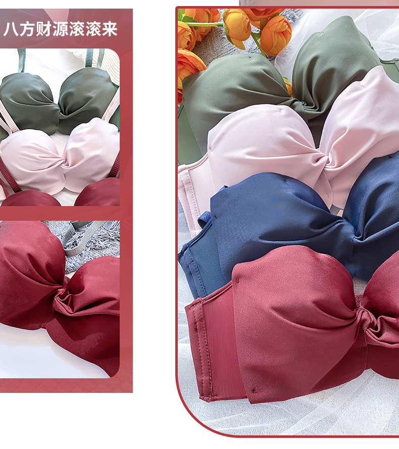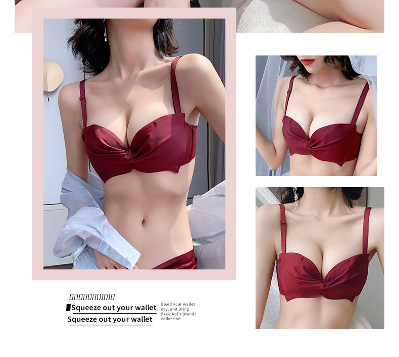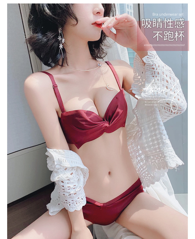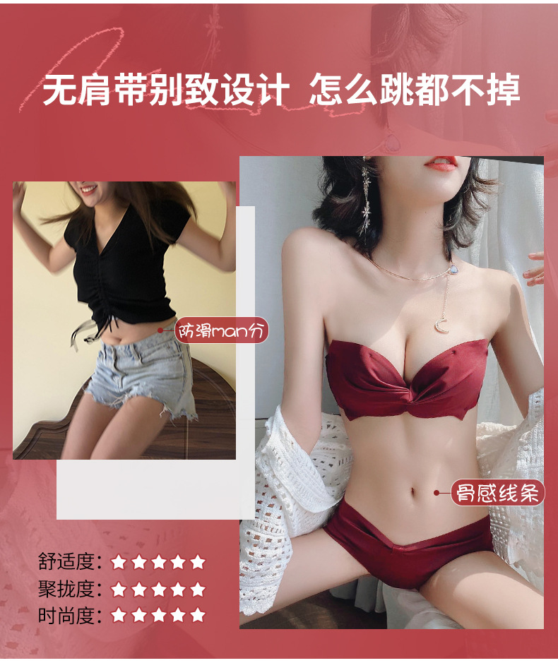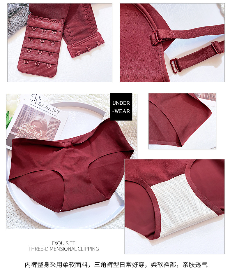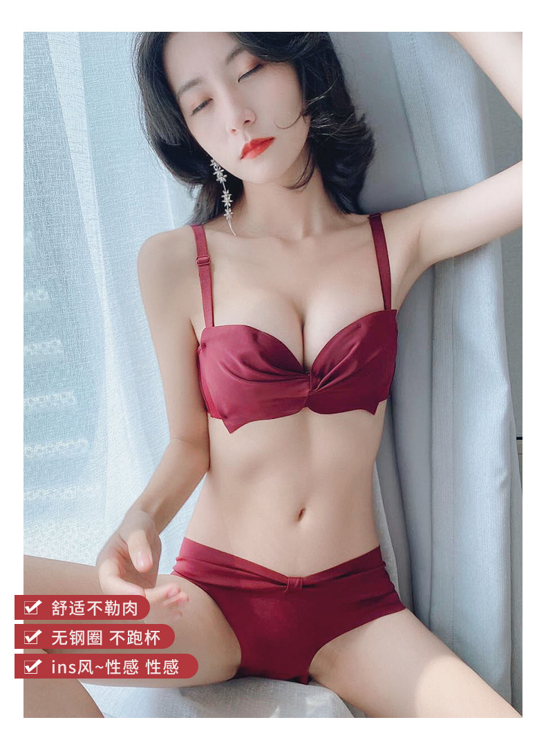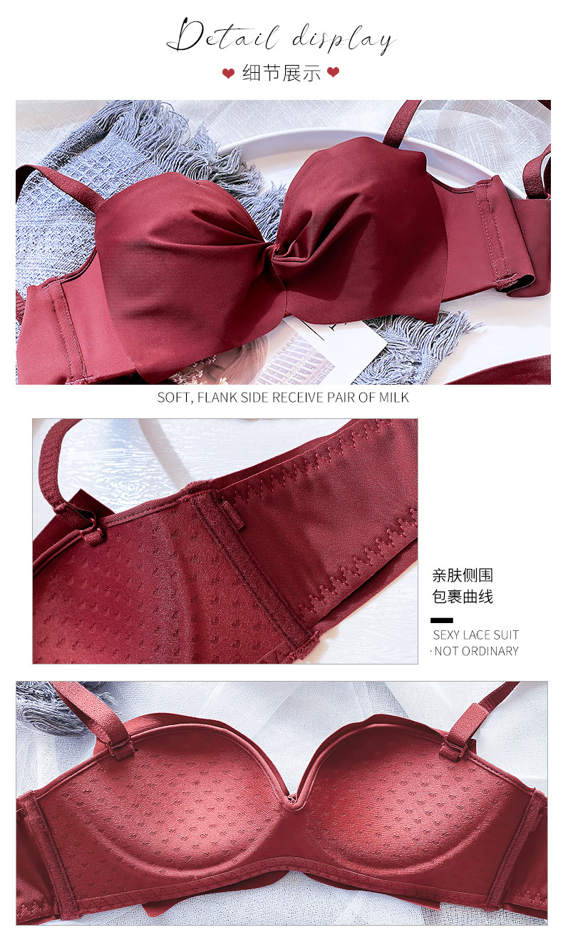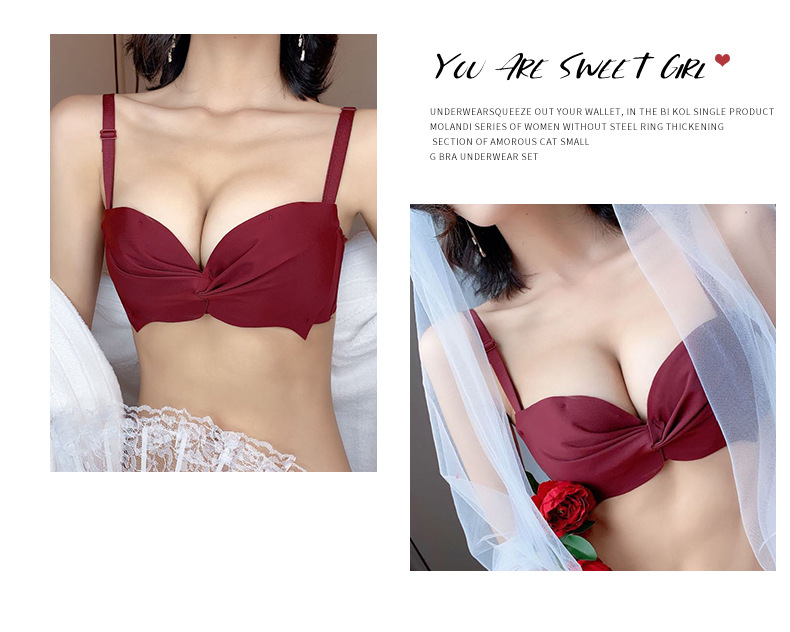 抹胸本命年牛内衣裤女酒红色结婚新娘小胸聚拢无钢圈文胸罩套装厚