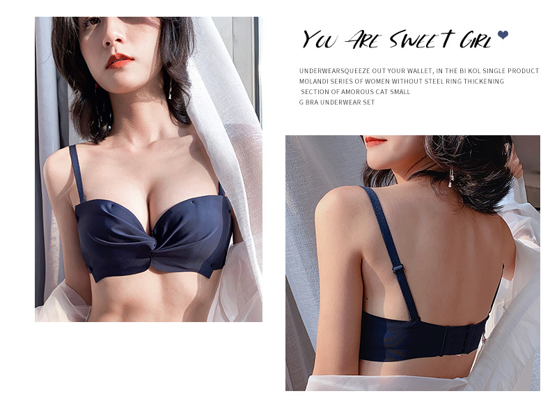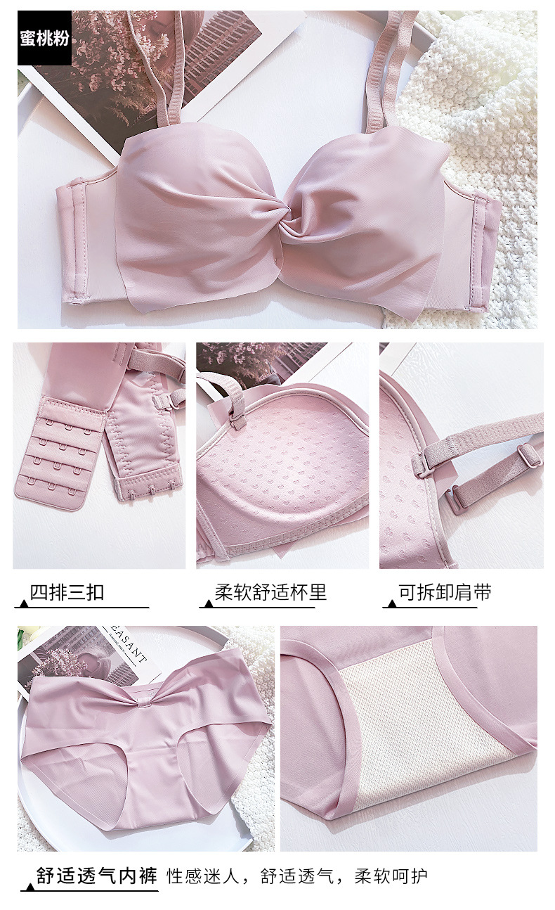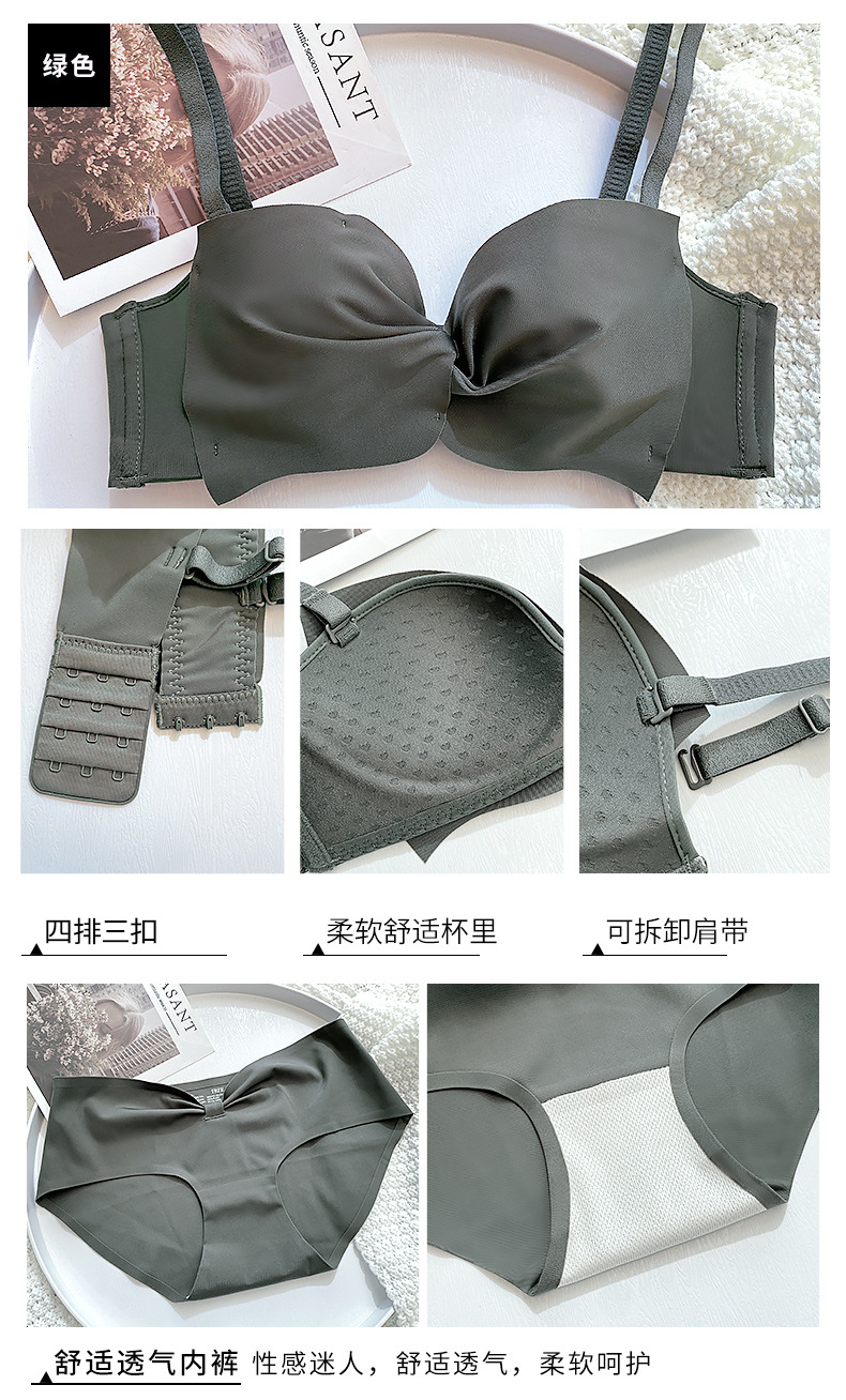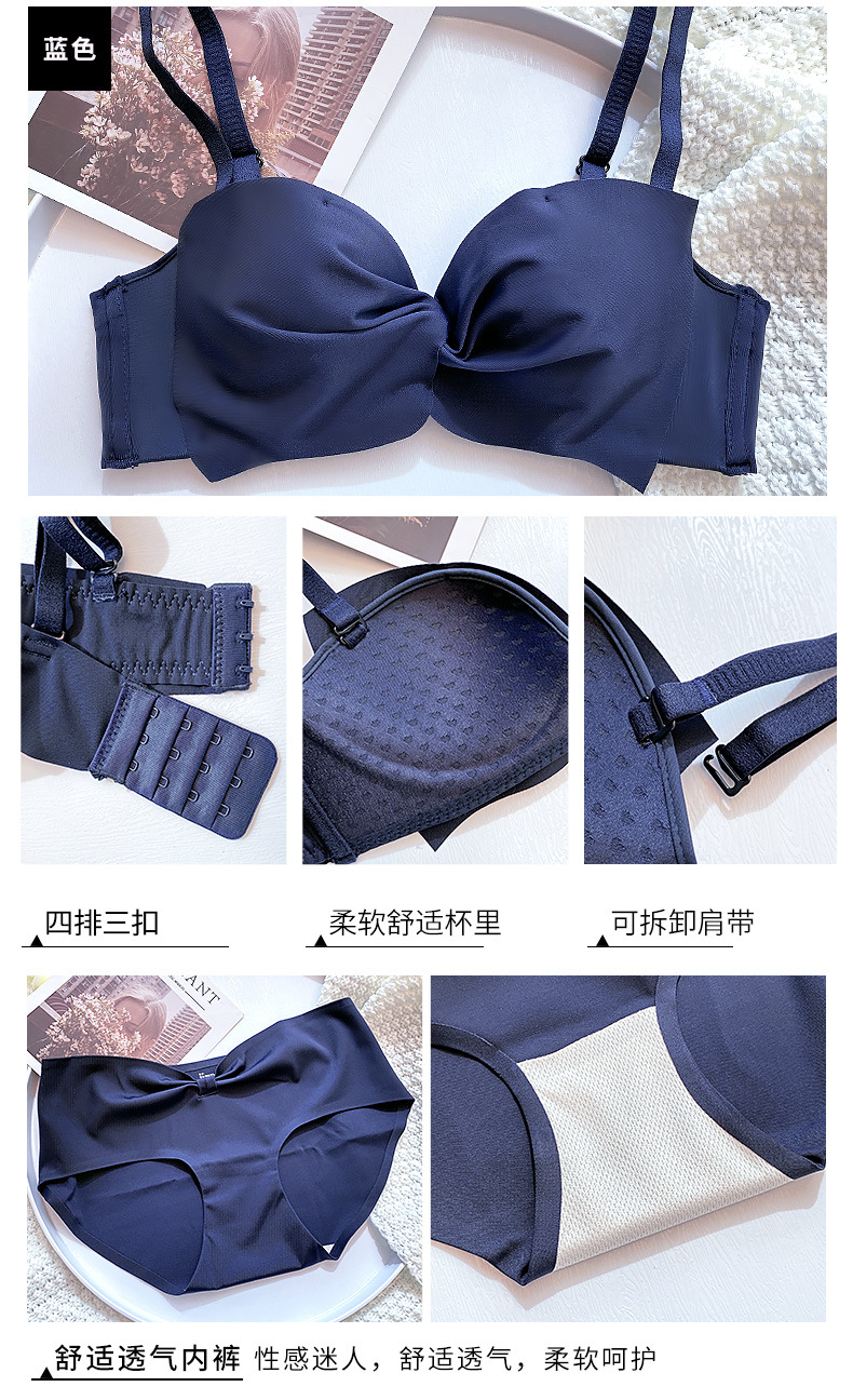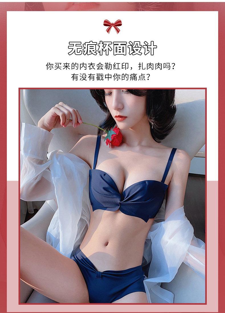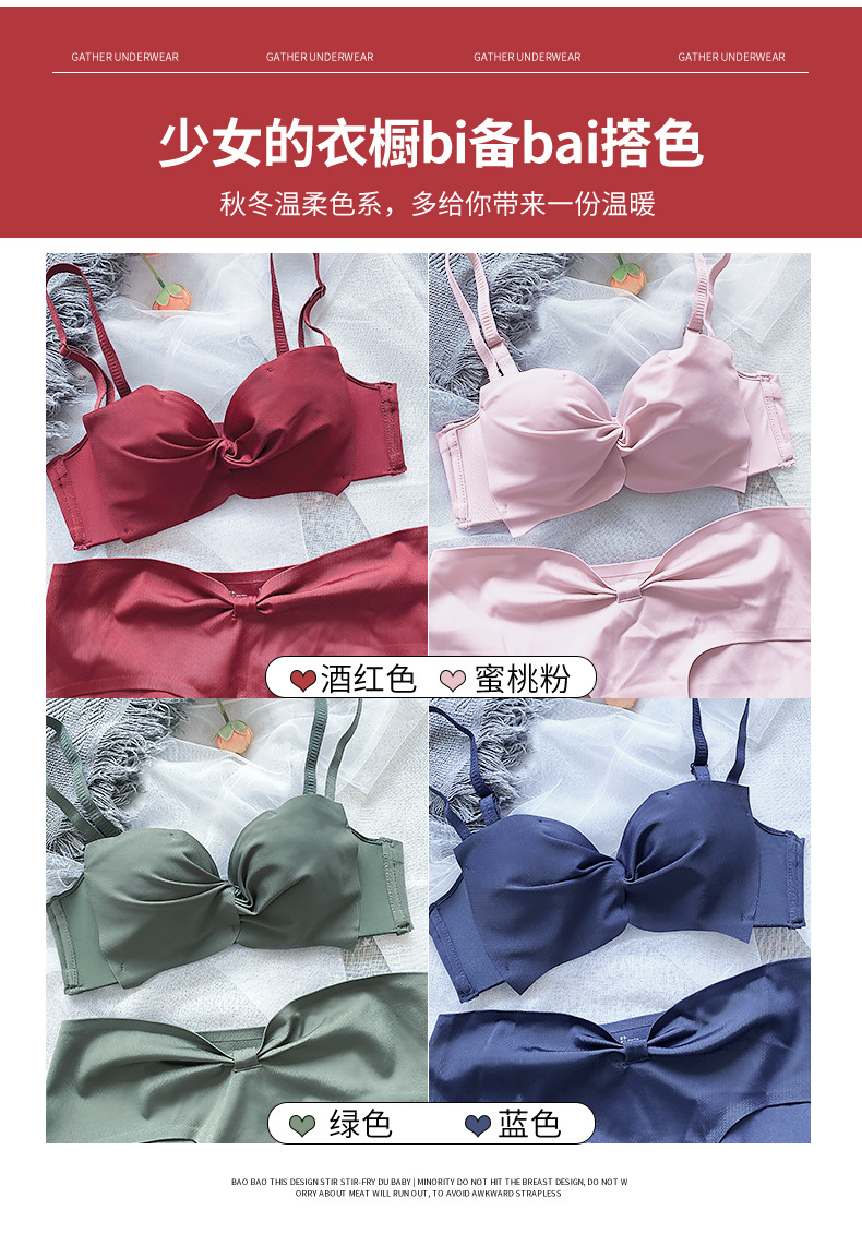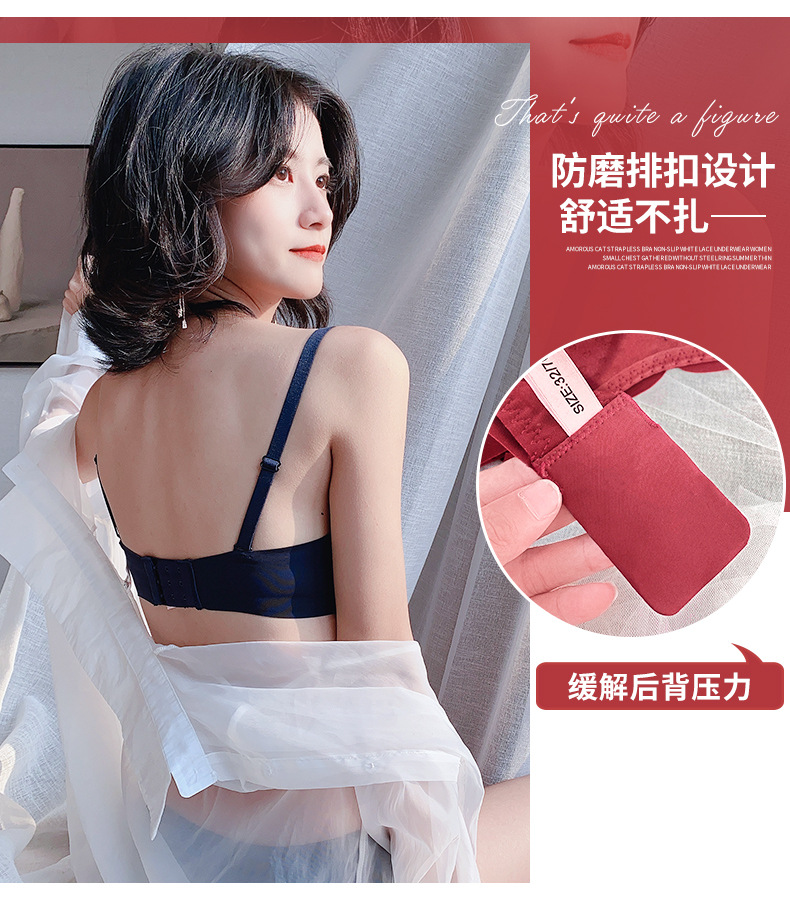 抹胸本命年牛内衣裤女酒红色结婚新娘小胸聚拢无钢圈文胸罩套装厚