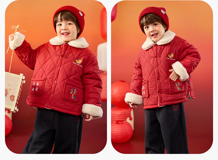 【清仓】嘟嘟家宝宝拜年服套装冬季儿童唐装两件套男童外套裤子喜庆女童套装潮