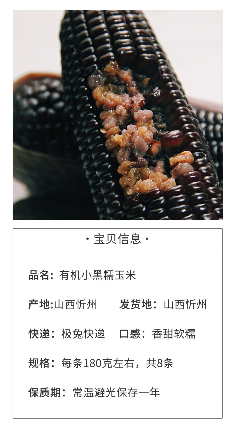 【有机糯香黑玉米】来自山西忻州,是被农业部批准的地理标志农产品,有机种植大家应该都更为放心了。