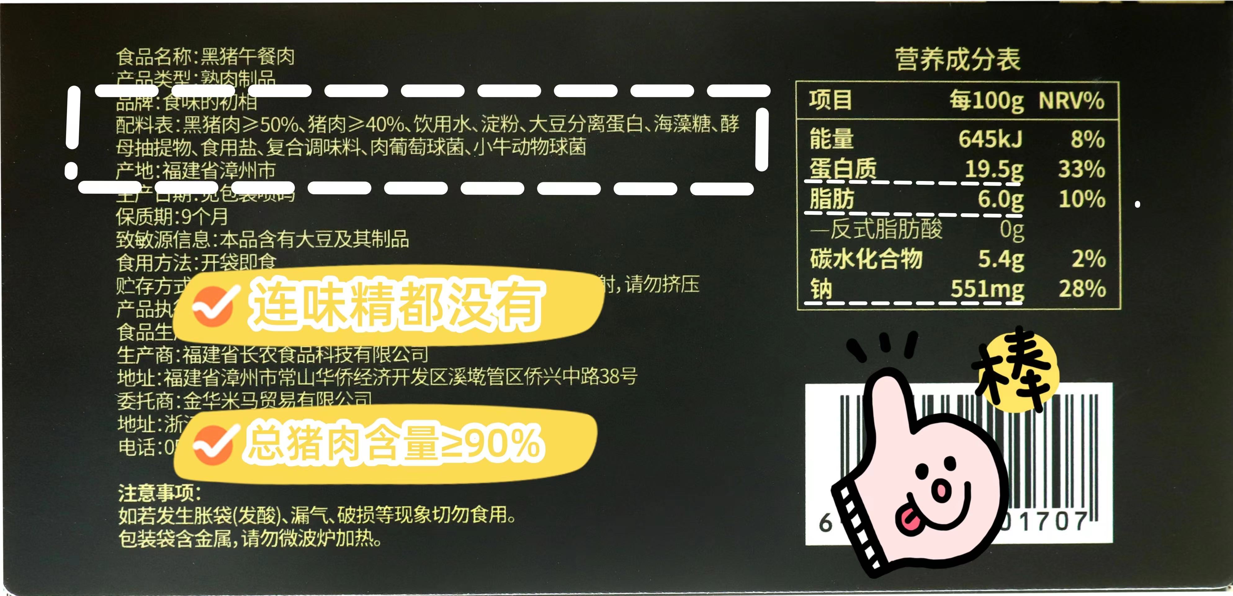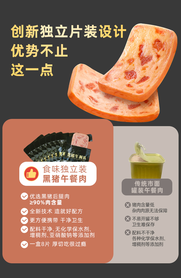原味黑猪午餐肉 特选网易黑猪肉≥50% 总猪肉含量≥90%