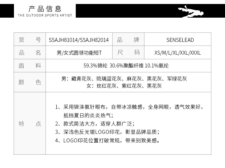 Senselead森力/女式功能短袖T恤 SSAJH82014