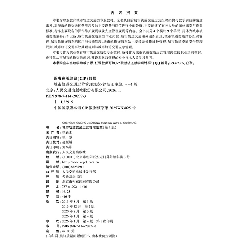 书名:城市轨道交通运营管理规章(第4版)