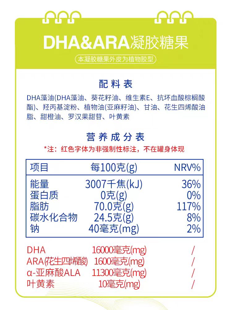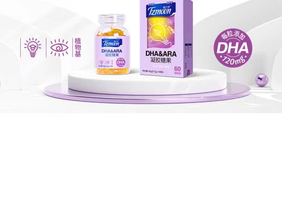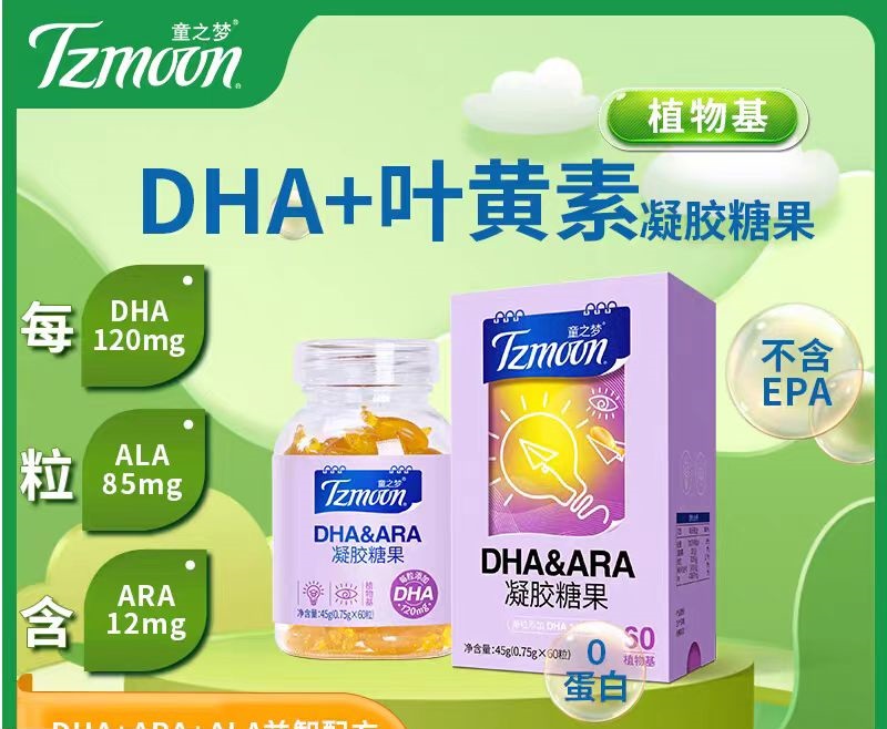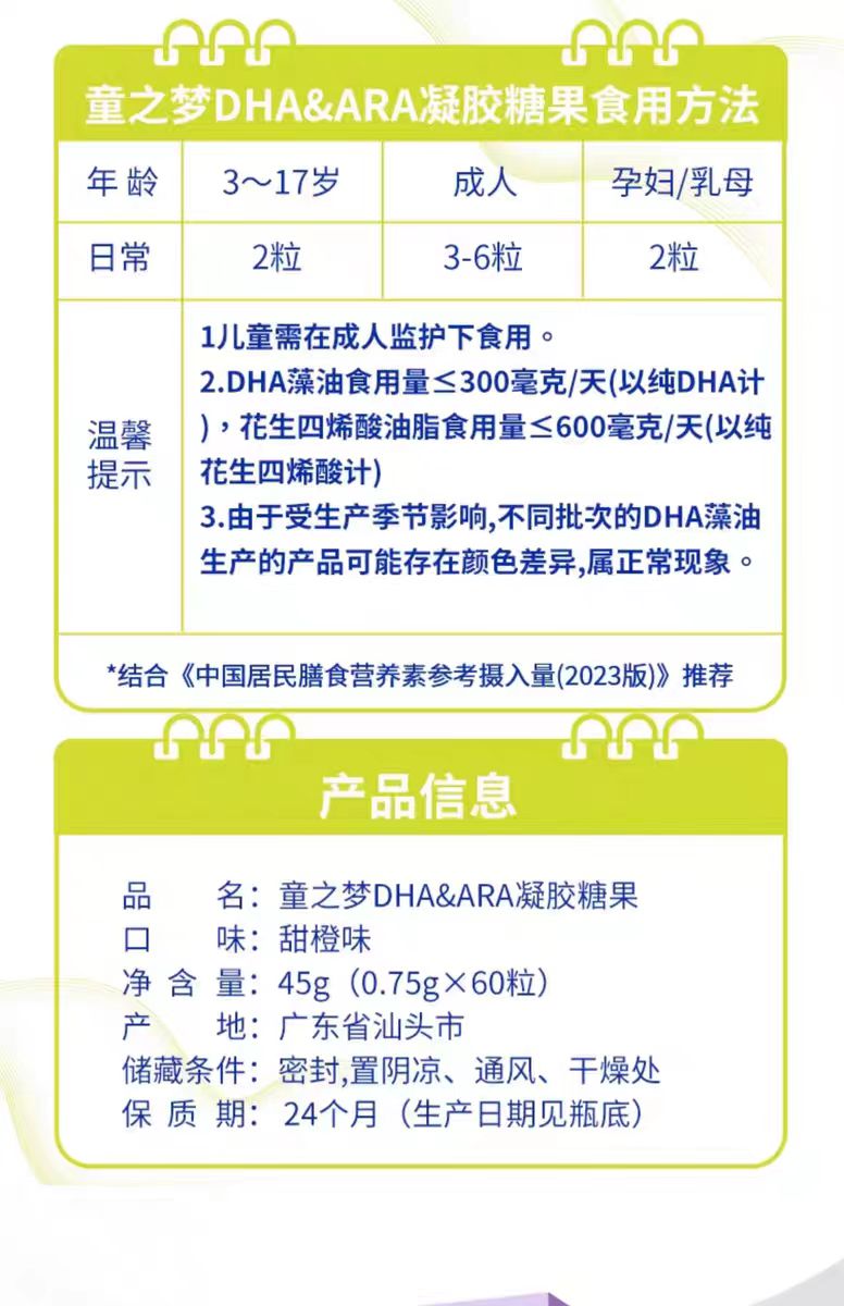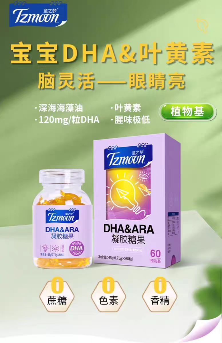 童之梦 藻油DHA60粒 三A高配+叶黄素 DHA+ALA+ARA+叶黄素 香橙味大人小孩更爱吃
