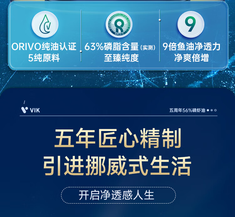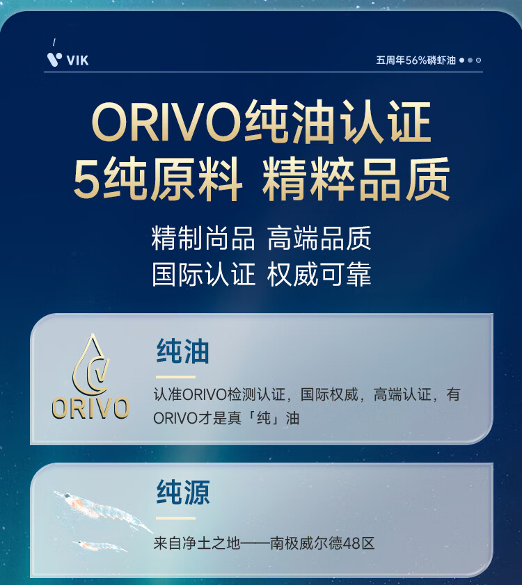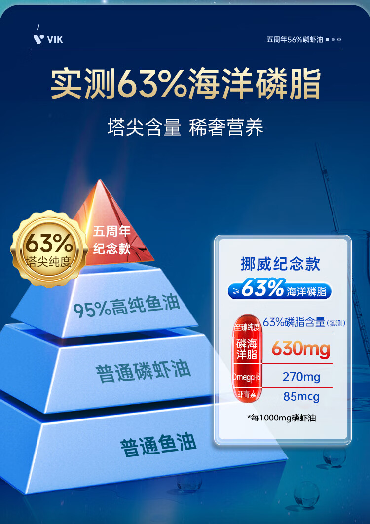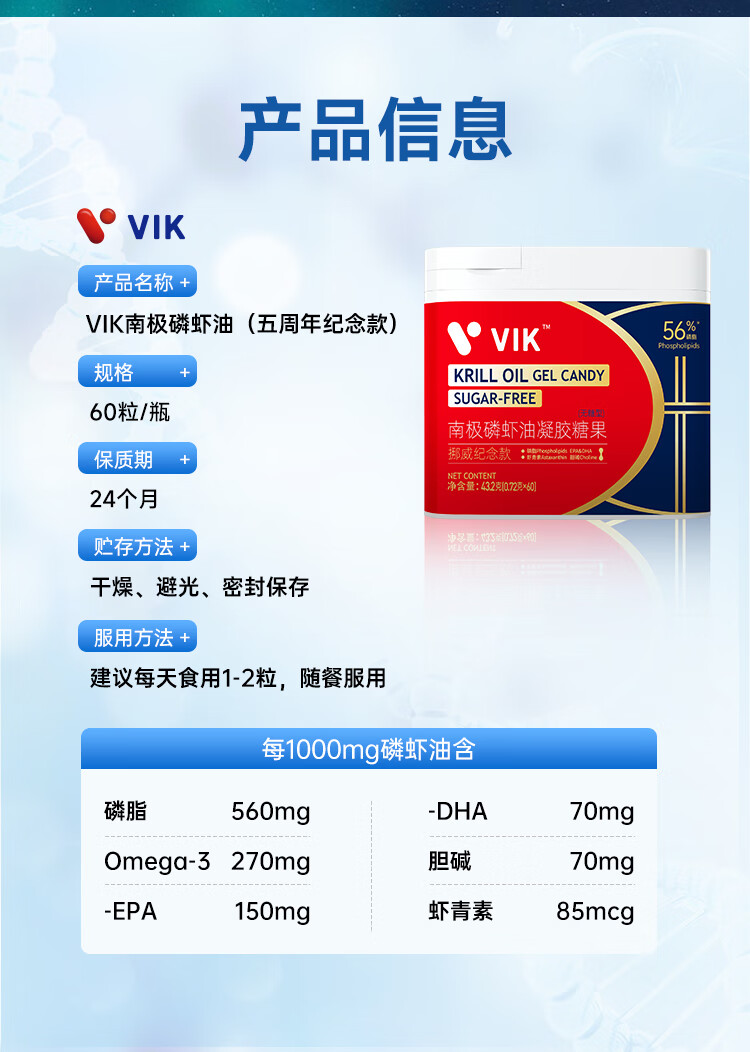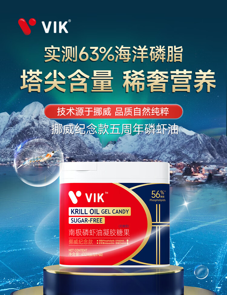 【vikVIK纯南极磷虾油五周年纪念版】VIK纯南极磷虾油60粒五周年纪念版鱼油升级实测63%海洋磷脂挪威海外进口原料Omega_3DHAepa老年成人节日送礼