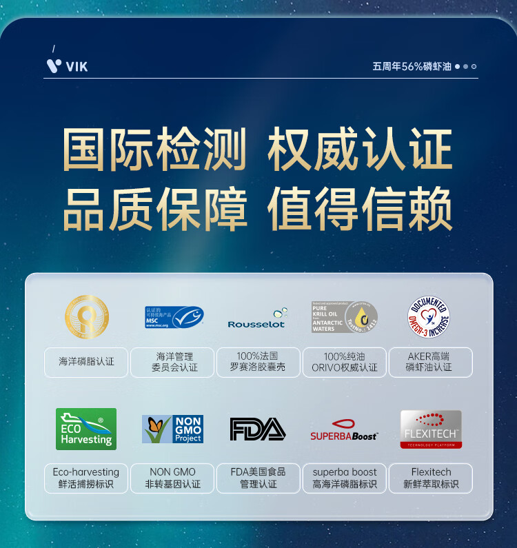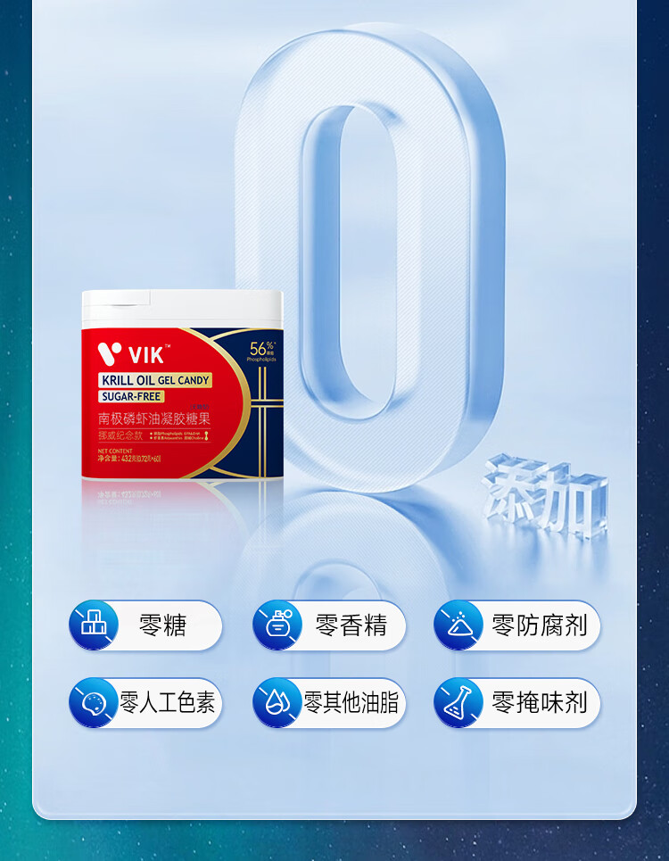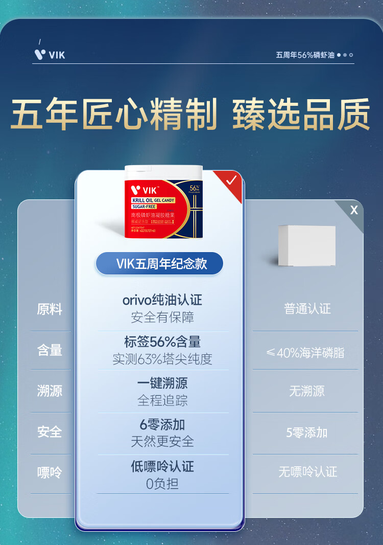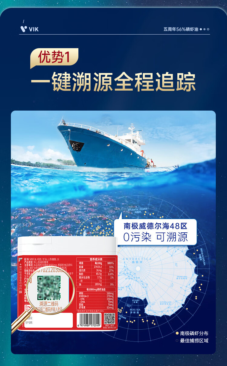 【vikVIK纯南极磷虾油五周年纪念版】VIK纯南极磷虾油60粒五周年纪念版鱼油升级实测63%海洋磷脂挪威海外进口原料Omega_3DHAepa老年成人节日送礼