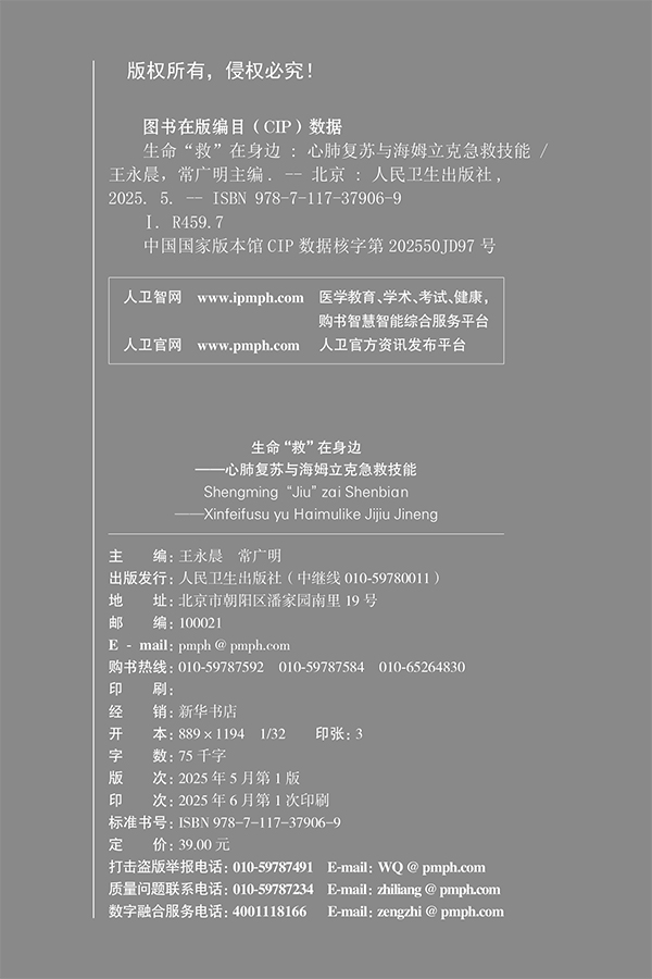 生命救在身边 心肺复苏与海姆立克急救技能 王永晨 常广明 介绍了针对不同人群的心肺复苏操作 配备图片与视频资源 人民卫生出版社