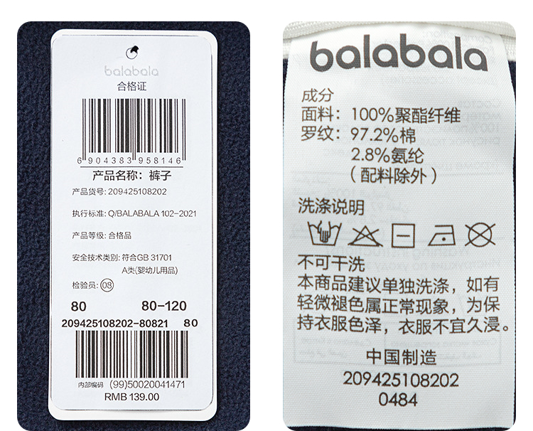 巴拉巴拉balaOne宝宝长裤宽松束脚裤男童女童裤子冬2025新款保暖