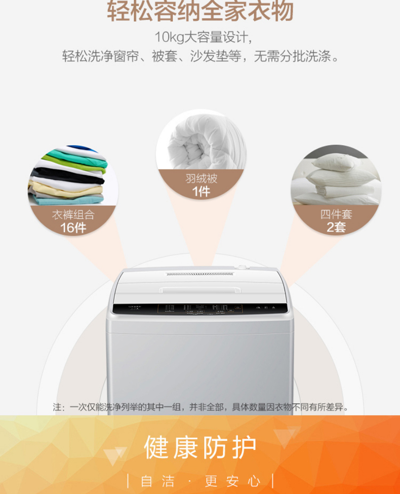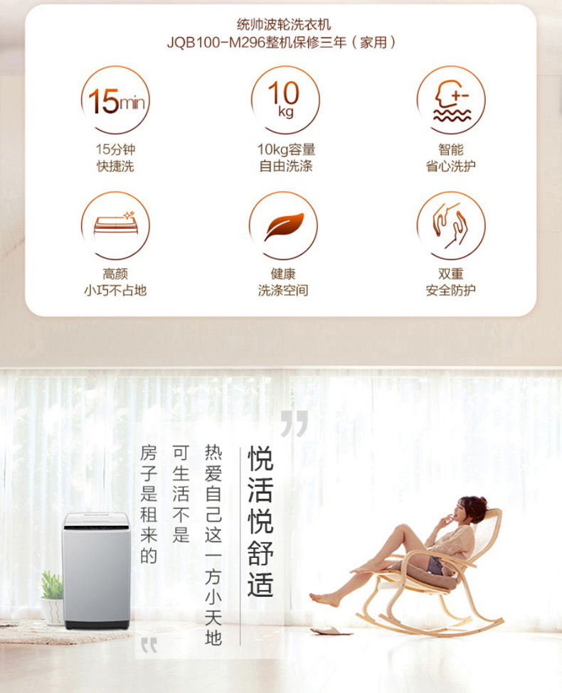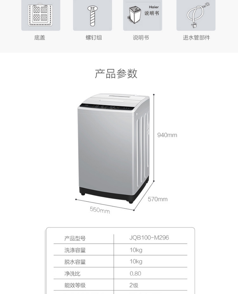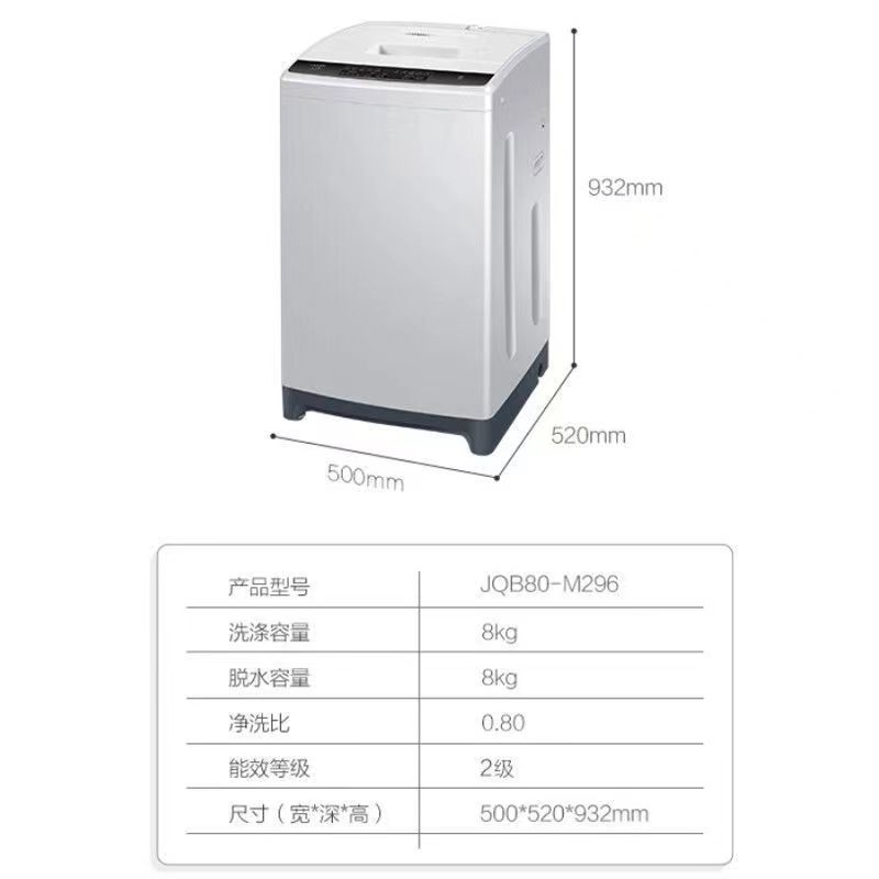 海尔洗衣机 统帅8/10公斤洗衣机全自动波轮大容量家用出租屋洗衣机宿舍 强力洗净轻柔 智能自编程 桶自洁JQB100-M296/JQB80-M296