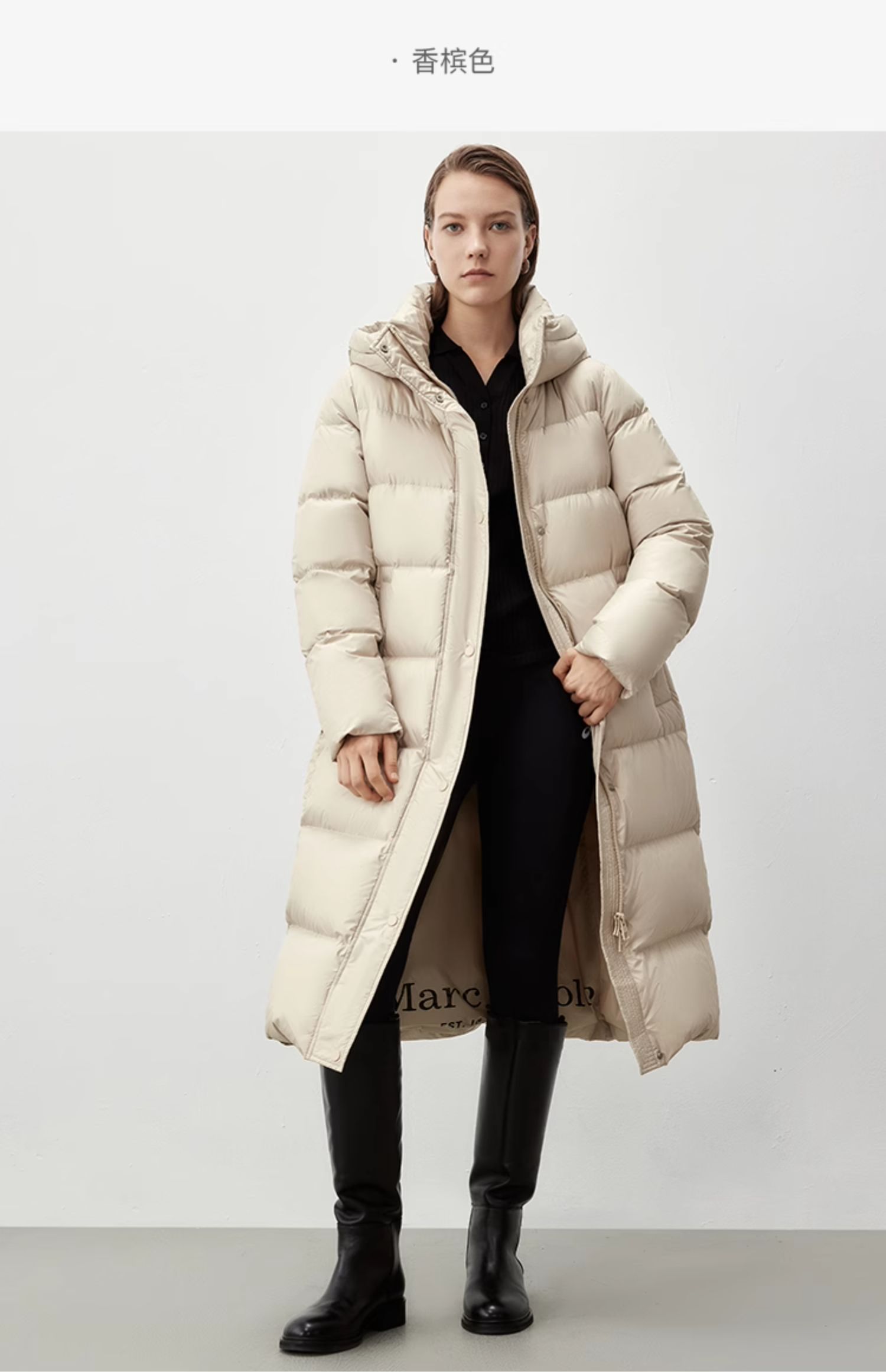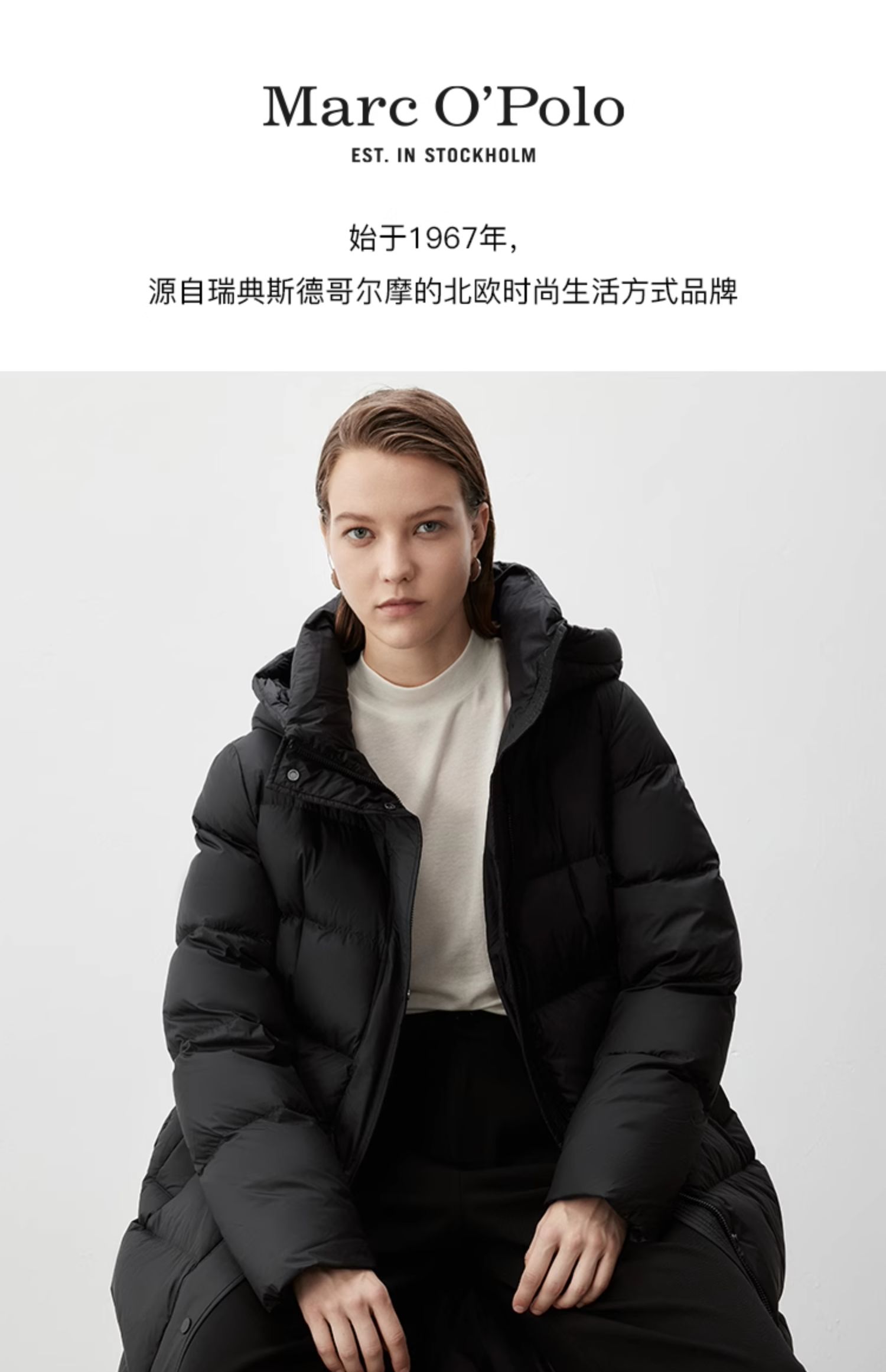 Marc O'Polo/MOP冬季新款时尚宽松黑色长款保暖羽绒服外套女