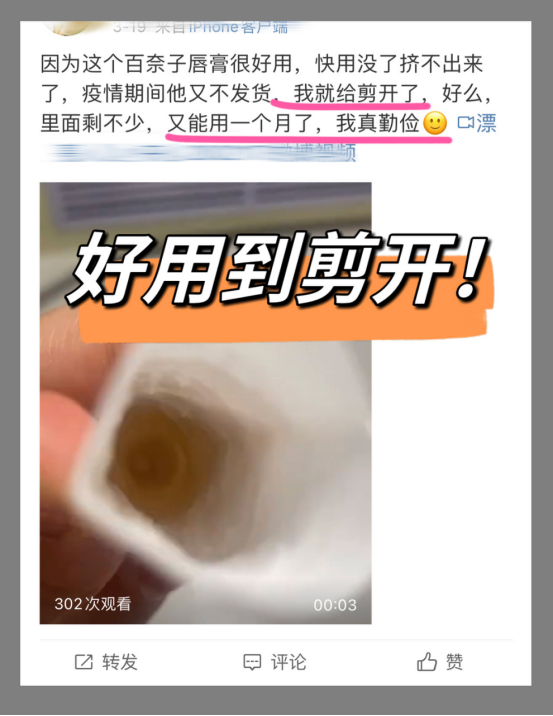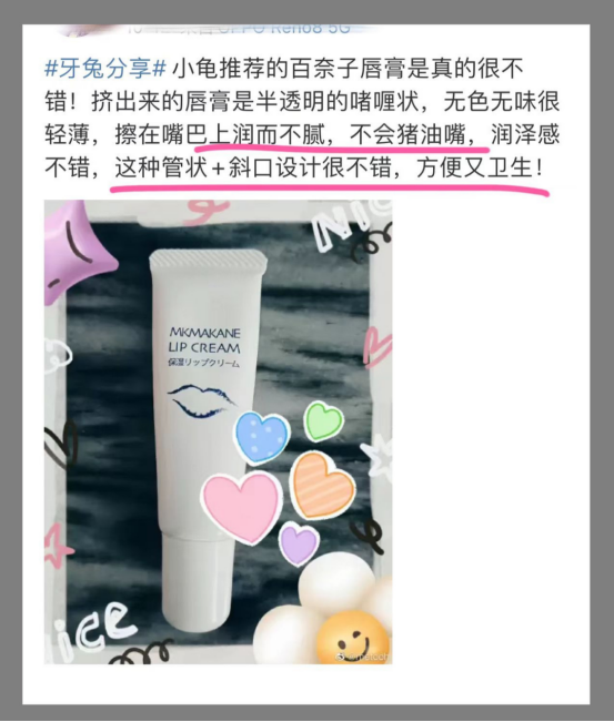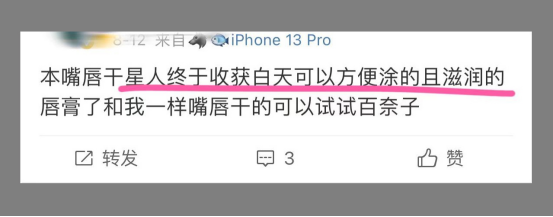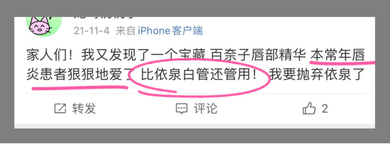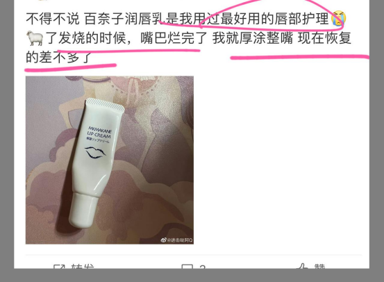 👉绝大部分唇部护理产品都是油脂+蜡的配方 原理就是加厚皮肤外部油脂 滋润也只是暂时,不能真正有效的修护、改善 反正就等于白忙活一场 所以真的要认真挑选唇部产品 毕竟这部分皮肤只有少量皮脂腺,没汗腺 缺乏了一层天然保护膜,容易失去水分 特别是现在换季,干裂、敏感等情况频发 百奈子就是你们的不二之选❗️ 研发配方、成分用的都非常壕气‼️