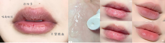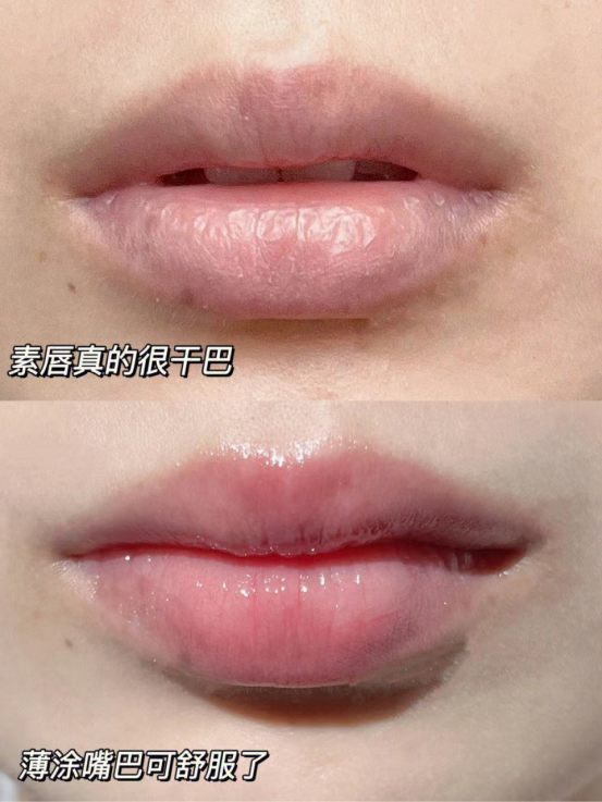 半透明啫喱质地,无色无味, 不闷不油不粘腻,上嘴舒适,很舒缓,滋养,不返干 零沾杯,上嘴快速形成保护膜,不需要经常补涂