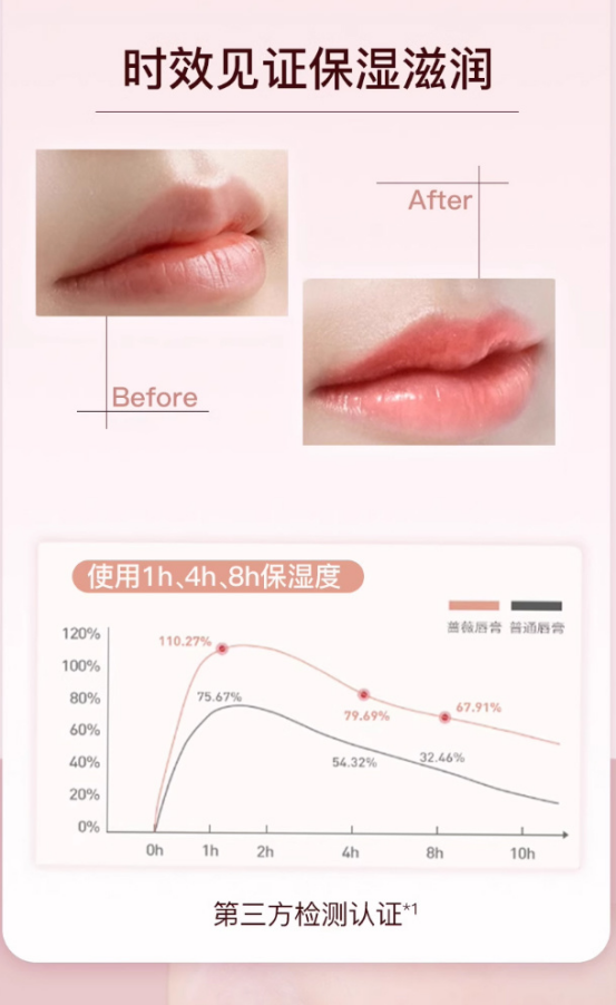 水润而且保湿力在冬天都够用 每次涂完嘴巴都好软哦!嘟嘟的!