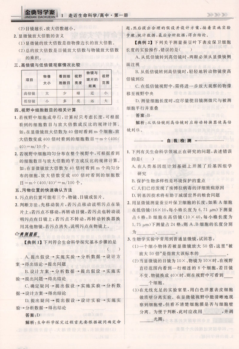 钟书金牌金典导学案 生命科学 高中第一册 上海版 学练考三合一 适合参加新高考的学生使用 上海高中一年级学生生物总复习