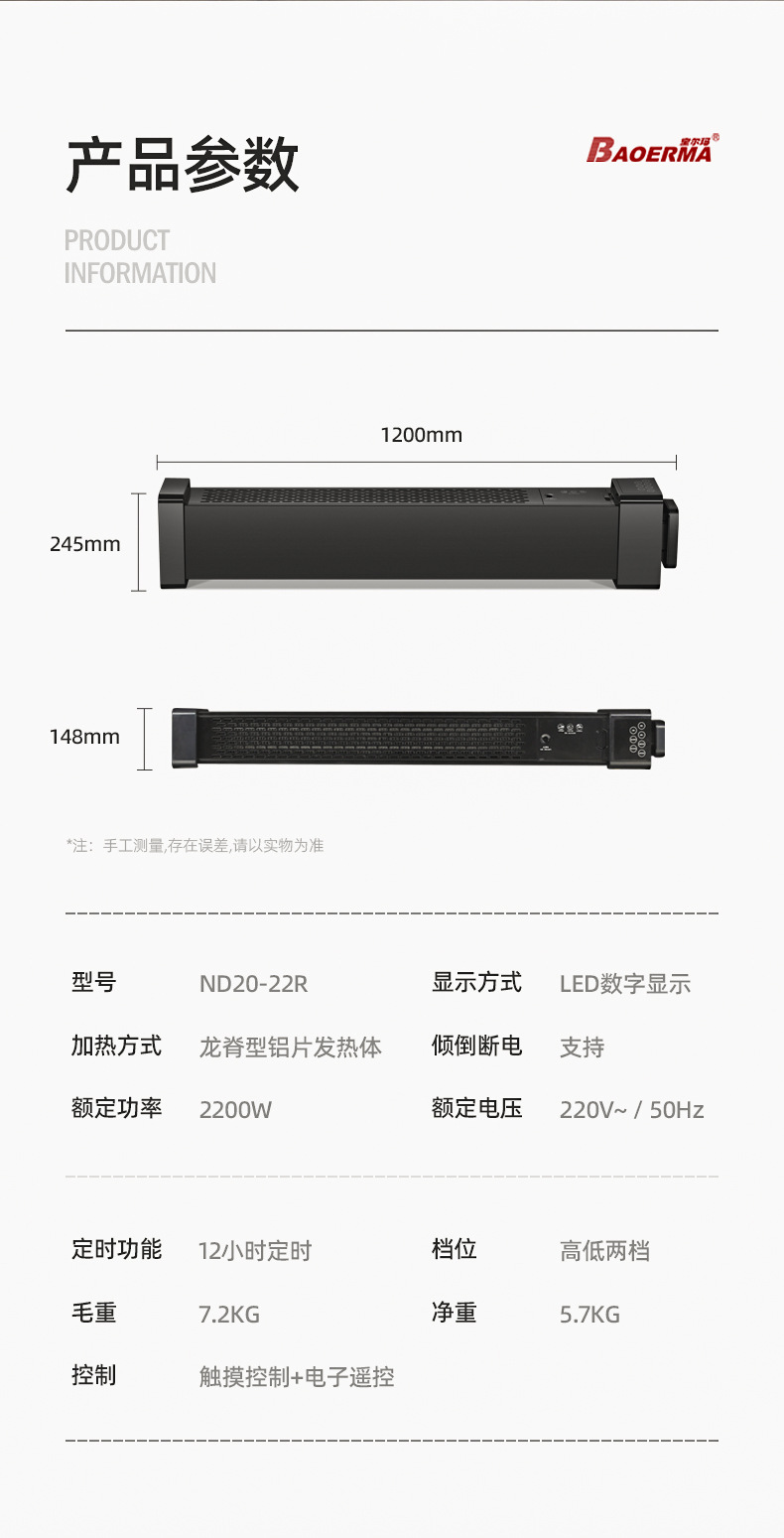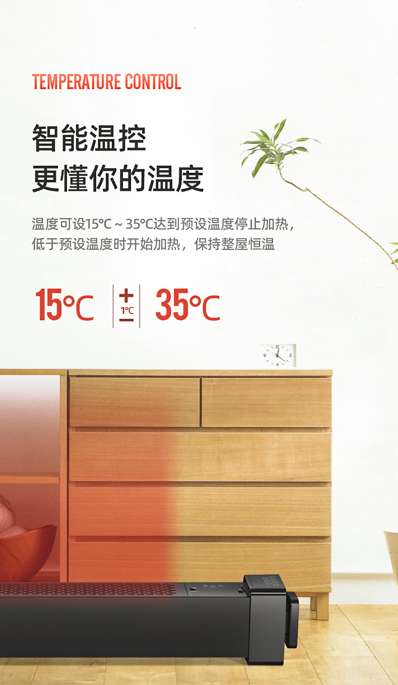 宝尔玛石墨烯踢脚线取暖器 大面积取暖省时节能暖冬生活