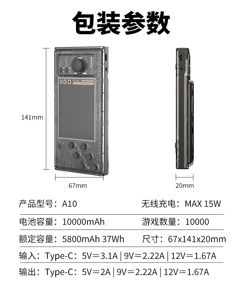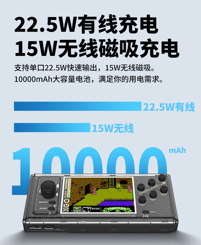XGO/芯果 充电宝游戏机 10000mAh 500款游戏DY10 游戏机充电宝22.5W无线磁吸便携移动电源10000毫安无线充快充二合一游戏机掌机