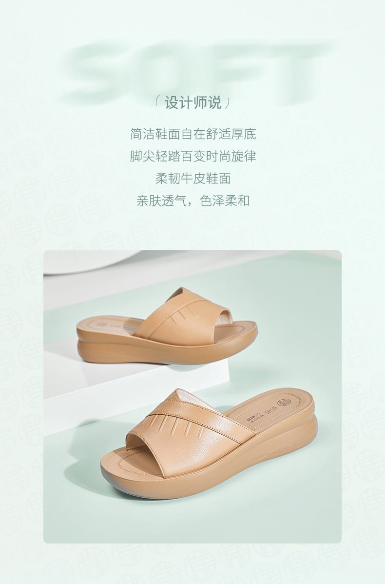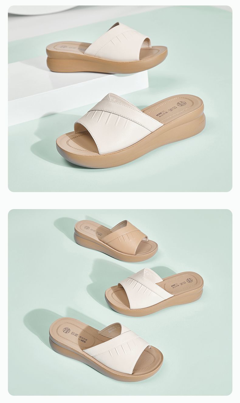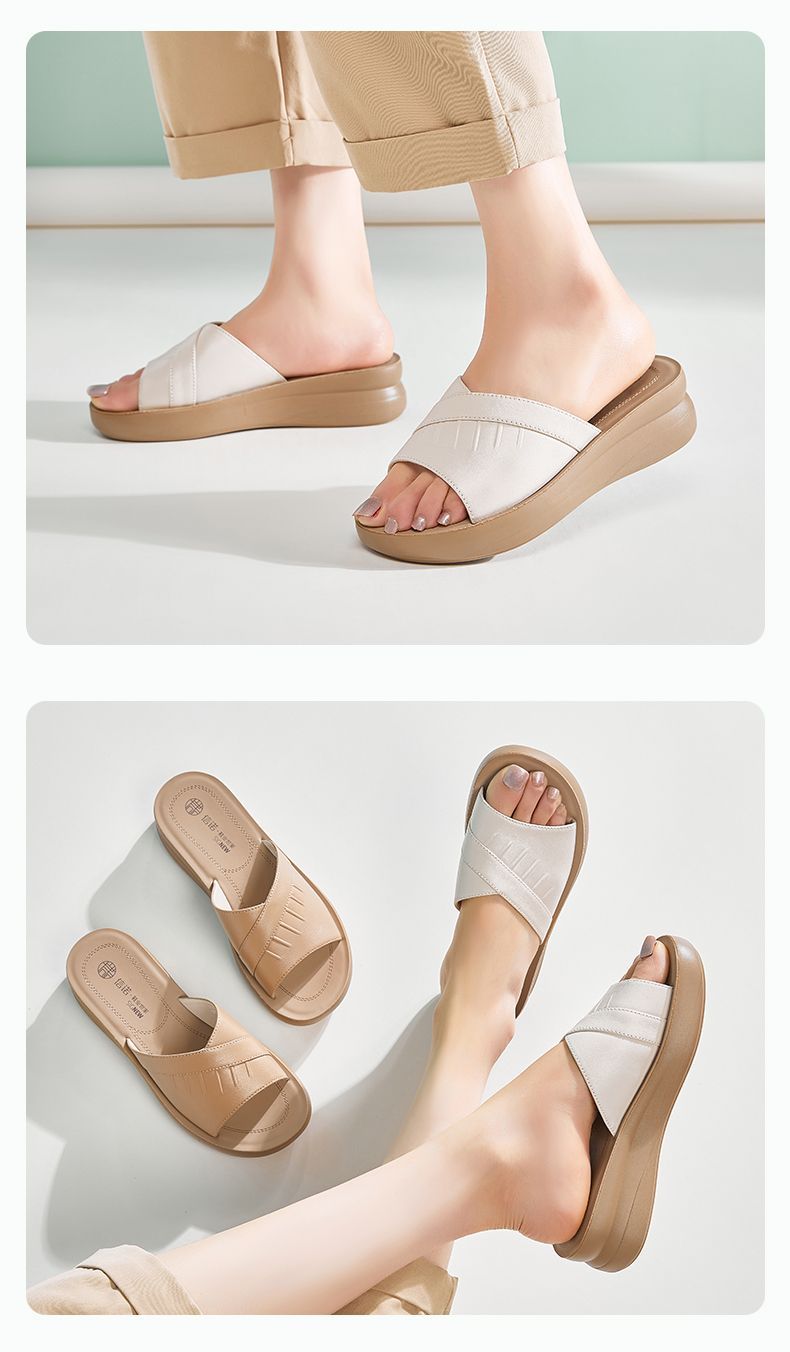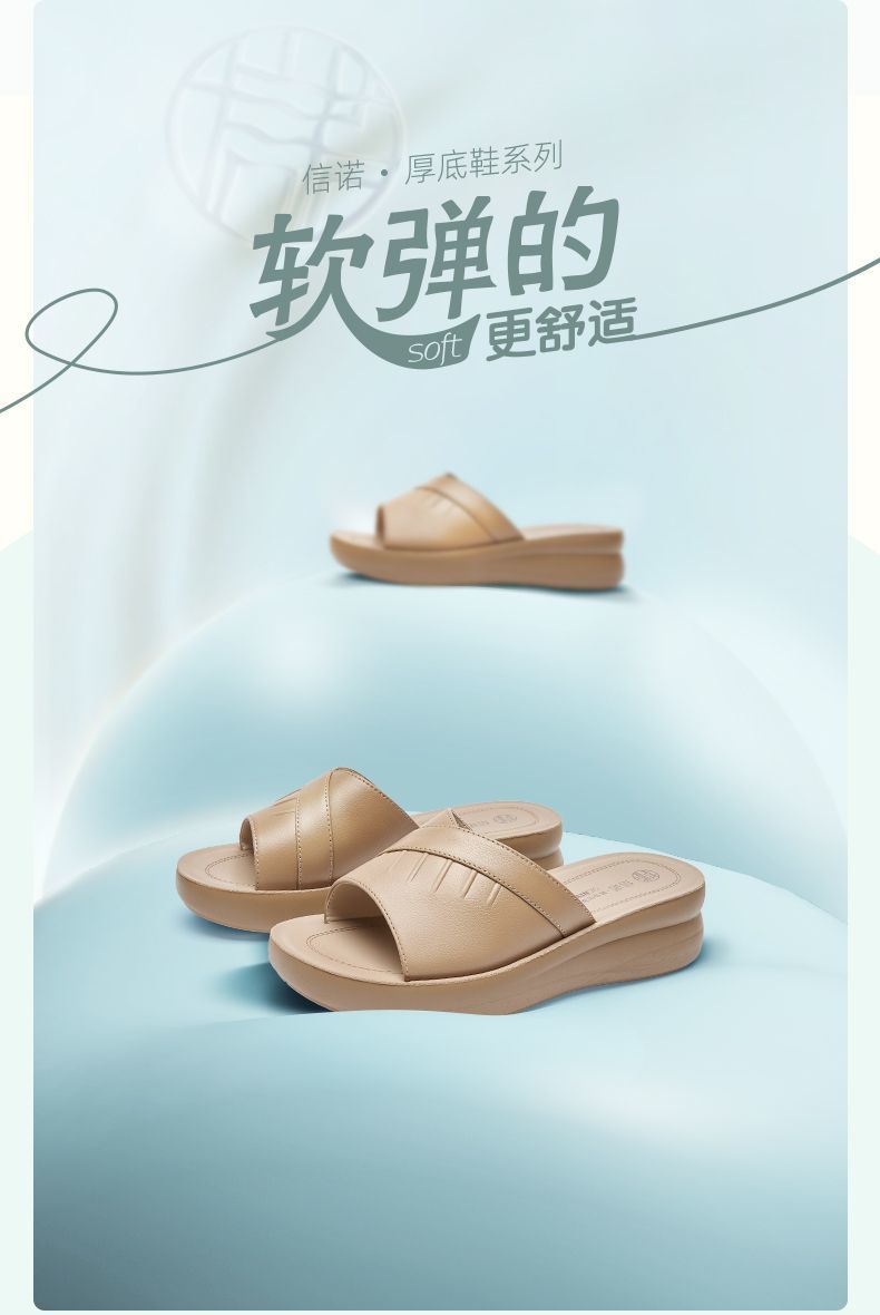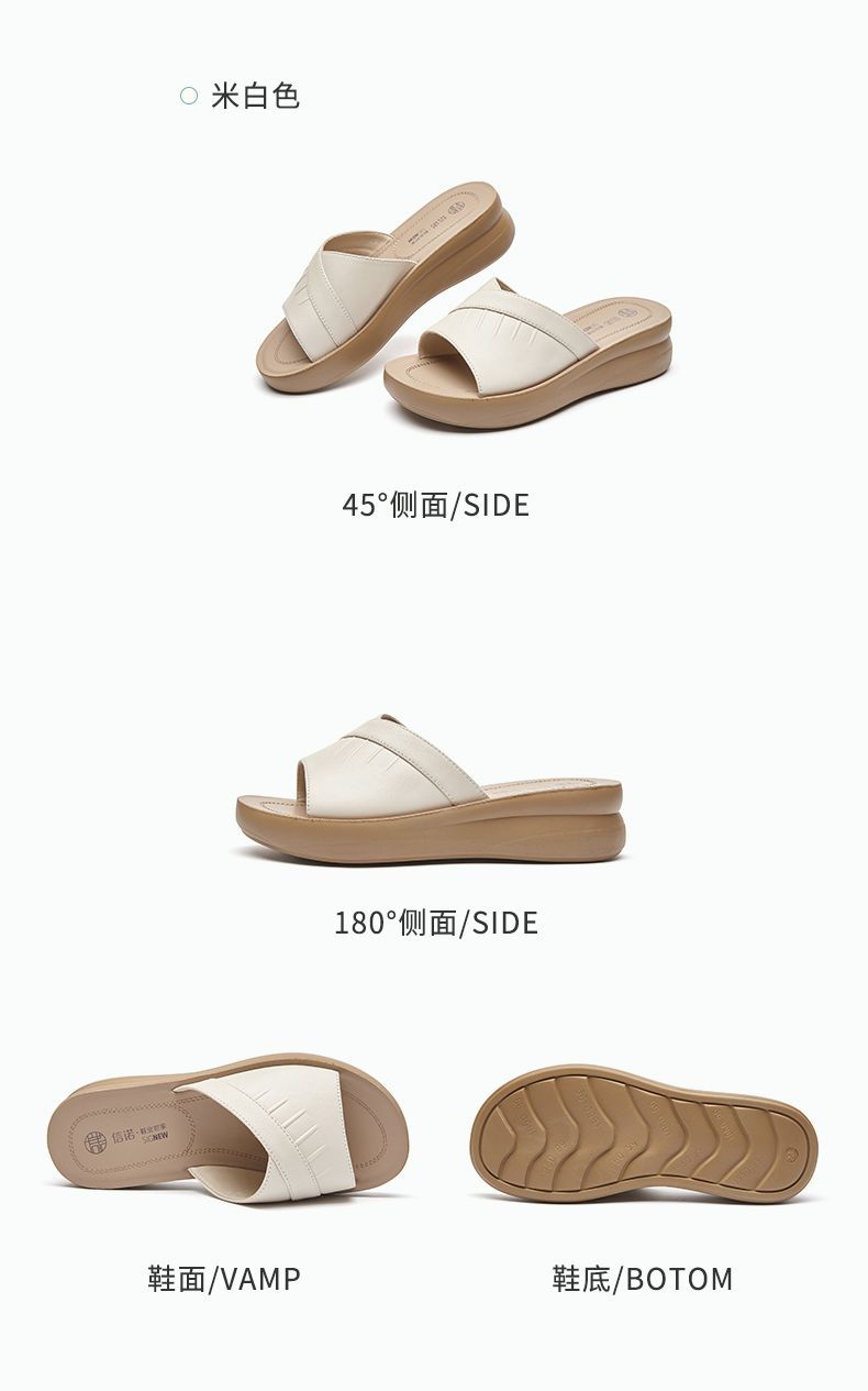 信诺牛皮女鞋凉拖鞋女2025夏季新款时尚气质软底轻便外穿凉鞋女5L950-36