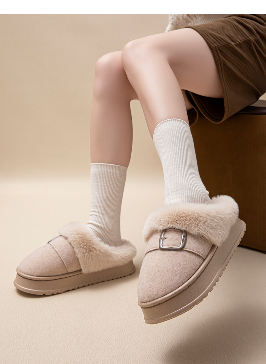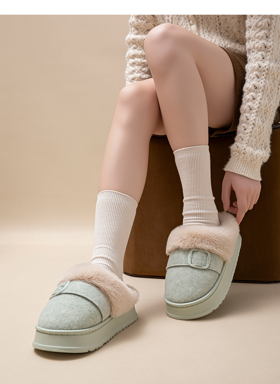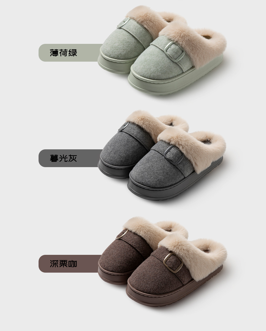 【YW】无忧购59元2双半包跟加绒保暖拖鞋冬季家居厚底防滑ZS-3100(截单后7天发货)